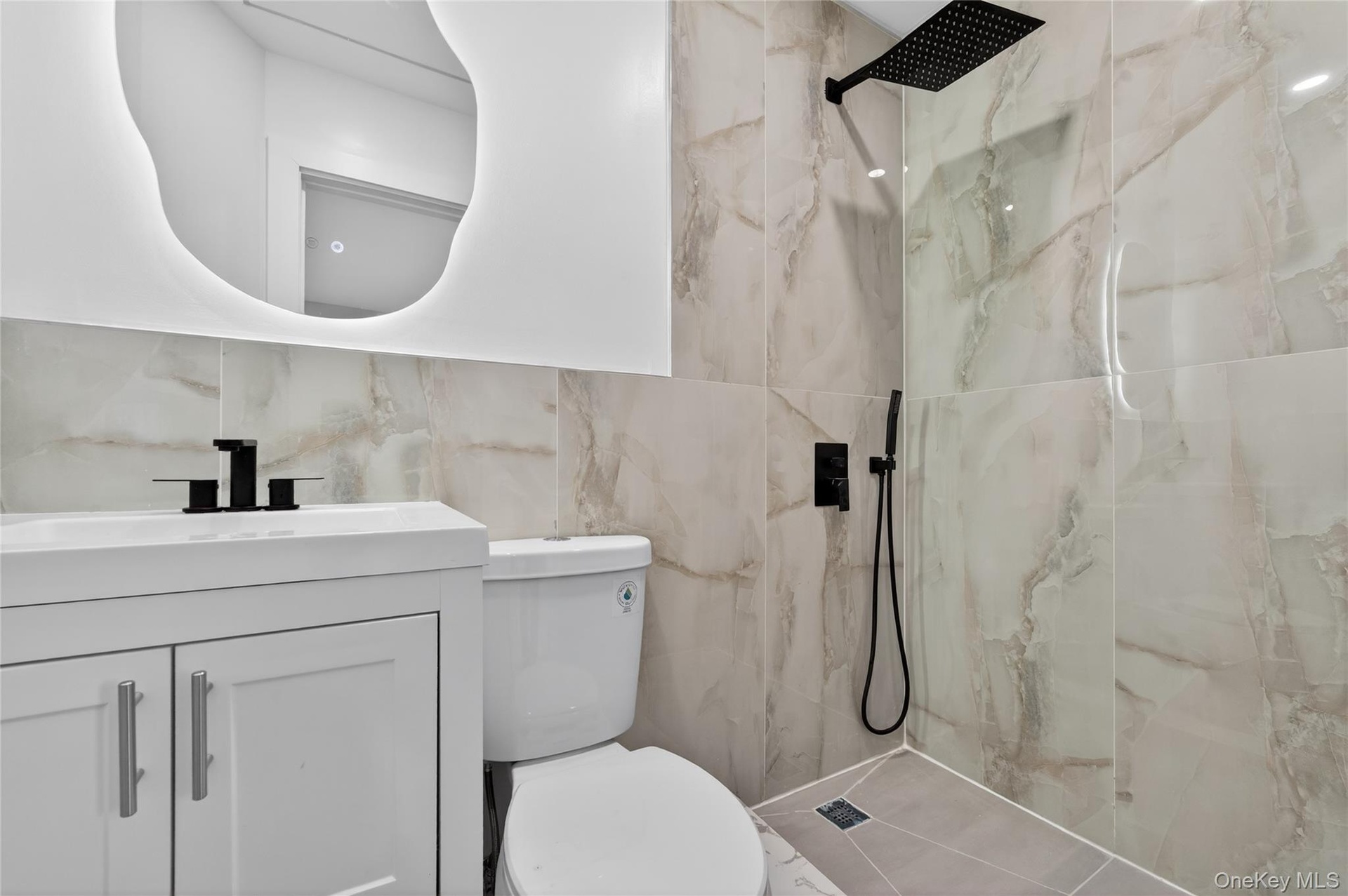 As you walk into the home you are greeted by a bright and modern living room featuring polished natural hardwood floors, a marble design tv wall, a guest powder room as well as an open concept chefs kitchen equipped with top of the line stainless steel appliances. The kitchen features white cabinets with gold handles and accents throughout & a beautiful marble breakfast bar / Island setup. Split unit Heat & Ac have been installed in each room & Accent lights and LED lighting have been incorporated throughout the home as well. Behind the kitchen area located on the first floor, we have a bedroom + full master bathroom providing comfort to those who may have difficulty going up the stairs.