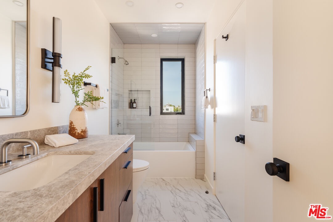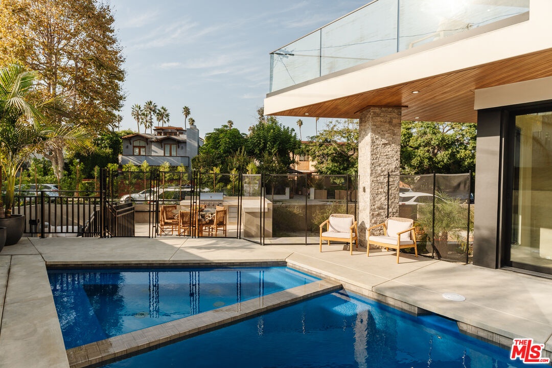 Nestled on a generous corner lot in the heart of Oxford Triangle, this 3,373 modern masterpiece rests in the peaceful pocket minutes away from the hustle and bustle of Venice, Abbot Kinney, and Marina del Rey. A grand custom pivot door opens to soaring ceilings and warm oak floors. The dramatic sunken living room, anchored by a linear gas fireplace, flows seamlessly into the dining area and chef's kitchen, which features elegant marble countertops and white oak Del Mar cabinets. A full wall of floor-to-ceiling pocket doors opens wide, fusing the entire great room with the sun-drenched pool terrace and its pool + spa, built-in outdoor kitchen, gas fire pit, and plush conversation lounge, all privately tucked behind mature palms.The main level features a glass-walled office, powder room and two-car garage with gated driveway access. Upstairs you'll find four spacious, light-filled bedrooms. The primary suite delivers hotel-level luxury with a second fireplace, sitting nook, wraparound balcony for sunset views, soaking tub, dual vanities, water closet, and large walk-in closet.Located in one of L.A.'s most desirable coastal neighborhoods, 726 Howard offers rare walkability. Stroll to the beach, cruise the bike paths and enjoy popular restaurants and shopping. Experience unbeatable charm and refined living by the sea, just minutes from the best of Marina del Rey and Venice. Don't miss out on this modern coastal gem!