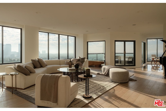 Perched atop the iconic Park Wilshire, this extraordinary penthouse presents a rare chance to acquire one of Los Angeles' most distinguished high-rise residences. Spanning more than 6,600 square feet, the home exemplifies sophisticated living with sweeping 270-degree vistas from the ocean to the hills, showcased from four expansive terraces. A refined paneled entry opens to grand living and dining rooms, where walls of glass flood the interiors with natural light. Soaring ceilings, generous wall space, and wide-plank white oak floors create a perfect setting for art, entertaining, and everyday elegance. The newly reimagined chef's kitchen is anchored by a striking Taj Mahal quartzite island and outfitted with Miele appliances. The tranquil primary suite encompasses over 1,800 square feet and features dual spa-like baths, two walk-in closets, a private kitchenette, and a lounge that opens directly to a terrace. A separate wing includes a junior suite, a guest bedroom, and an additional room currently used as a home office. The media room offers an inviting space for film and music enjoyment. Recent renovations to Park Wilshire introduce some of the Corridor's most desirable amenities, including a beautifully appointed lobby, library lounges, pool and spa, and a state-of-the-art fitness center. With breathtaking views from sunrise to sunset, this exceptional residence defines elevated, full-service Los Angeles living. Ideally situated just minutes from Beverly Hills, Hillcrest Country Club, LACC, Bel Air Country Club, Westwood Village, and beyond, this is a truly rare offering.
