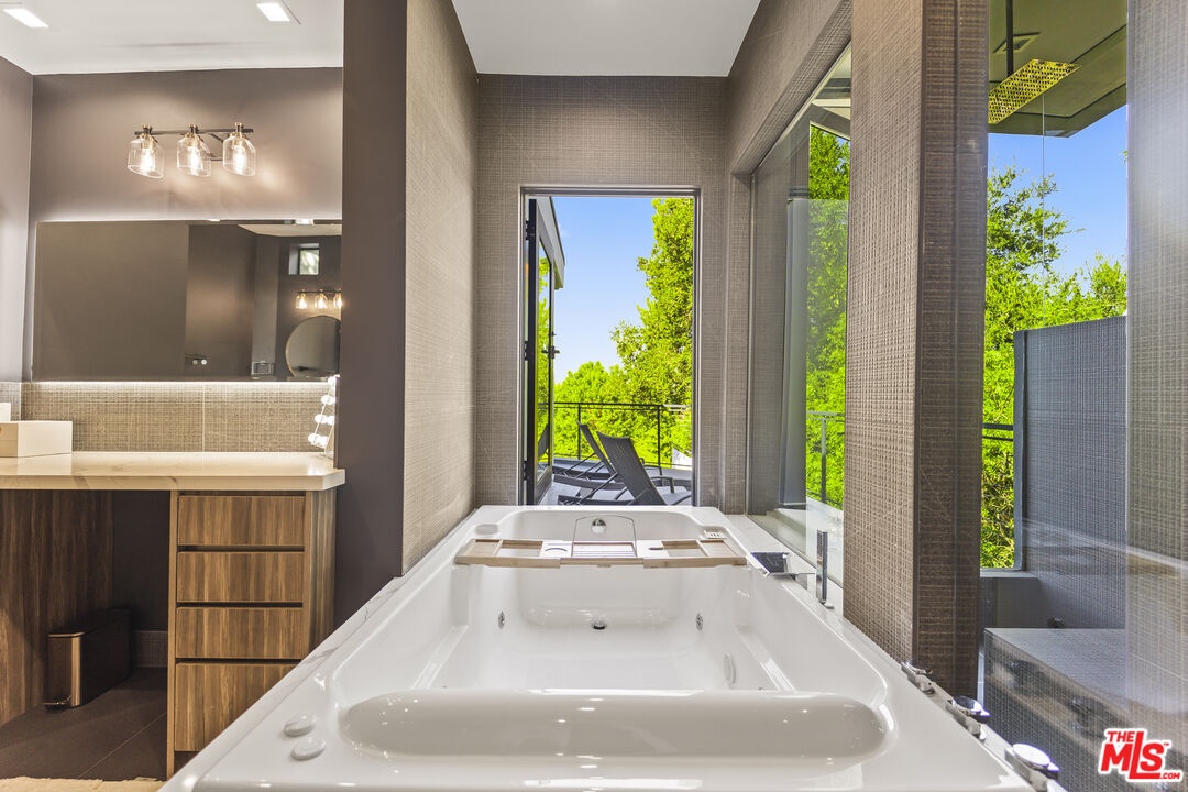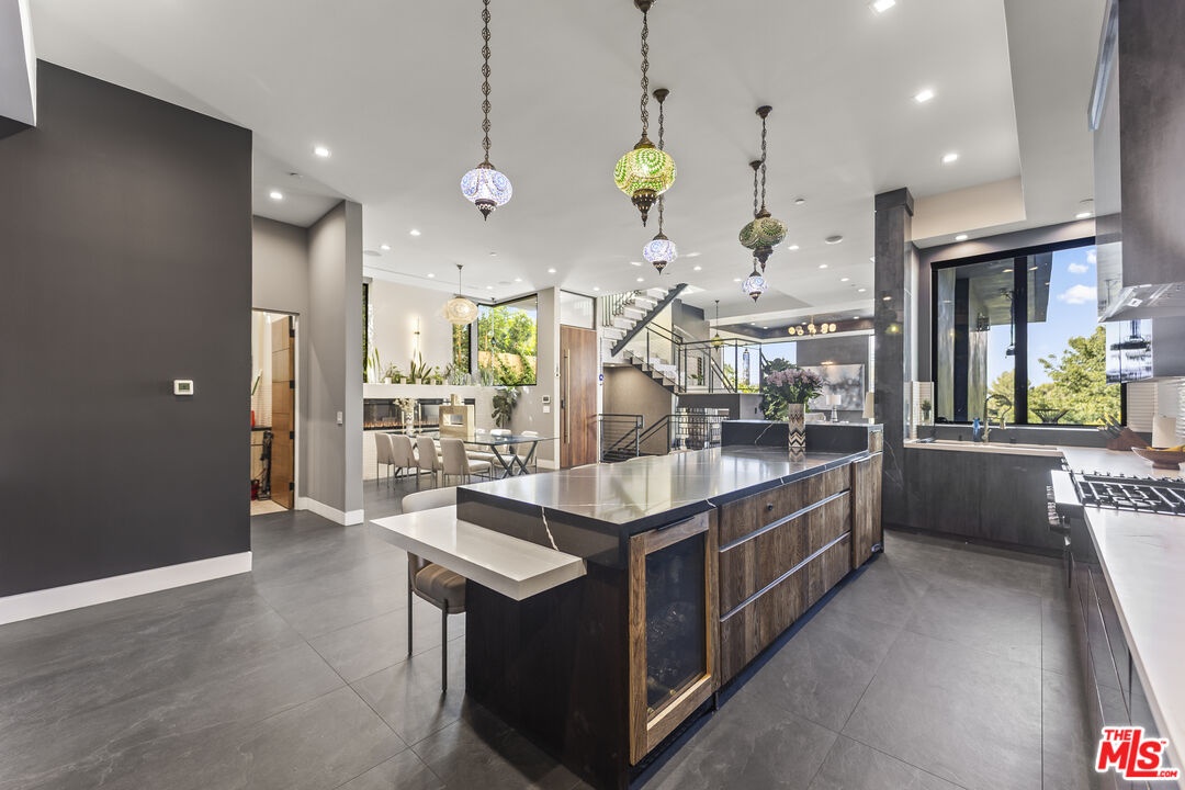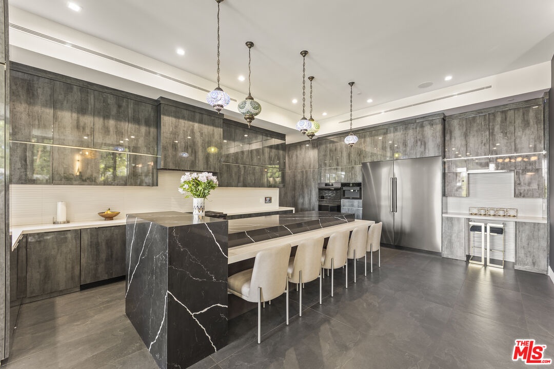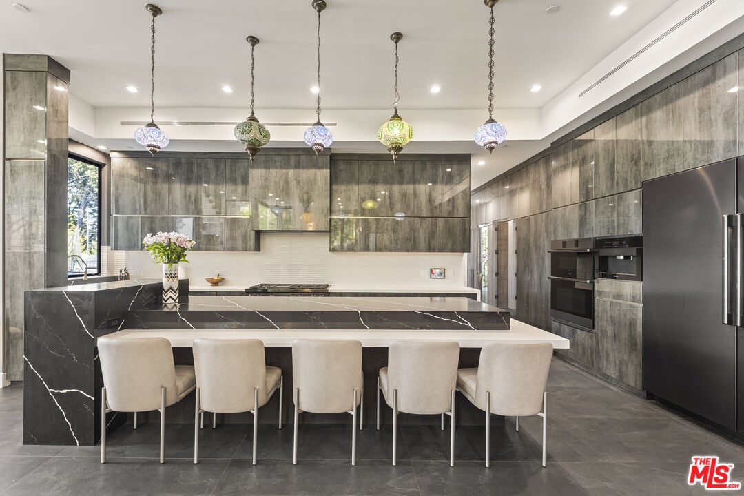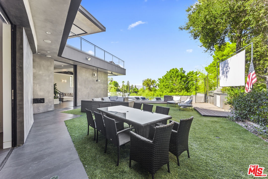 Set high in the Hollywood Hills, this designer estate by Alon Zakoot blends modern design with a twinkling of romantic Old World charm, offering privacy, sophistication, and the essence of a true California getaway. From its elevated perch, enjoy panoramic views with Universal Studios' iconic Harry Potter castle as your backdrop. Property was built in 2022, property first occupied in 2023. Inside, timeless finishes meet artistic detail. Stone floors flow into a chef's kitchen with premium appliances, while handcrafted Moroccan lighting sets the mood in the dining space. The living room, crowned with a luminous ceiling and framed by retractable glass doors, opens seamlessly to the outdoors connecting to an oversized infinity pool suspended 20 feet above ground, lush gardens, and expansive entertaining areas.The primary suite offers a private sanctuary with a balcony, spa-like bath, and generous closet space. All six bedrooms feature unique details, private balconies, and outdoor privacy. A family room with direct access to the outdoor lounge invites effortless gatherings. This estate is designed for both comfort and entertainment, with an elevator, rooftop deck, outdoor kitchen, poolside BBQ, and resort-like greenery. An ADU adds flexibility for guests or extended living. More than a home, this is a lifestyle.