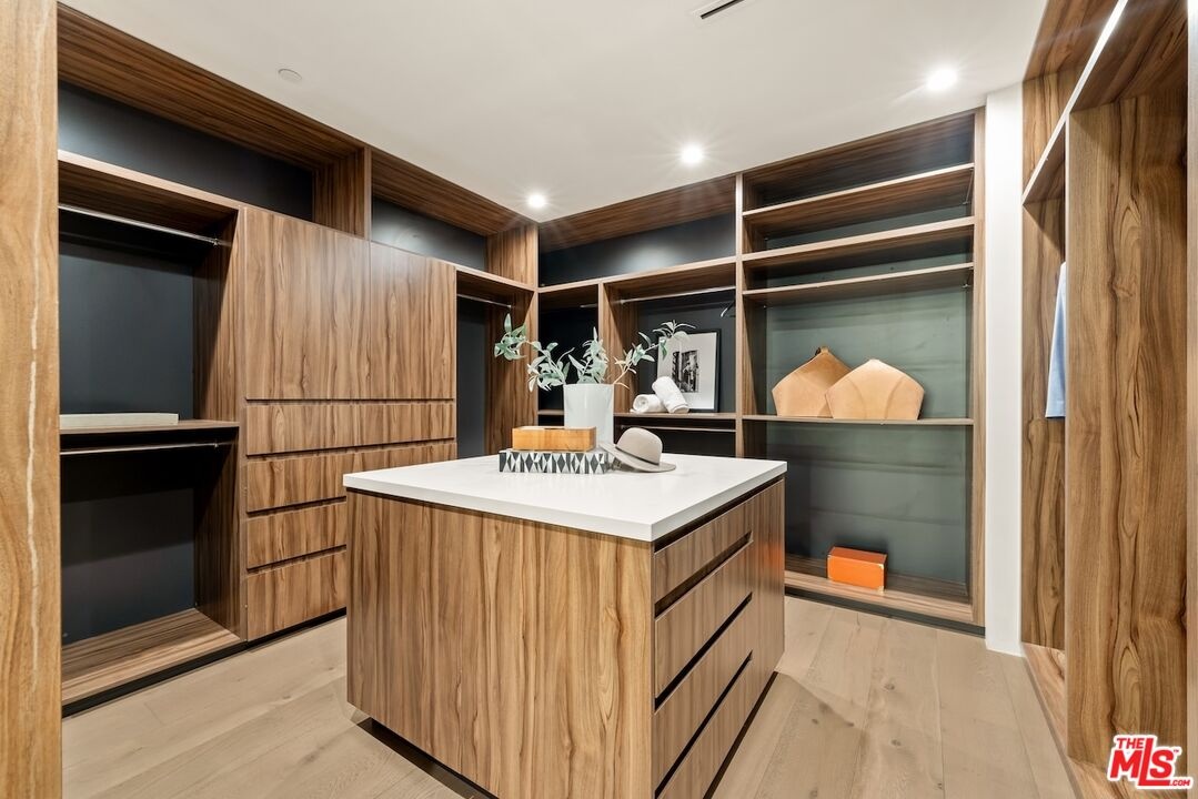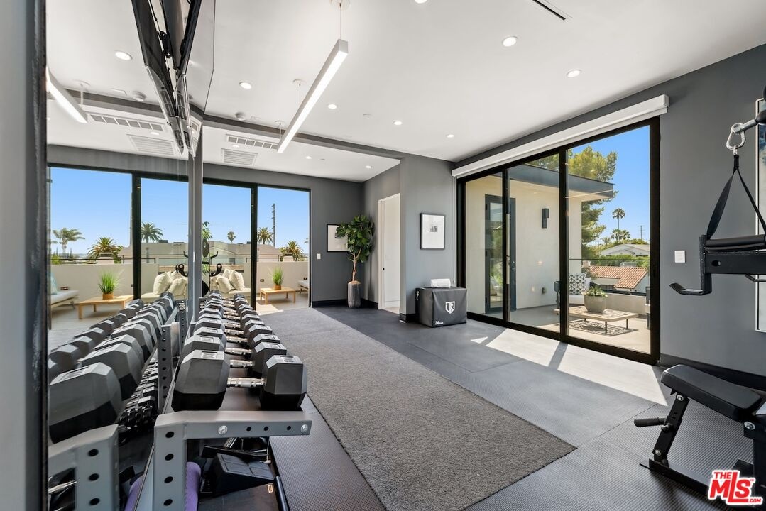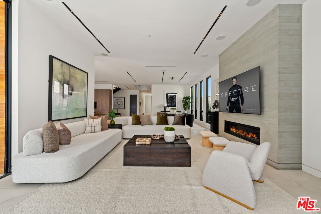 Introducing Zen: Where contemporary luxury, elevated design, and mindful living intersect in the heart of the vibrant Melrose Arts District. This striking architectural residence presents a private sanctuary of modern sophistication designed to elevate everyday living with resort-style amenities, serene interiors, and cutting-edge innovation with an emphasis on wellness and lifestyle. As you enter, you are greeted with soaring ceilings, expansive walls of glass, and gallery-like proportions bathed in natural light and a dramatic floating staircase which doubles as an art piece. Zen features 5-bedrooms and 6-bathrooms spanning across 5,200 sq. ft. of meticulously designed living space and offering an unmatched combination of high design, functionality, and tranquility in a modern contemporary style. An entertainer's dream, the expansive open-concept living and dining areas are anchored by a dramatic fireplace and flow effortlessly into a gourmet chef's kitchen outfitted with top of the line Wolf appliances, custom cabinetry, a spacious center island, and sleek stone countertops. Retractable glass doors disappear to reveal a seamless indoor-outdoor experience, leading to your private backyard oasis. With wellness and lifestyle at the forefront, Zen comes complete with a private gym, perfect for morning workouts or mindful movement and a set of resort-level amenities including a sparkling pool and spa for sun-soaked afternoons, a cold plunge and sauna for restoration and renewal, and multiple lounge areas surrounded by lush, thoughtfully landscaped greenery providing your own modern retreat in the middle of the city. The primary suite is a masterclass in luxury and serenity, featuring a spacious layout, private balcony, spa-like bath, a free standing soaking tub and walk-in rain shower, and a spacious boutique-style closet. Each of the additional en-suite bedrooms offers ample space, designer finishes, and the same sense of understated luxury as seen throughout the property. At the crown of the estate is an expansive rooftop deck featuring panoramic, unobstructed 360 degree views that stretch from Downtown Los Angeles to the iconic Hollywood Hills and includes a built in rooftop grill and bar and a fire pit presenting an extraordinary setting for sunset cocktails or starlit dinners. For those who appreciate intelligent living, the home is fully integrated with a state-of-the-art Control4 smart home system, allowing you to manage lighting, climate, sound, and security with ease from anywhere. Enjoy rich audio throughout with built-in speakers in every major room, perfect for ambient music, entertaining, or immersive media experiences. The property is also equipped with a comprehensive security system, including strategically placed cameras and remote access, offering both peace of mind and privacy. Located in the vibrant Melrose District, you're just moments from some of Los Angeles' most acclaimed shopping, dining, and entertainment yet the home's privacy and peaceful atmosphere make it feel like a world of its own. This is not just a residence, it's a lifestyle. Welcome to Zen.