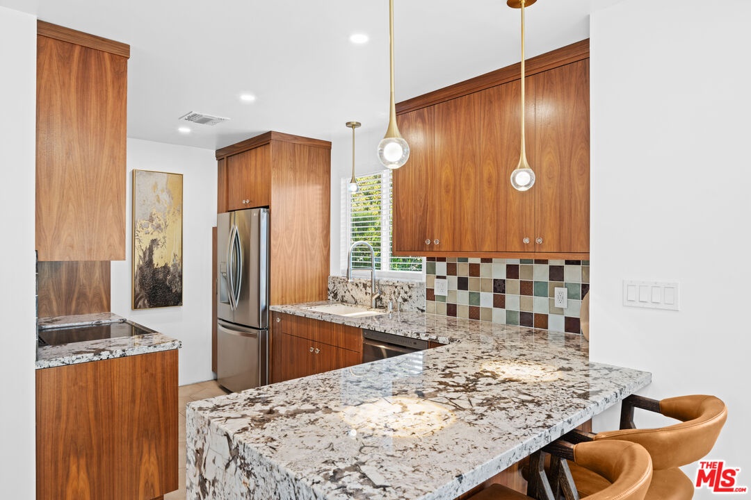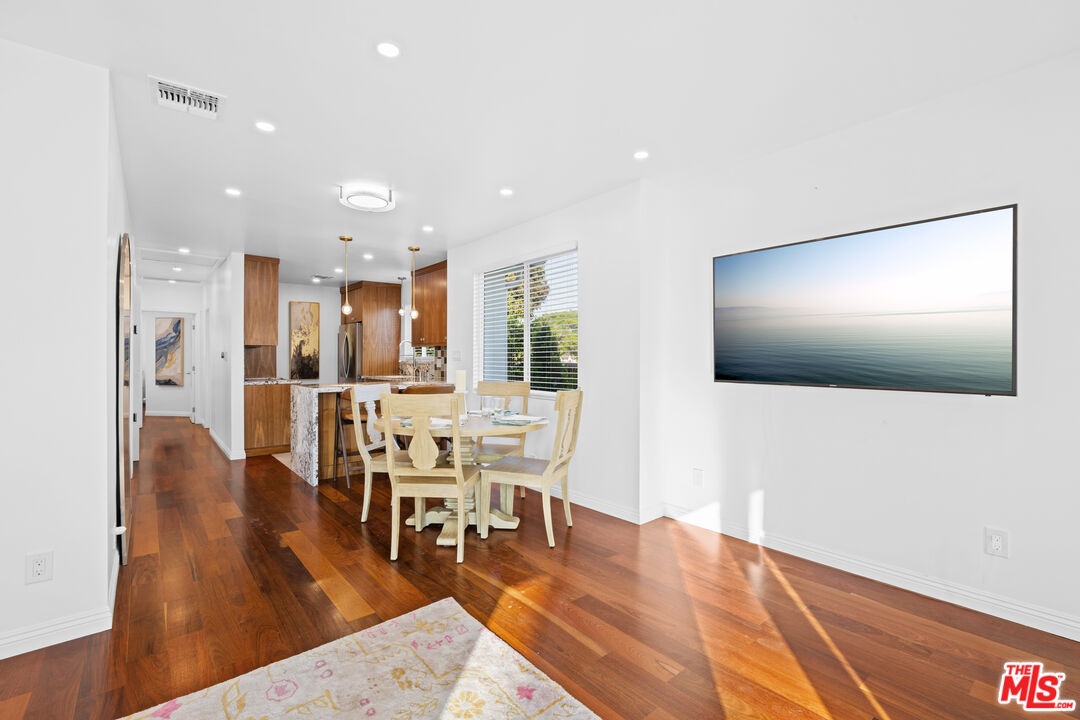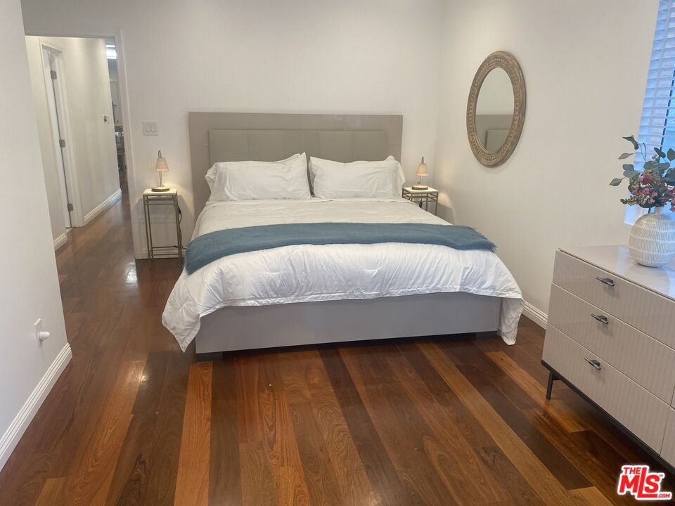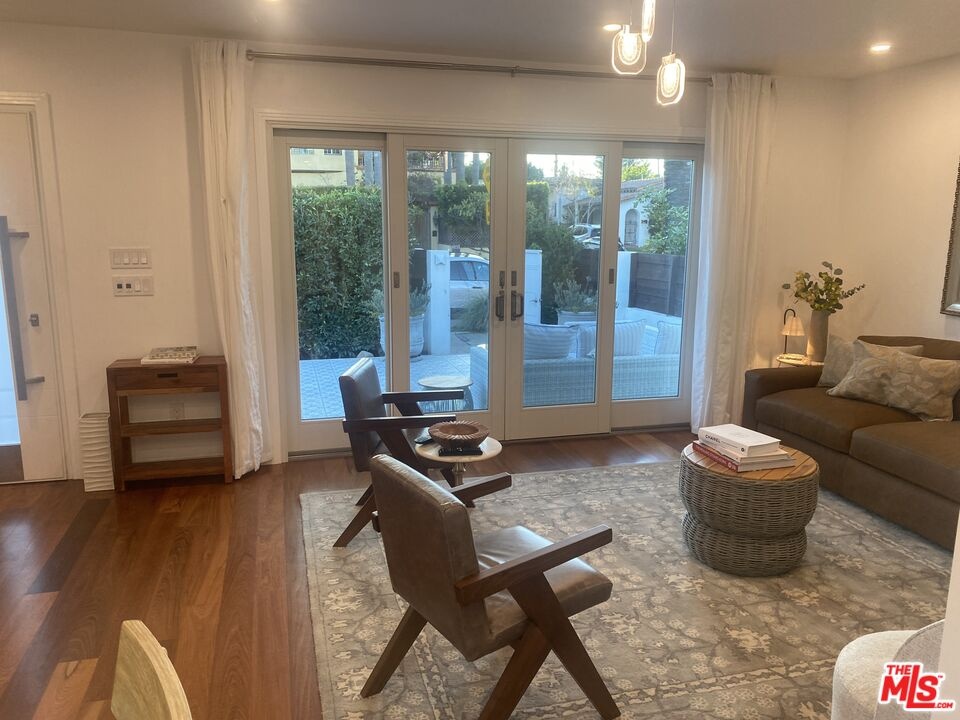 Experience elevated living in the heart of Westwood/Century City. This impeccably reimagined 3-bedroom, 2-bath Traditional residence has been thoughtfully renovated, showcasing bespoke contemporary finishes throughout. A gated, private front yard welcomes you with a beautifully tiled patio and designer planters, offering a serene introduction to the home's sophisticated design. Inside, sun-filled living spaces unfold effortlessly, with expansive sliders opening to the front patio perfect for indoor-outdoor entertaining. The open-concept layout flows into a designer kitchen outfitted with custom cabinetry, waterfall-edge granite countertops, a breakfast bar, striking glass tile backsplash, and a full suite of premium stainless-steel appliances, including high-end laundry. Rich hardwood flooring featuring a curated mix of ipe, walnut, and mahogany adds warmth and character throughout. The primary suite is a peaceful escape, complete with a walk-in closet, private access to the rear patio, and a tranquil yard. The spa-inspired primary bath offers dual vanities, granite counters, a luminous tiled shower, and a separate soaking tub for ultimate relaxation.The main residence and rear ADU are fully fenced and function independently, they appear as completely separate properties. Ideally located moments from Westfield Century City, Beverly Hills, UCLA, and the highly regarded Westwood Charter Elementary, this home presents a rare opportunity to enjoy refined living in one of Los Angeles' most desirable neighborhoods. The home is available fully furnished for immediate enjoyment.