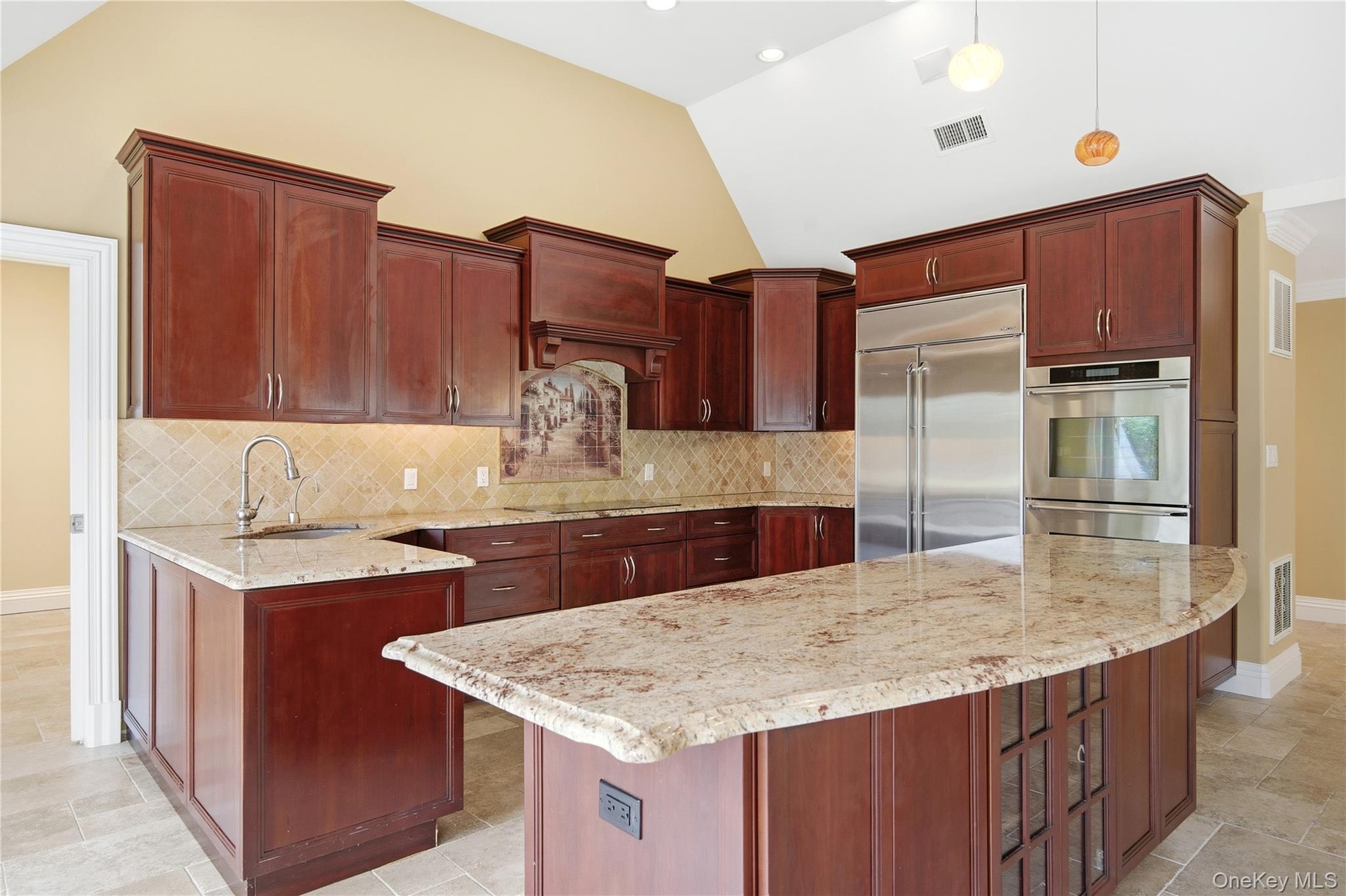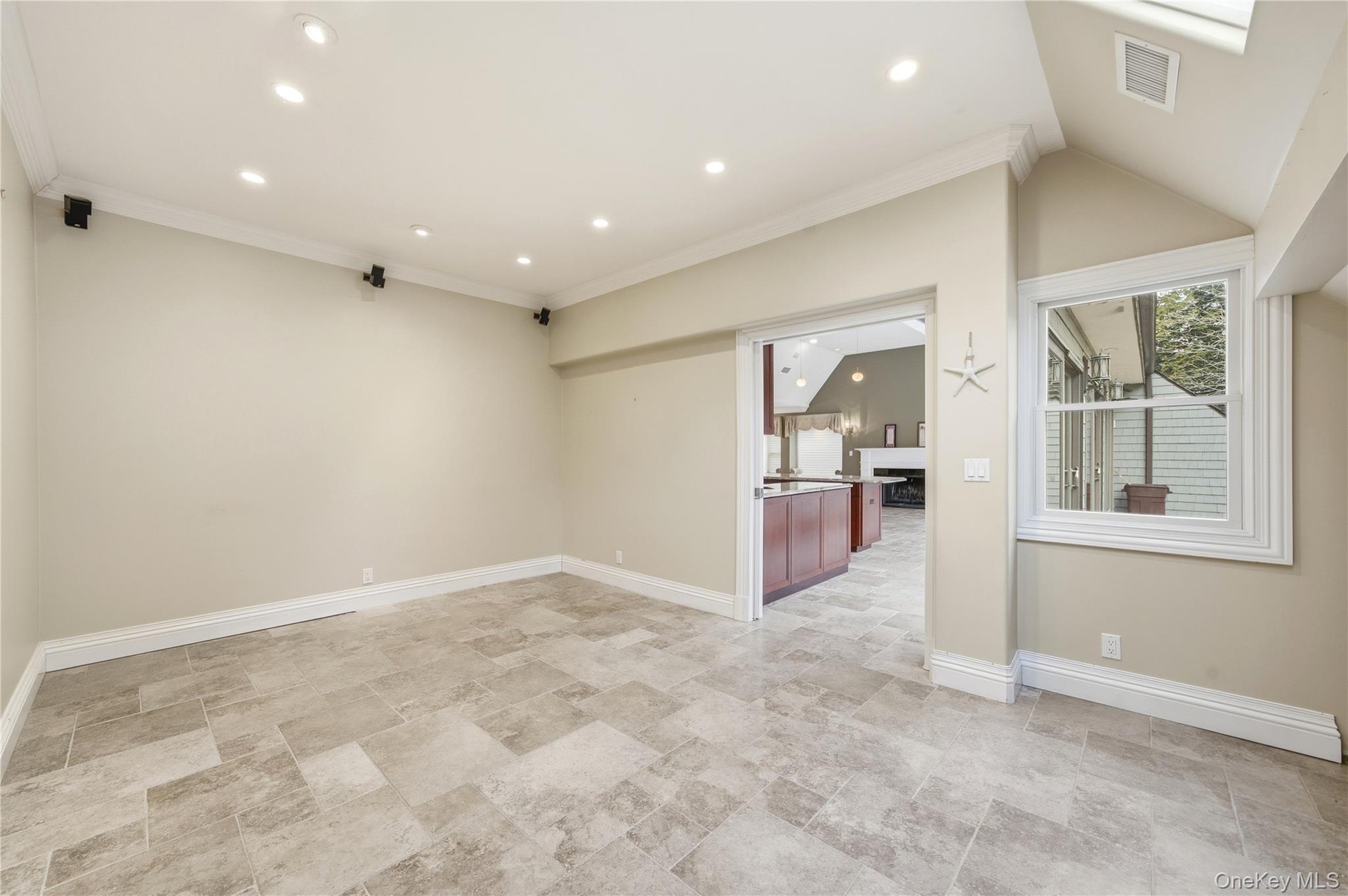 Step inside this beautifully designed Commodore model end unit ranch in the highly sought-after Admiralty development. A welcoming entry foyer opens to a spacious open-concept layout with soaring ceilings, abundant natural light, and a seamless flow ideal for entertaining. The expansive living room features a wood-burning fireplace and adjoins the dining area, which easily accommodates large gatherings all opening to the chef’s kitchen. This is truly the heart of the home, boasting granite countertops, stainless steel appliances, a double oven, sink with instant hot water and garbage disposal as well as a large center island with seating, additional storage and Murano glass pendant lighting. A wall of sliding glass doors frames the living room and kitchen all opening to a large paver patio and private garden area, creating an effortless indoor-outdoor lifestyle. The primary suite is a true retreat with a tray ceiling, large walk-in closet with radiant heat floors and a spa-like ensuite bath with radiant heat and steam shower. The second bedroom is perfectly appointed with its own full bath nearby, while the den provides flex space for a third bedroom, home office or creative studio. Additional upgrades include vaulted ceilings in the living room, dining room, and kitchen, tray ceiling in the primary suite, elegant crown and base moldings throughout, Waterford crystal lighting fixtures, raised panel solid wood doors, central vacuum, instant hot water and garbage disposal in kitchen —all luxury upgrades that add sophistication, ease and timeless style to this beautifully finished townhome. Enjoy a one-car attached garage, Attic storage with pull-down stairs, manicured landscaping, and a serene setting within one of Bay Shore’s most desirable gated enclaves. The Admiralty offers a resort-style lifestyle on the Great South Bay, complete with a Private Marina, Heated Pool, Har-Tru tennis/Pickleballs courts, Clubhouse with Fitness Center and Kitchen, Dog Run, and meticulously maintained grounds with water views. Experience luxury, convenience, and coastal living all in one – where every day feels like a getaway.