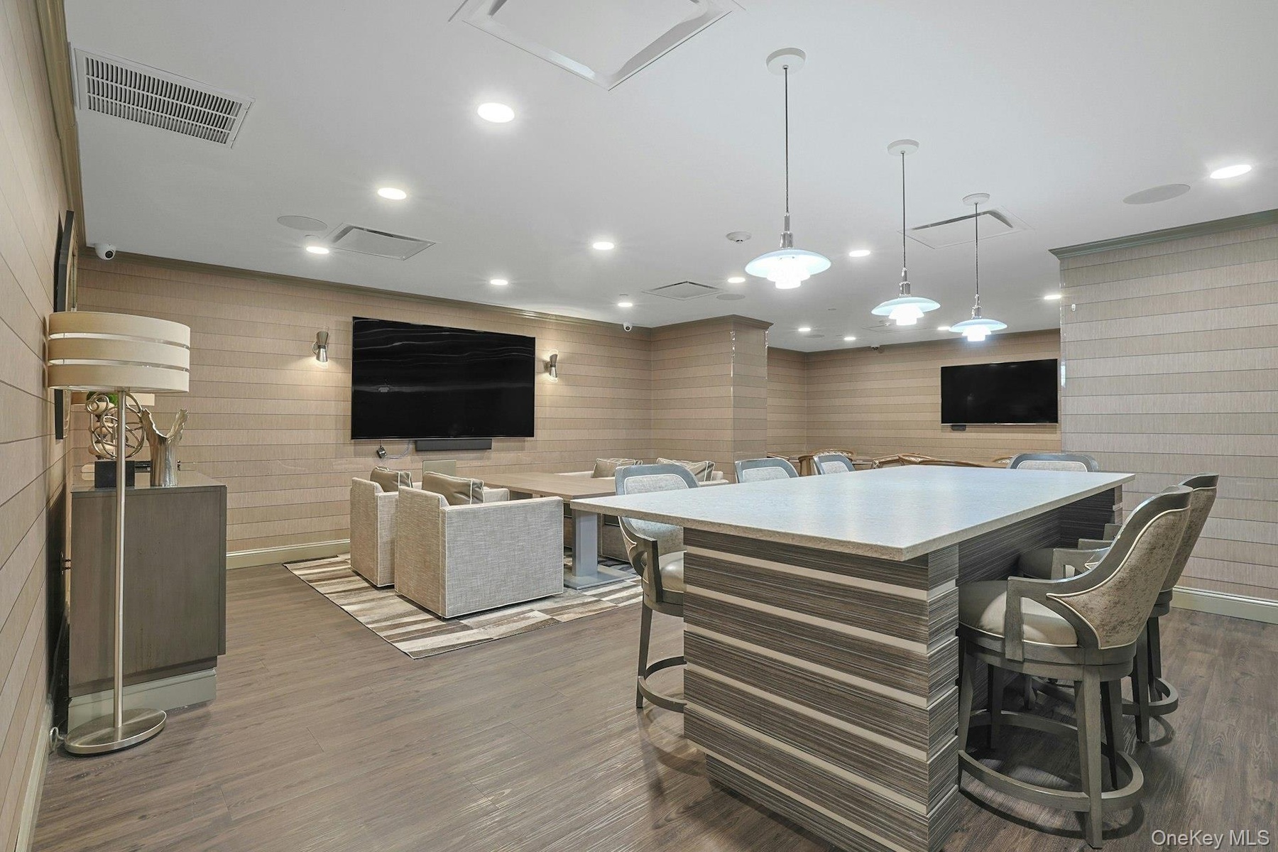 11-foot ceilings and expansive open-concept design, evoking the airy, modern feel of a chic SoHo loft. Floor-to-ceiling windows offer lovely views and bathe the home in natural light. An elegant gas fireplace adds warmth and a refined ambiance to the main living space. The fabulous chef’s kitchen opens seamlessly to the living and dining areas and features stone countertops, stainless steel appliances, and a generous center island with seating—perfect for relaxed everyday living as well as effortless entertaining.The tranquil and private primary suite boasts a spa-inspired, newly renovated white marble bathroom with radiant heated floors, double vanity, soaking tub, and separate shower. Two additional bedrooms offer wonderful versatility and can serve as guest suites, home offices, or creative spaces. They share a beautifully renovated hall bath with a seamless/no-step oversized shower with both rain-head and handheld fixtures. There are six Nest thermostats throughout the apartment providing customized comfort and climate control at every turn, as well as an Arlo security/camera system. Additional conveniences include a stylish marble powder room, an in-unit stackable washer/dryer and an optional lower level (L3) storage room/closet. Residents enjoy an unparalleled array of amenities, including a fabulous and sprawling 9th floor recreation deck with swimming pool (lifeguard on duty), changing rooms, night lit tennis/pickleball courts, multiple BBQ areas, basketball court, putting green, children's playground, herb gardens and walking paths. Indoor amenities are abundant with a wonderful indoor swimming pool with spa and sauna, a newly renovated fitness center with weights, Peloton bikes, and a stretching room, fabulous business center with conference facilities, playroom, and a residents lounge.