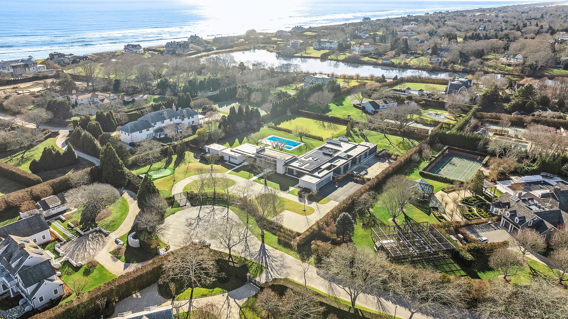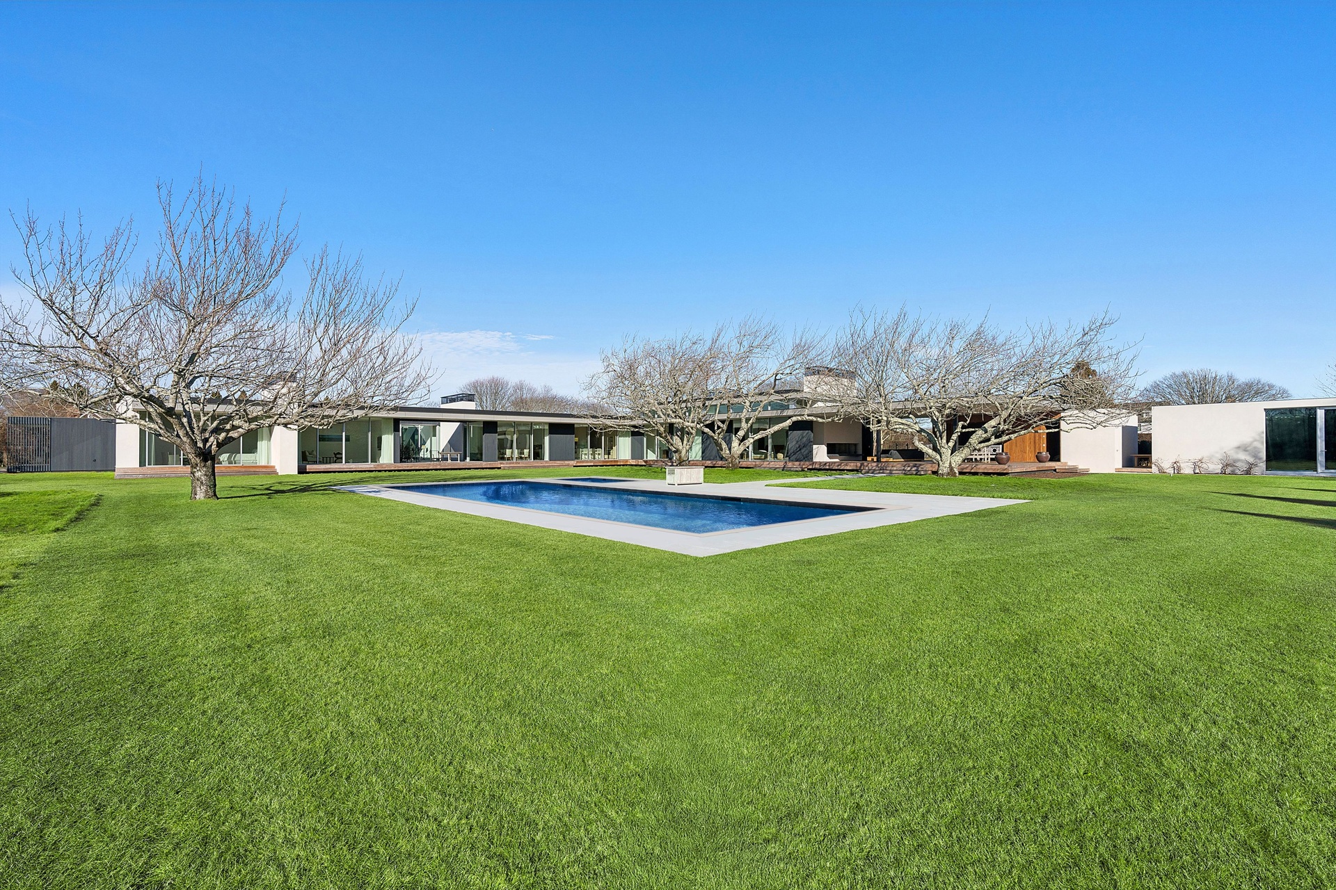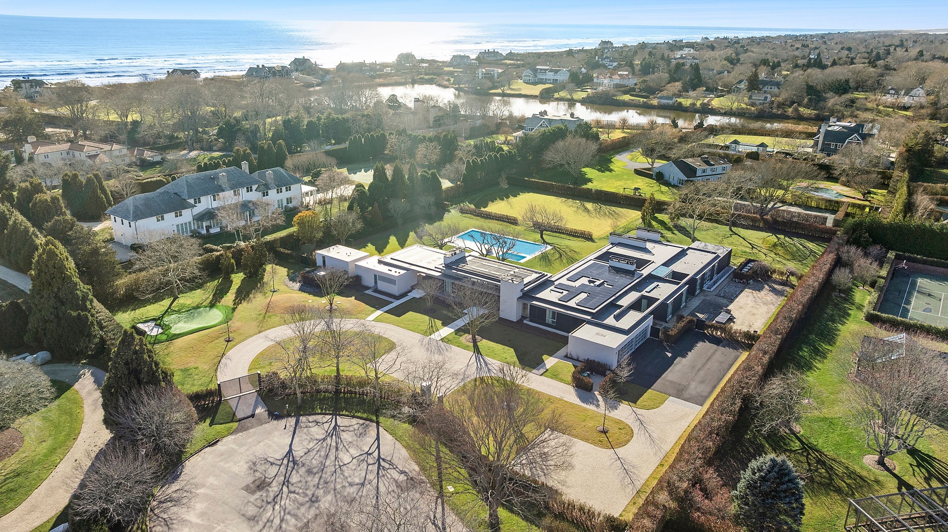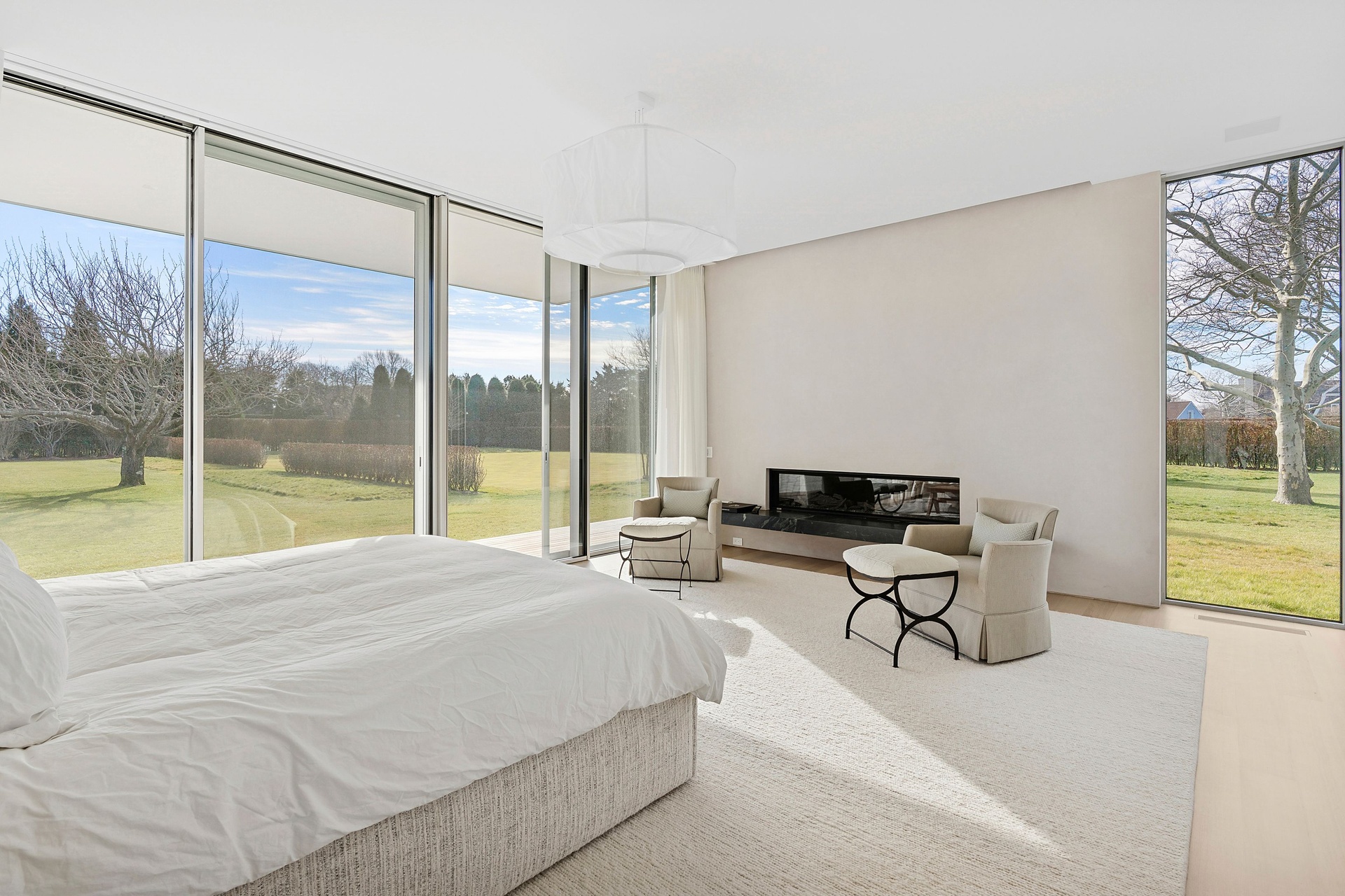 Tucked along one of Southampton Village’s most coveted lanes and just moments from the ocean, 156 Duck Pond Laneis a brand-new modern estate that redefines luxury coastal living. Set behind gates on a beautifully landscaped parcel, the residence unfolds as a private retreat where architecture, light, and lifestyle converge. Clean modern lines are softened by warm natural materials and walls of glass, allowing sunlight to pour into every corner of the home while seamlessly connecting the interiors to the expansive grounds.