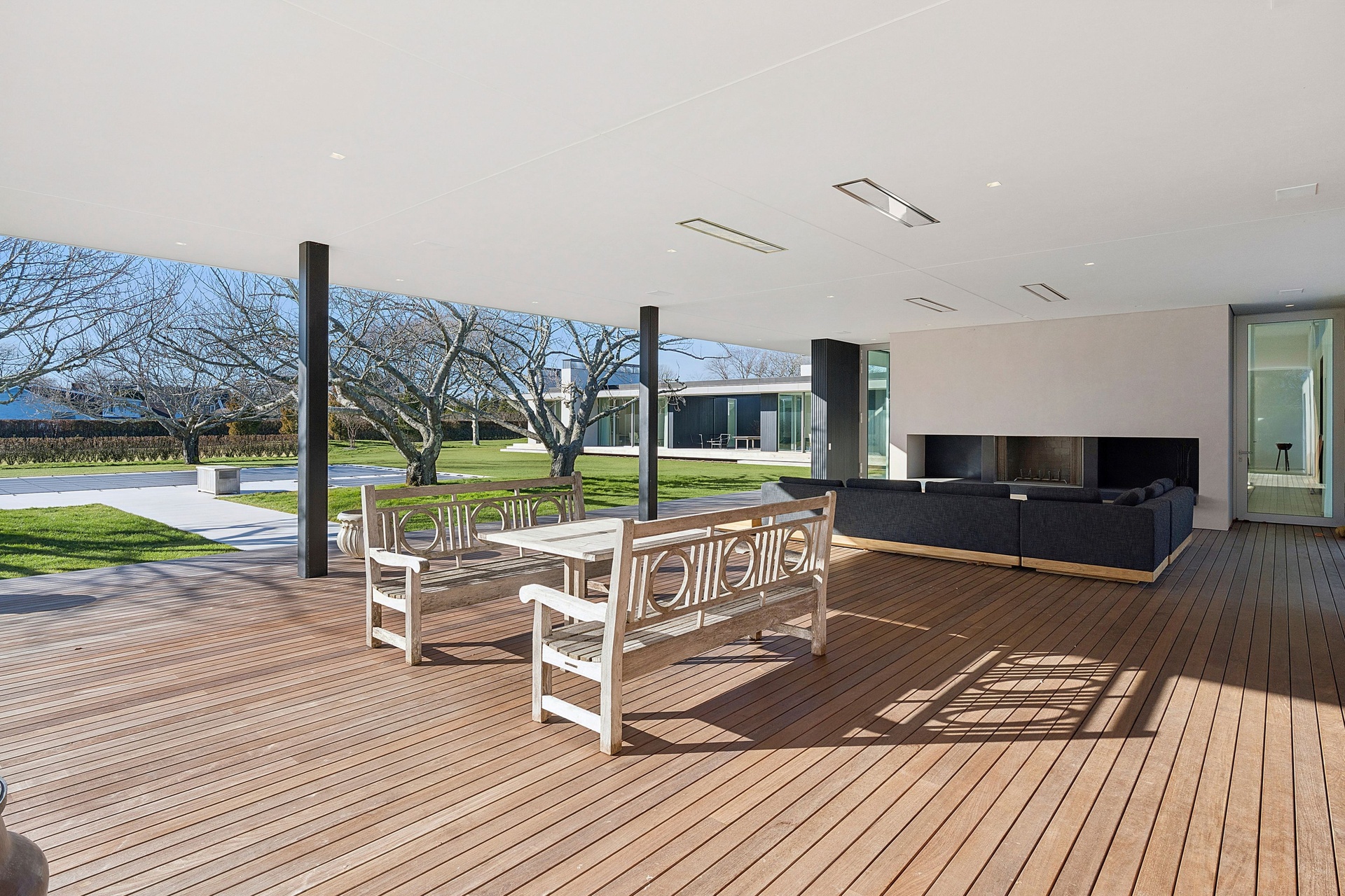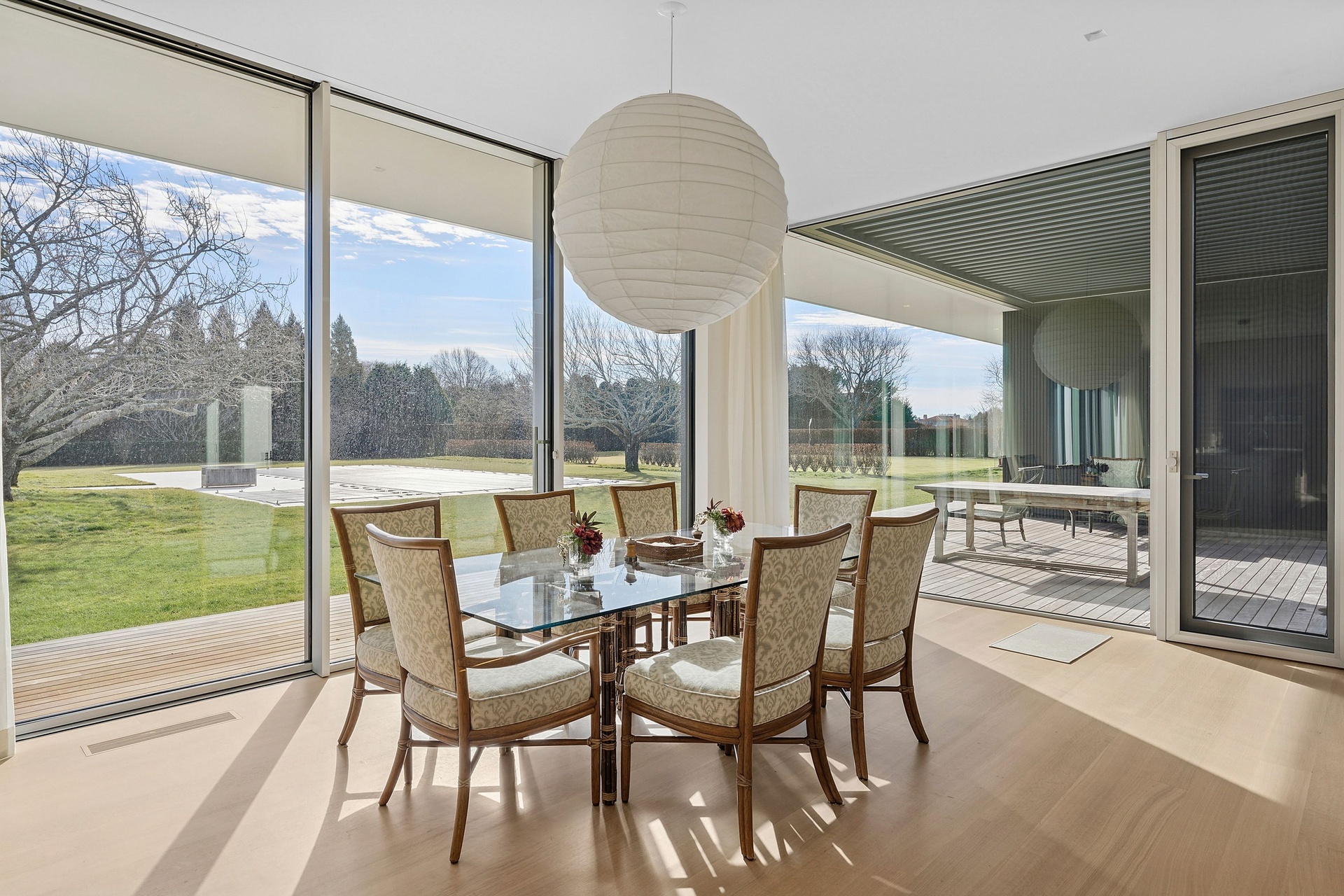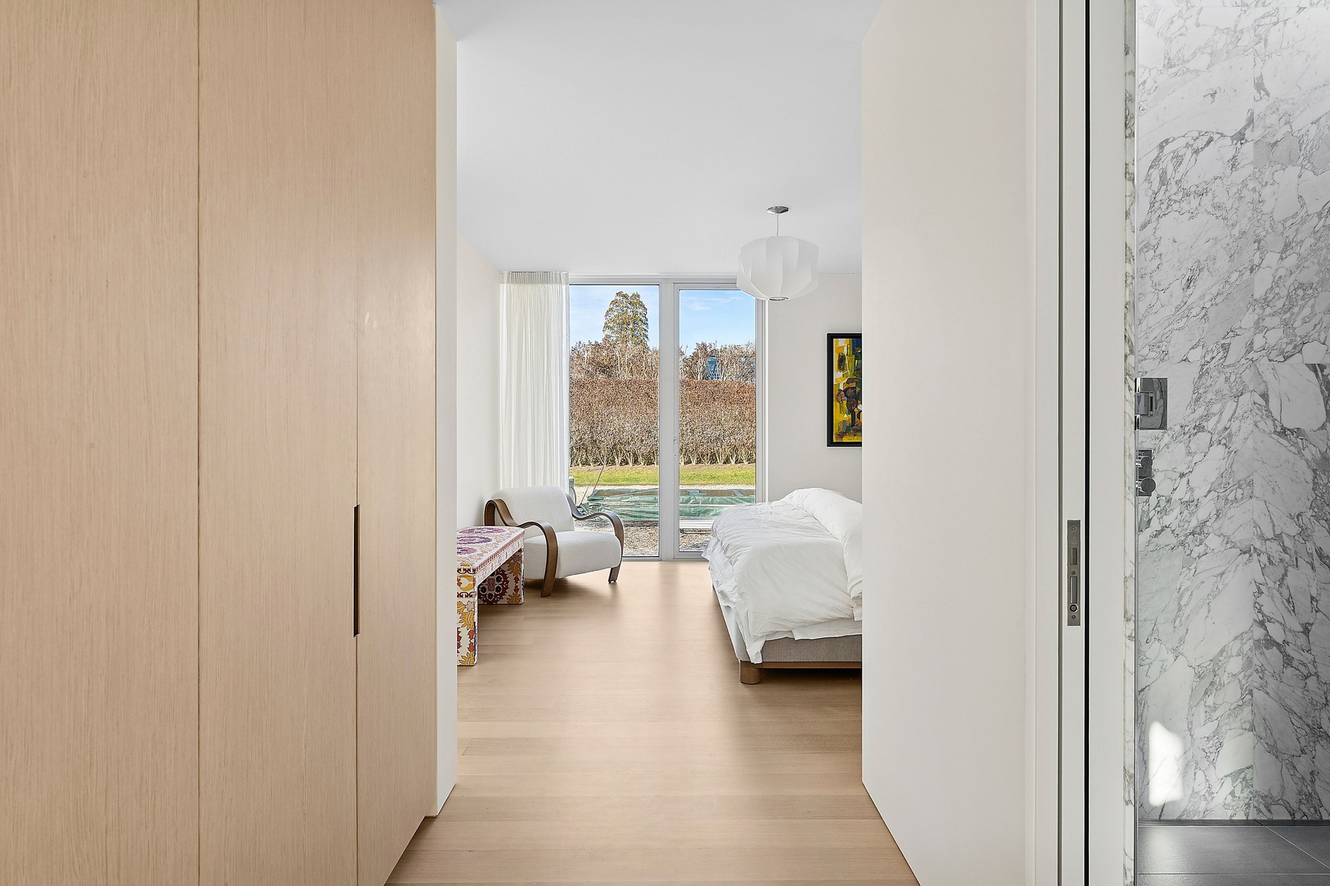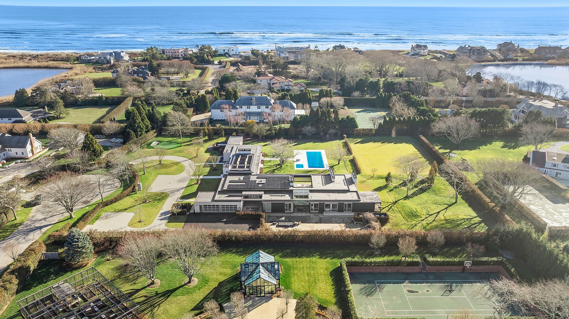 Tucked along one of Southampton Village’s most coveted lanes and just moments from the ocean, 156 Duck Pond Laneis a brand-new modern estate that redefines luxury coastal living. Set behind gates on a beautifully landscaped parcel, the residence unfolds as a private retreat where architecture, light, and lifestyle converge. Clean modern lines are softened by warm natural materials and walls of glass, allowing sunlight to pour into every corner of the home while seamlessly connecting the interiors to the expansive grounds.