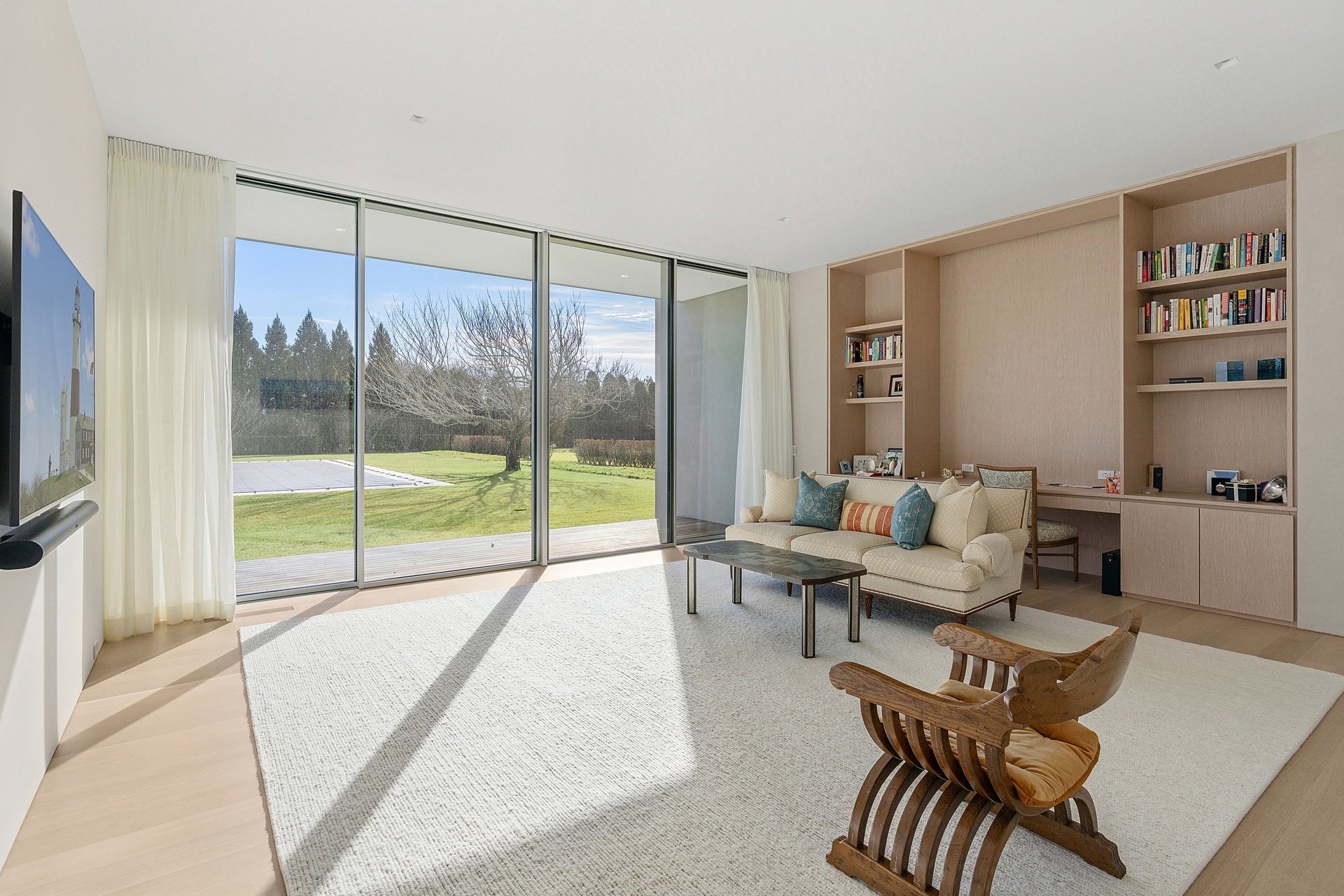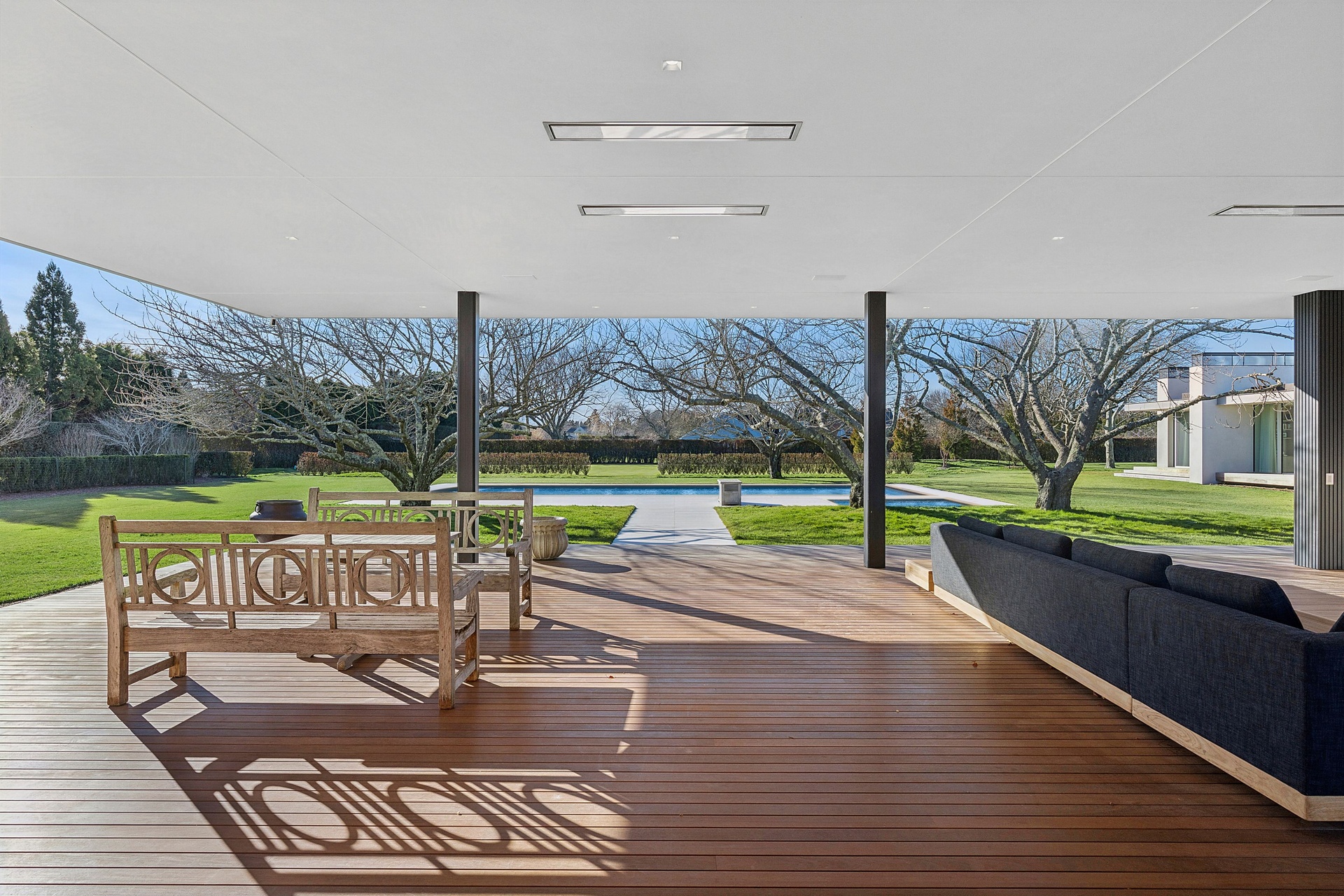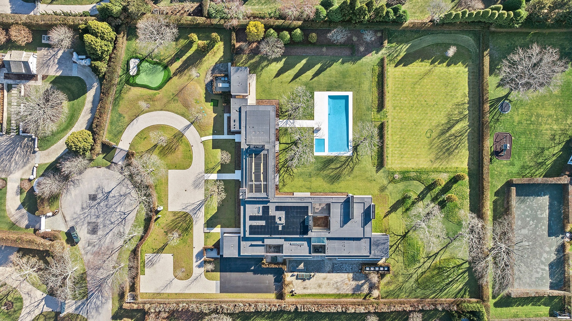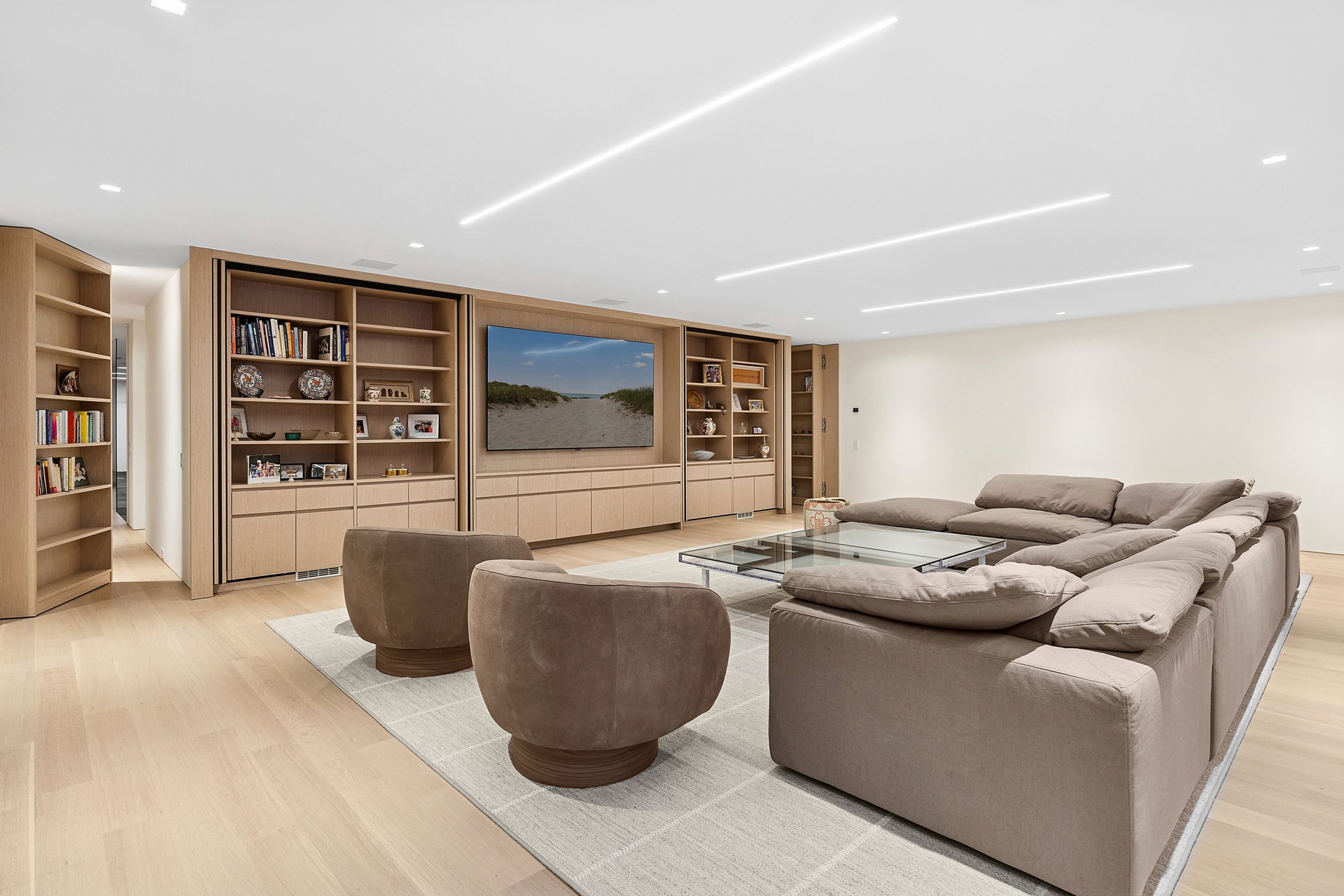 Tucked along one of Southampton Village’s most coveted lanes and just moments from the ocean, 156 Duck Pond Laneis a brand-new modern estate that redefines luxury coastal living. Set behind gates on a beautifully landscaped parcel, the residence unfolds as a private retreat where architecture, light, and lifestyle converge. Clean modern lines are softened by warm natural materials and walls of glass, allowing sunlight to pour into every corner of the home while seamlessly connecting the interiors to the expansive grounds.
