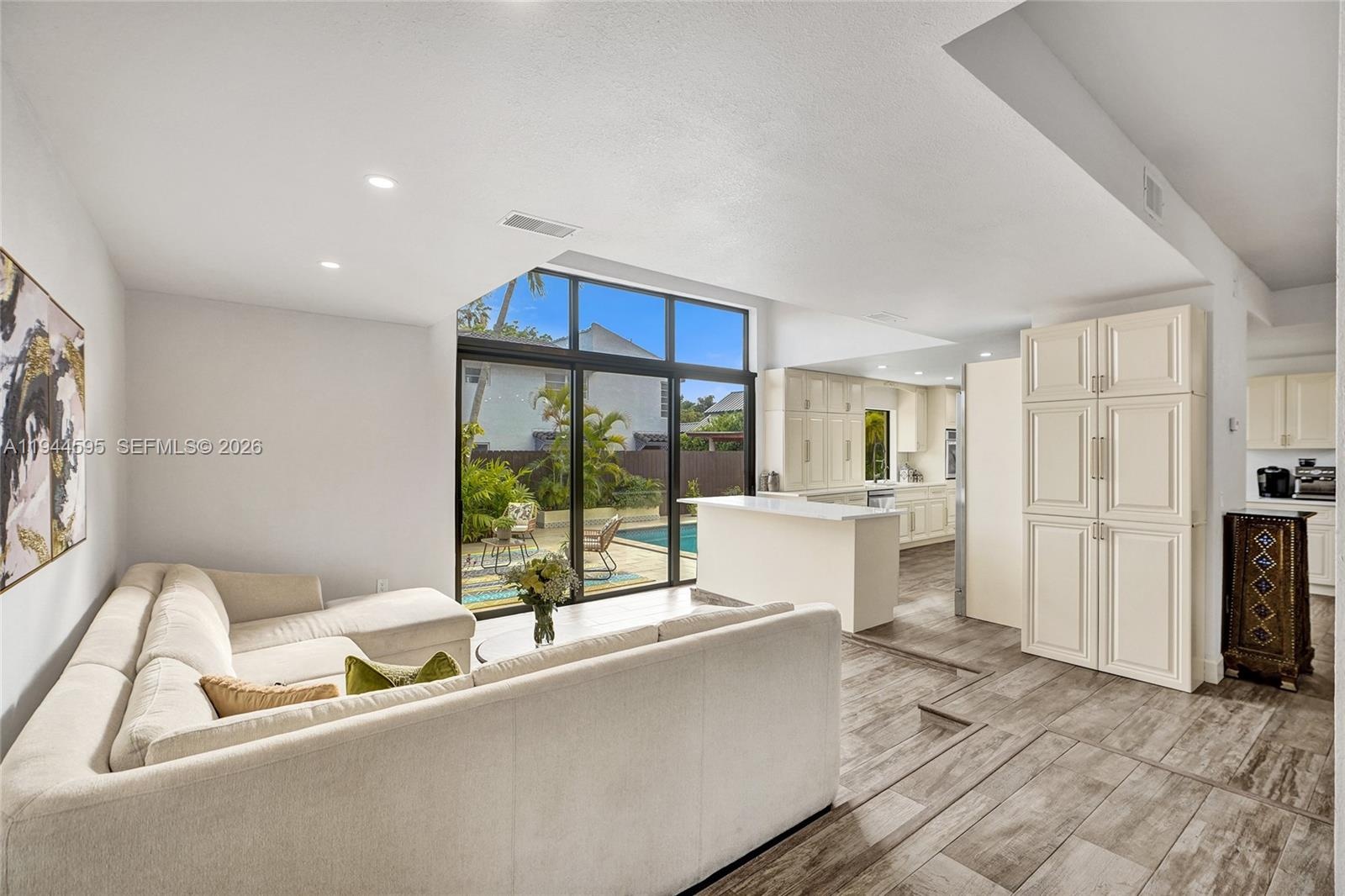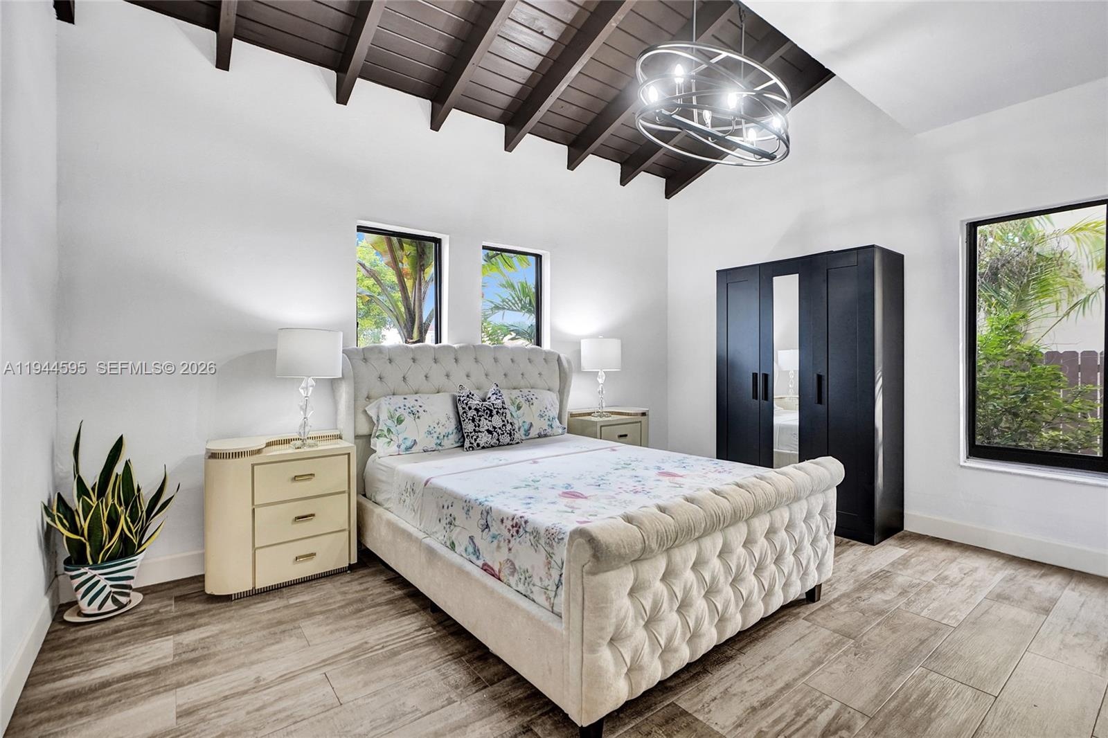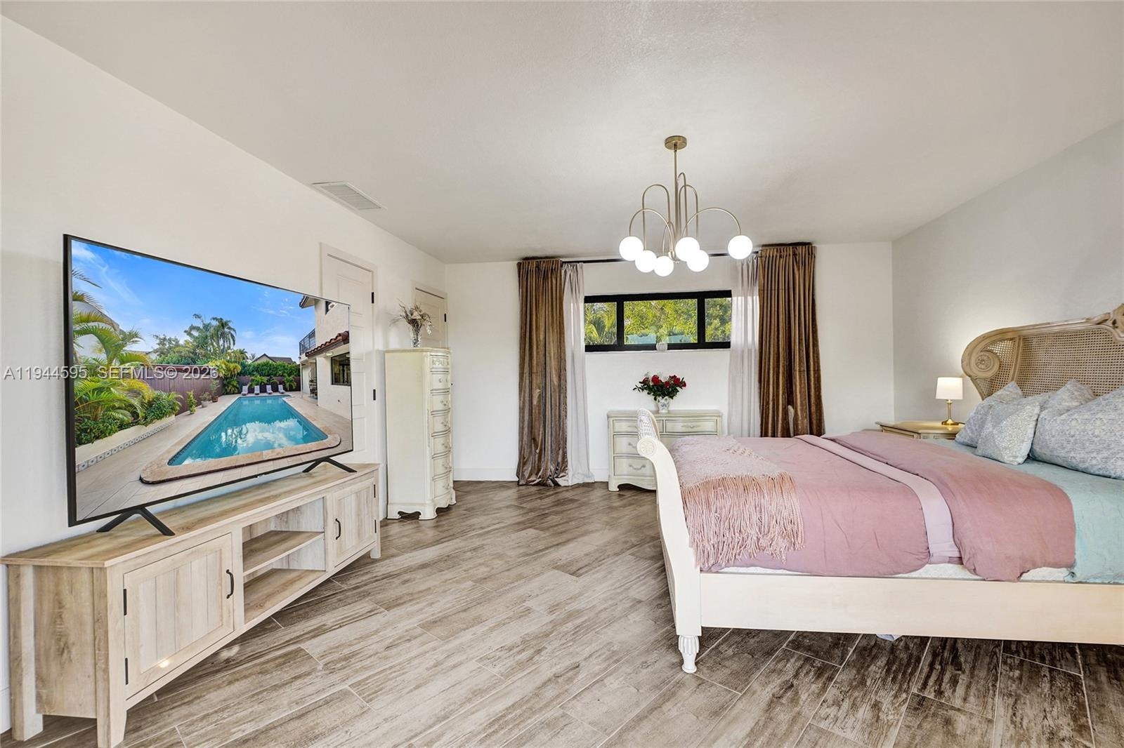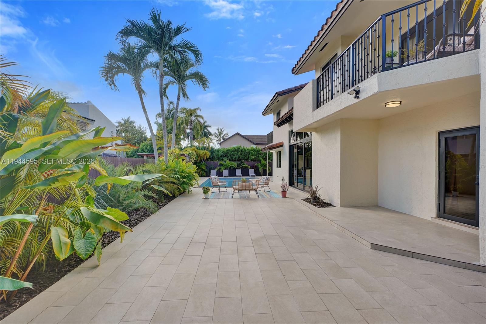 A RARE & TRUE TURN-KEY 6 BED/4 BATH RESIDENCE W/ IMPRESSIVE FEATURES & INCOME POTENTIAL UNSEEN IN THE AREA. Very few homes offer this level of size and design and NO OTHER HOME ON THE MARKET HAS SIX TRUE BEDROOMS with, not one, but THREE PRIMARY MASTER SUITES & ENSUITE BATHROOMS. The layout includes ONE PRIMARY ON MAIN LEVEL & TWO UPSTAIRS providing privacy & versatility. The main-level primary offers a PRIVATE DOUBLE-DOOR EXTERIOR ENTRANCE ideal for SEPARATE LIVING OR ADDITIONAL INCOME POTENTIAL. The living room & (2) downstairs bedrooms are highlighted by VAULTED TIMBER WOOD CEILINGS adding warmth, character, and architectural presence also rarely seen. Over $300,000 IN RENOVATIONS have been completed resulting in a space that is FUNCTIONALLY NEW. Updates include IMPACT WINDOWS AND DOORS, APPLIANCES, A DOUBLE-WIDE BRICK-PAVED EXTERIOR, & DESIGNER FINISHES throughout. The SPLIT FLOOR PLAN & EXTRA-WIDE LOT FOOTPRINT create an open, airy feel w/ beautiful curb appeal just 4 MINS FROM 836 HIGHWAY. Outdoor living features THREE BALCONIES, SECOND-FLOOR ACCESS VIA A SPIRAL STAIRCASE, and a 30x13 EXTRA-LONG, CONVERTED SALTWATER POOL. CITY-APPROVED ARCHITECTURAL PLANS FOR ADDED 2 BED/1 BATH GARAGE CONVERSION convey with the sale offering a path to FUTURE INCOME OR ADD’TL LIVING SPACE. TAXES also COMPARATIVELY LOW. Come & enjoy this refined blend of LUXURY, SCALE, AND FUNCTIONALITY that sets this home apart. SEE ATTACHED LIST FOR FULL FEATURES & UPDATES. EASY TO SHOW VIA SHOWINGTIME.