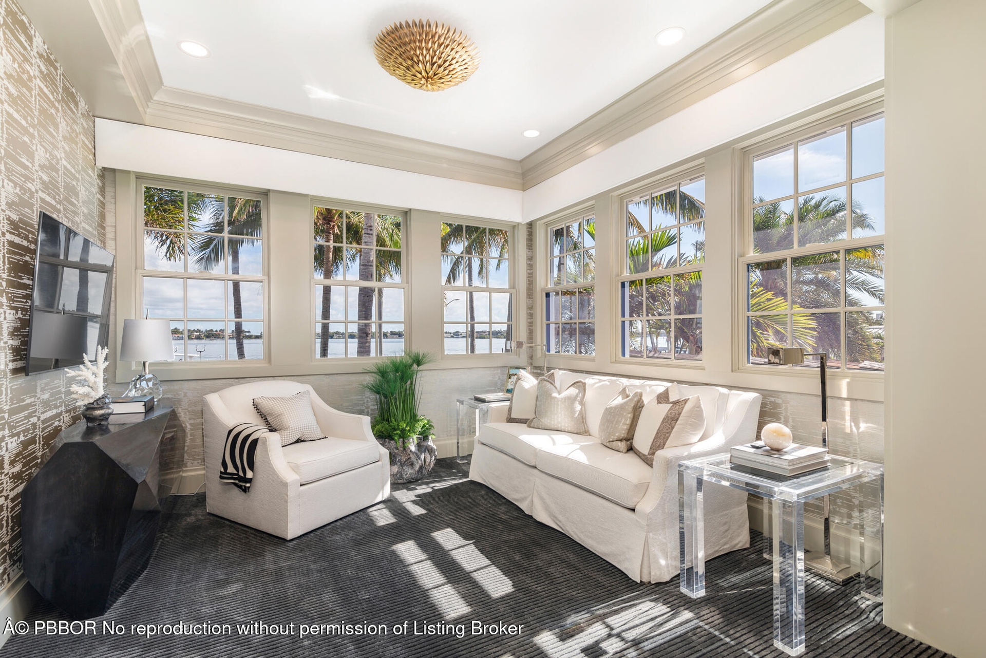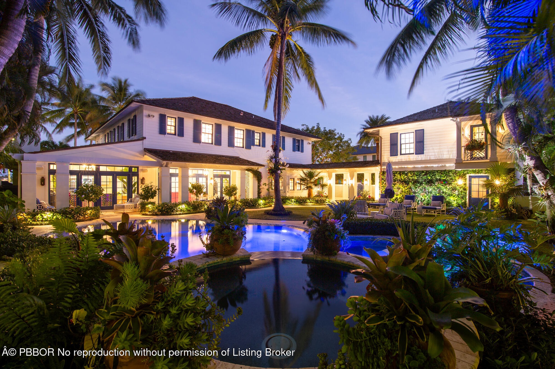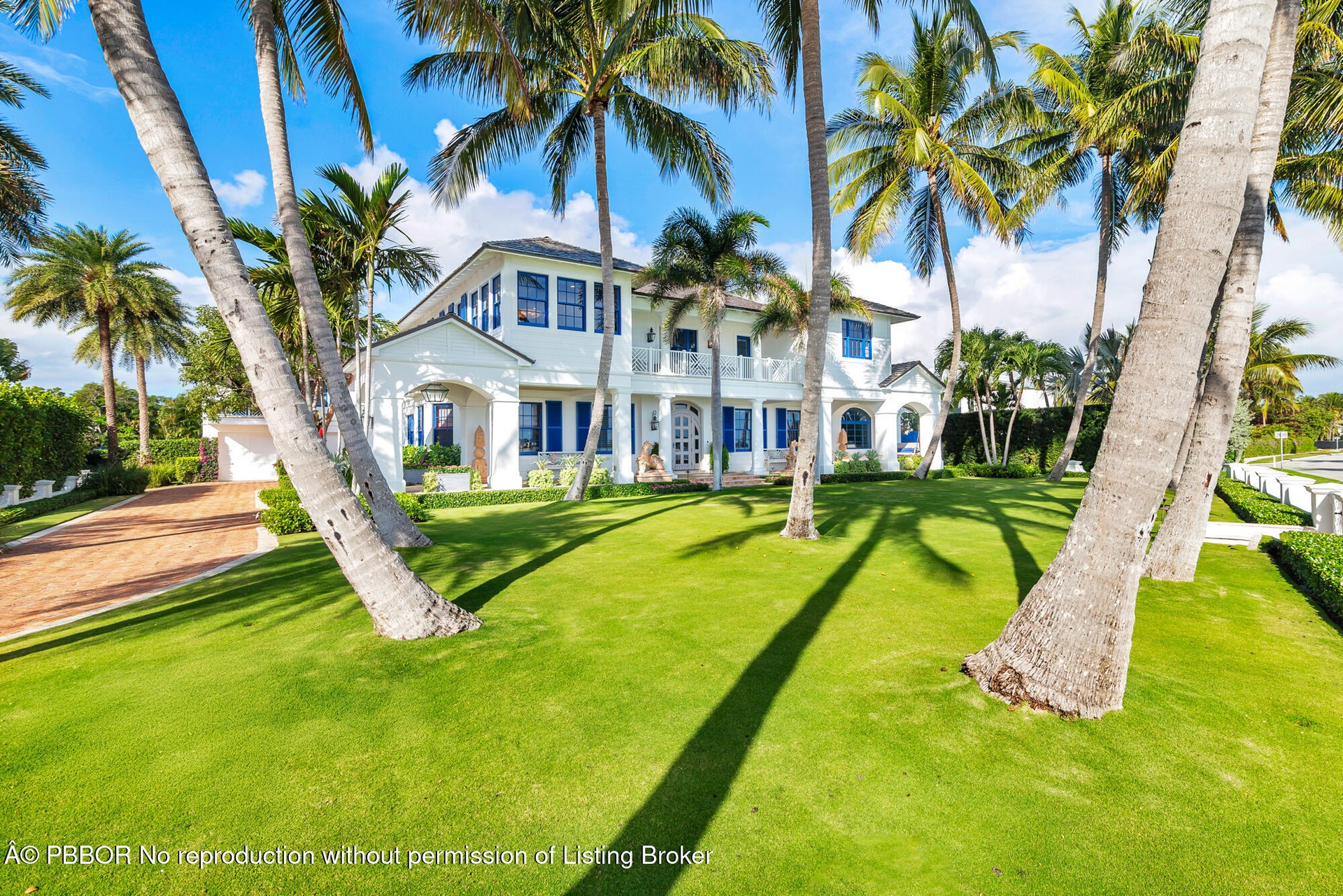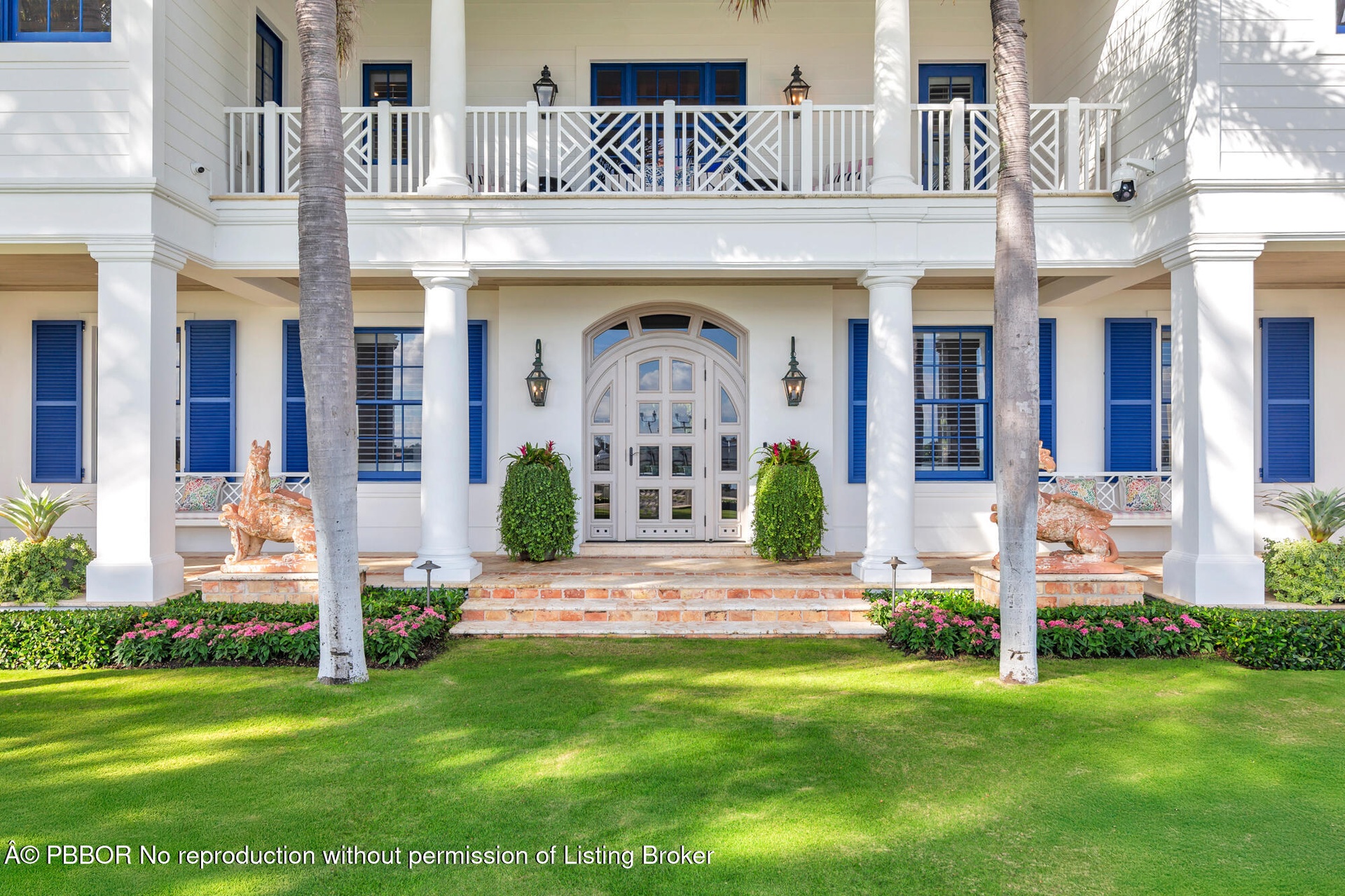 Regarded as the Jewel of South Flagler, this beloved waterfront residence sits on over a half-acre of prime Intracoastal property with over 130 feet of water frontage, celebrated for its striking architecture and inspired design. Originally envisioned by Roy & Posey Architects and completed by Island Construction in 2013 and now fully-transformed and elevated by the world-renowned Robert Trown and Associates, the estate spans over 9,000± square feet under roof and is composed of a main residence complemented by a separate guest house. The primary home includes five bedrooms and four and a half baths, with a first-floor bedroom currently enjoyed as an office, and a separate one-bedroom guest house replete with a full kitchen, vaulted ceilings, and private balcony. Oriented to capture wide-water views, the main living areas offer an open family room flowing into an eat-in kitchen, appointed with imported custom Italian cabinetry and a dramatic rare imported blue Sodalite island. The formal dining room frames the Intracoastal, while expansive glass doors open to covered loggias to create an effortless indoor-outdoor rhythm. The owner's suite is light-filled and airy, featuring panoramic views and balcony. Throughout, curated designer finishes and custom dramatic light fixtures add definition and artistry to every space. Outdoors, the property lives as a private resort, with a heated pool and spa, generous terraces for lounging and dining, and a backyard oasis highlighted by an artistic living wall. The private dock includes a 50,000-pound boat lift, accommodating substantial vessels with ease. A detached guest house with private entry, full kitchen, and studio-style living/sleeping space provides ideal accommodations for guests or extended stays. Located minutes from beaches, the Flagler Drive waterfront path, PBIA, dining, shopping, and .9 miles from Mar A Lago, this offering represents waterfront living at its most refined, architecturally significant, beautifully finished, and rarely available. DISCLAIMER: The written and verbal information provided including but not limited to prices, measurements, square footages, lot sizes, calculations and statistics have been obtained and conveyed from third parties such as the applicable Multiple Listing Service, public records as well as other sources. All information including that produced by the Sellers or Listing Company are subject to errors, omissions or changes without notice and should be independently verified by any prospect for the purchase of a Property. The Sellers and Listing Company expressly disclaim any warranty or representation regarding all information. Prospective purchasers' use of this or any written and verbal information is acknowledgement of this disclaimer and that Prospects shall perform their own due diligence. Prospective purchasers shall not rely on any written or verbal information provided when entering a contract for sale and purchase. Some affiliations may not be applicable to certain geographic areas. Copyright 2023 Listing Company. All Rights Reserved.