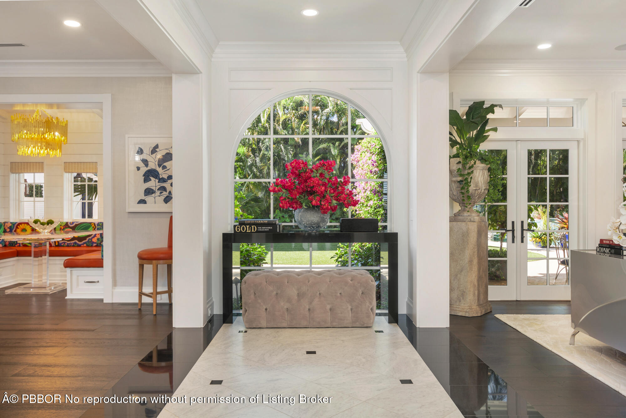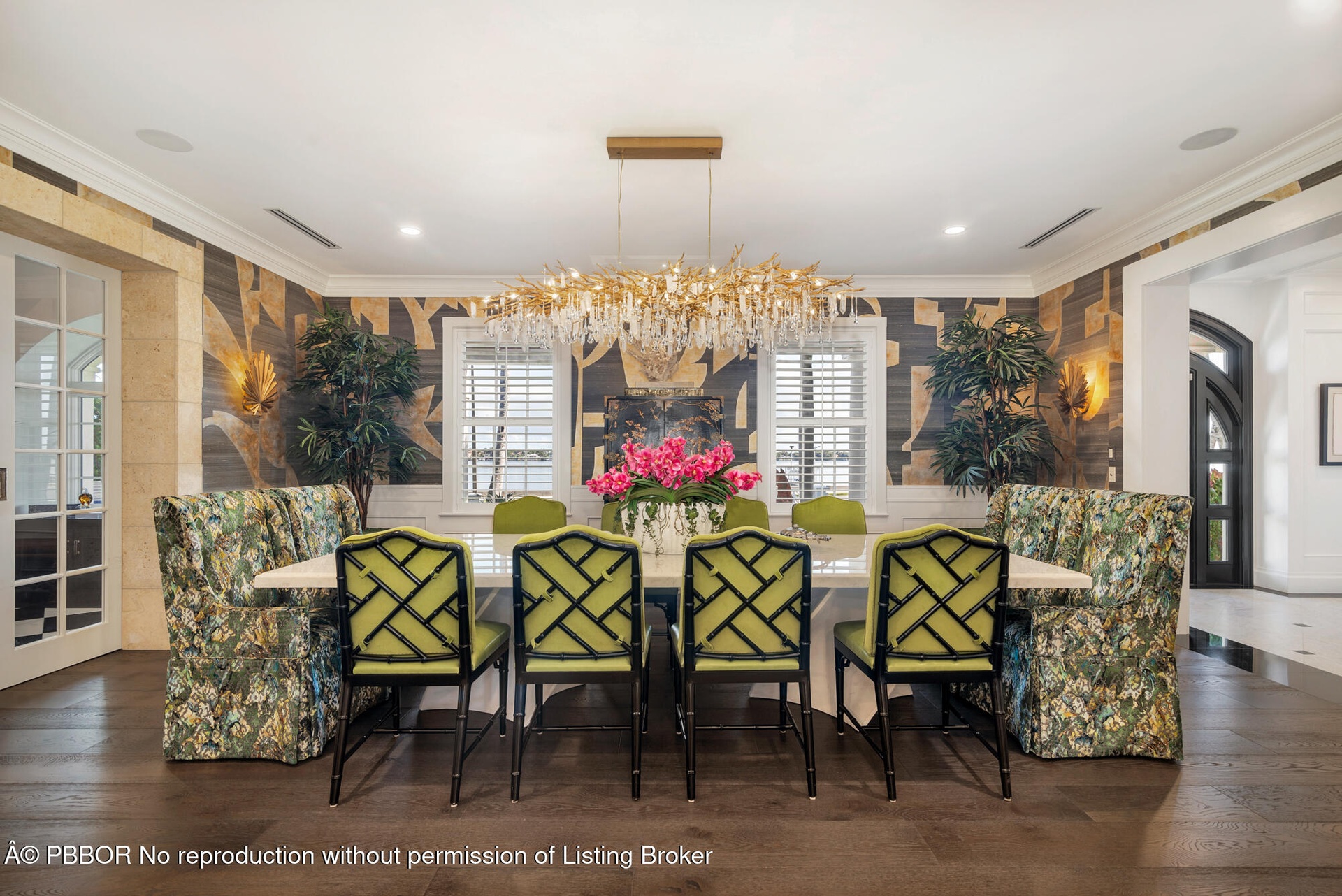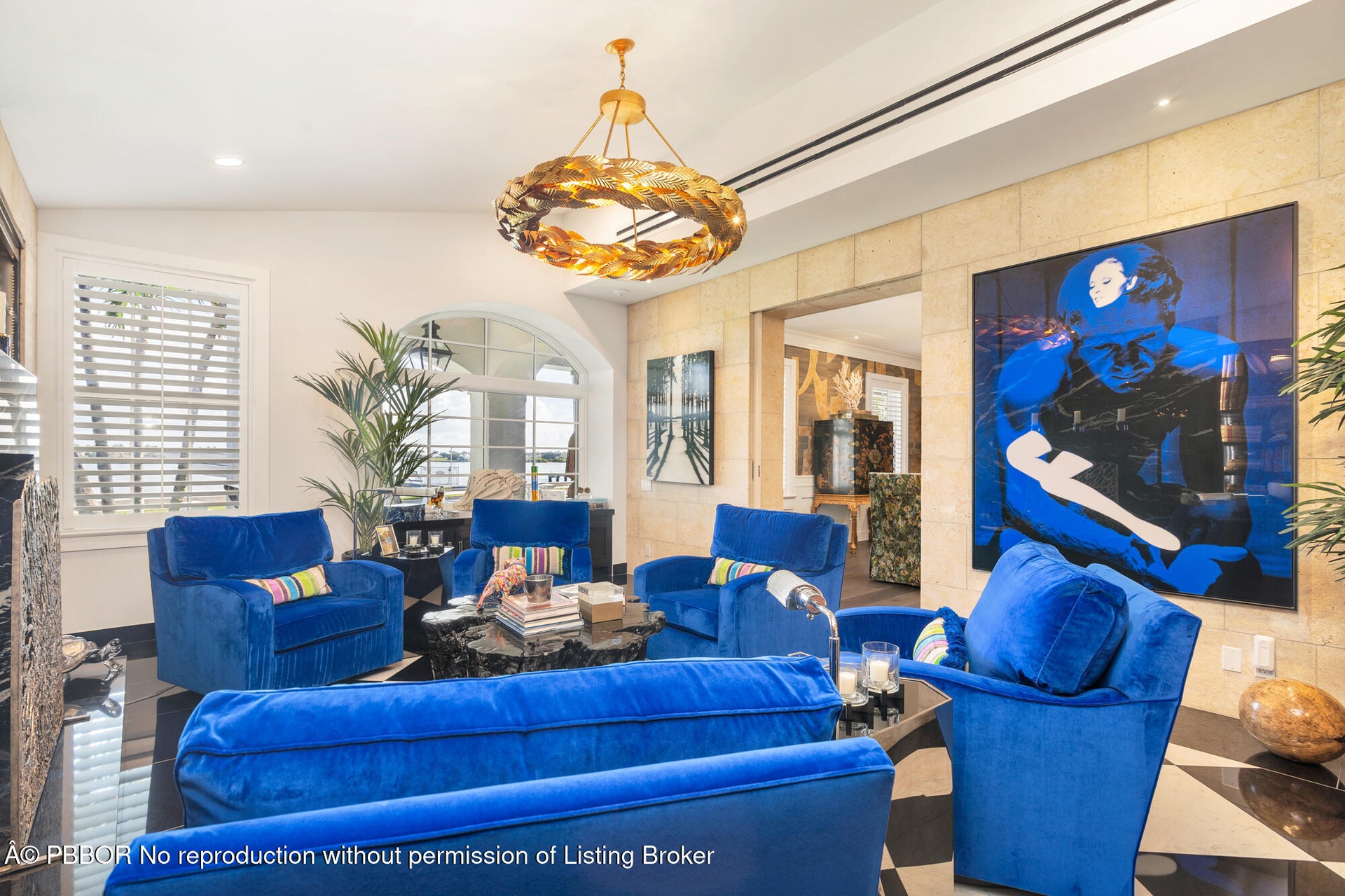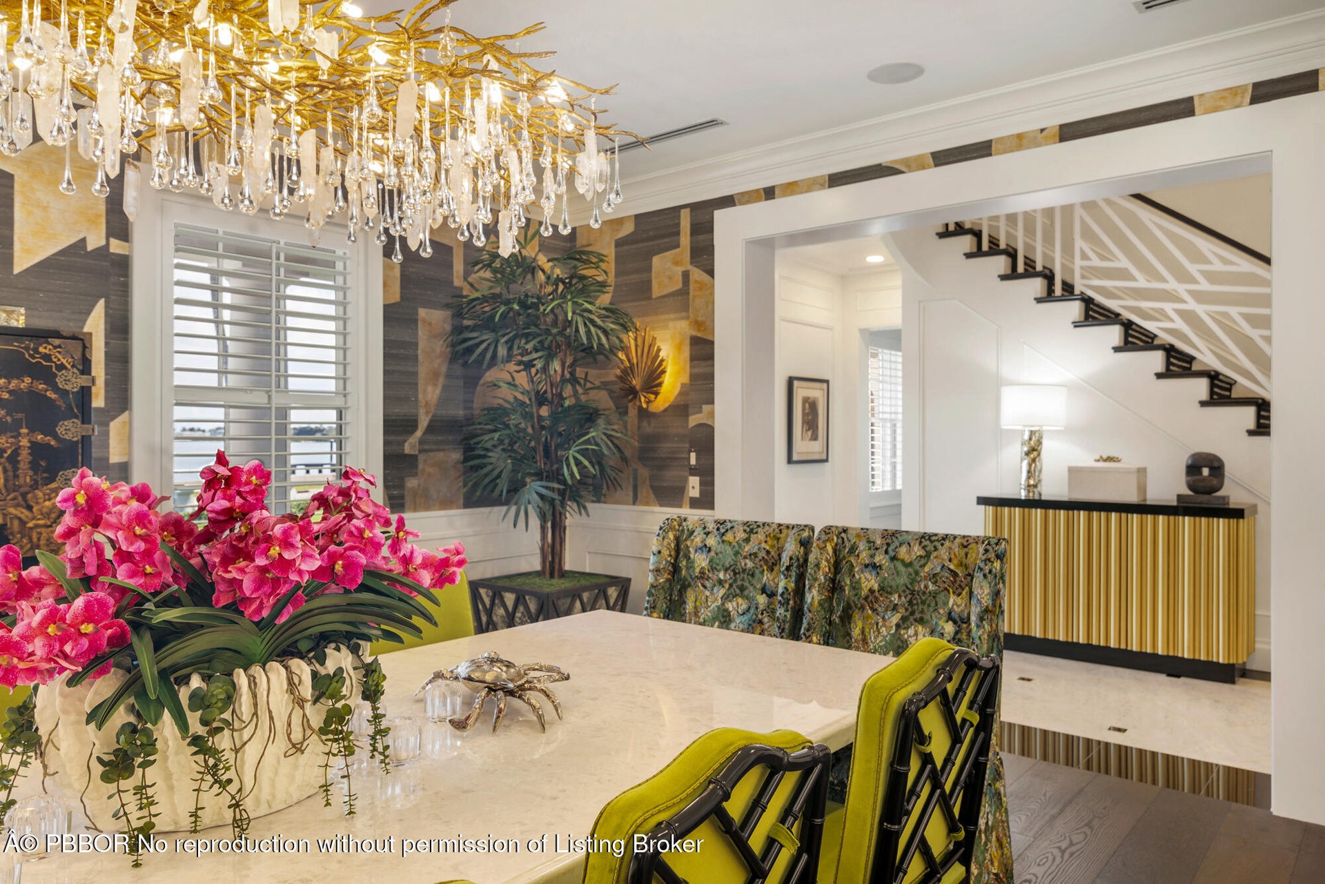 Regarded as the Jewel of South Flagler, this beloved waterfront residence sits on over a half-acre of prime Intracoastal property with over 130 feet of water frontage, celebrated for its striking architecture and inspired design. Originally envisioned by Roy & Posey Architects and completed by Island Construction in 2013 and now fully-transformed and elevated by the world-renowned Robert Trown and Associates, the estate spans over 9,000± square feet under roof and is composed of a main residence complemented by a separate guest house. The primary home includes five bedrooms and four and a half baths, with a first-floor bedroom currently enjoyed as an office, and a separate one-bedroom guest house replete with a full kitchen, vaulted ceilings, and private balcony. Oriented to capture wide-water views, the main living areas offer an open family room flowing into an eat-in kitchen, appointed with imported custom Italian cabinetry and a dramatic rare imported blue Sodalite island. The formal dining room frames the Intracoastal, while expansive glass doors open to covered loggias to create an effortless indoor-outdoor rhythm. The owner's suite is light-filled and airy, featuring panoramic views and balcony. Throughout, curated designer finishes and custom dramatic light fixtures add definition and artistry to every space. Outdoors, the property lives as a private resort, with a heated pool and spa, generous terraces for lounging and dining, and a backyard oasis highlighted by an artistic living wall. The private dock includes a 50,000-pound boat lift, accommodating substantial vessels with ease. A detached guest house with private entry, full kitchen, and studio-style living/sleeping space provides ideal accommodations for guests or extended stays. Located minutes from beaches, the Flagler Drive waterfront path, PBIA, dining, shopping, and .9 miles from Mar A Lago, this offering represents waterfront living at its most refined, architecturally significant, beautifully finished, and rarely available. DISCLAIMER: The written and verbal information provided including but not limited to prices, measurements, square footages, lot sizes, calculations and statistics have been obtained and conveyed from third parties such as the applicable Multiple Listing Service, public records as well as other sources. All information including that produced by the Sellers or Listing Company are subject to errors, omissions or changes without notice and should be independently verified by any prospect for the purchase of a Property. The Sellers and Listing Company expressly disclaim any warranty or representation regarding all information. Prospective purchasers' use of this or any written and verbal information is acknowledgement of this disclaimer and that Prospects shall perform their own due diligence. Prospective purchasers shall not rely on any written or verbal information provided when entering a contract for sale and purchase. Some affiliations may not be applicable to certain geographic areas. Copyright 2023 Listing Company. All Rights Reserved.