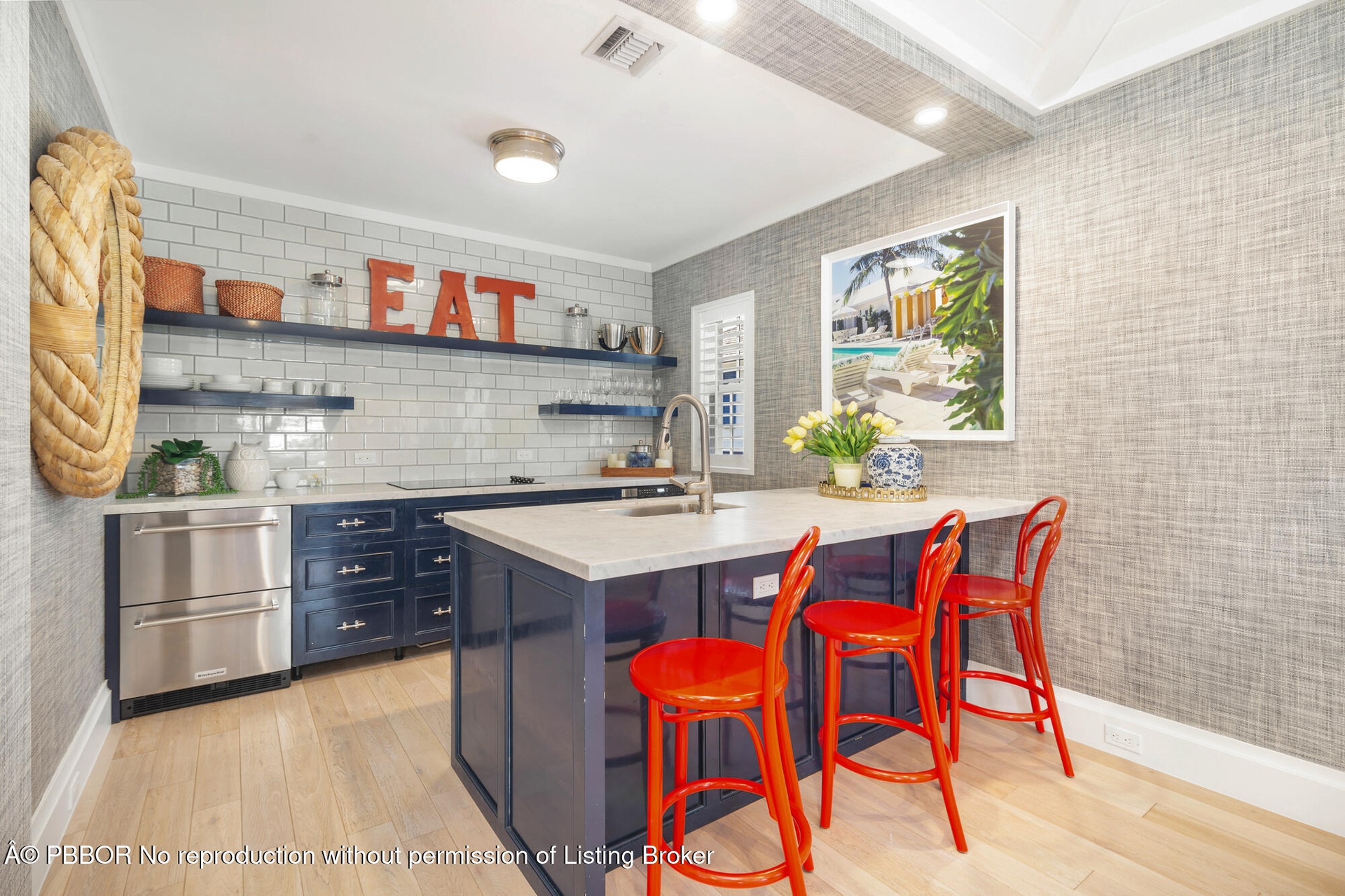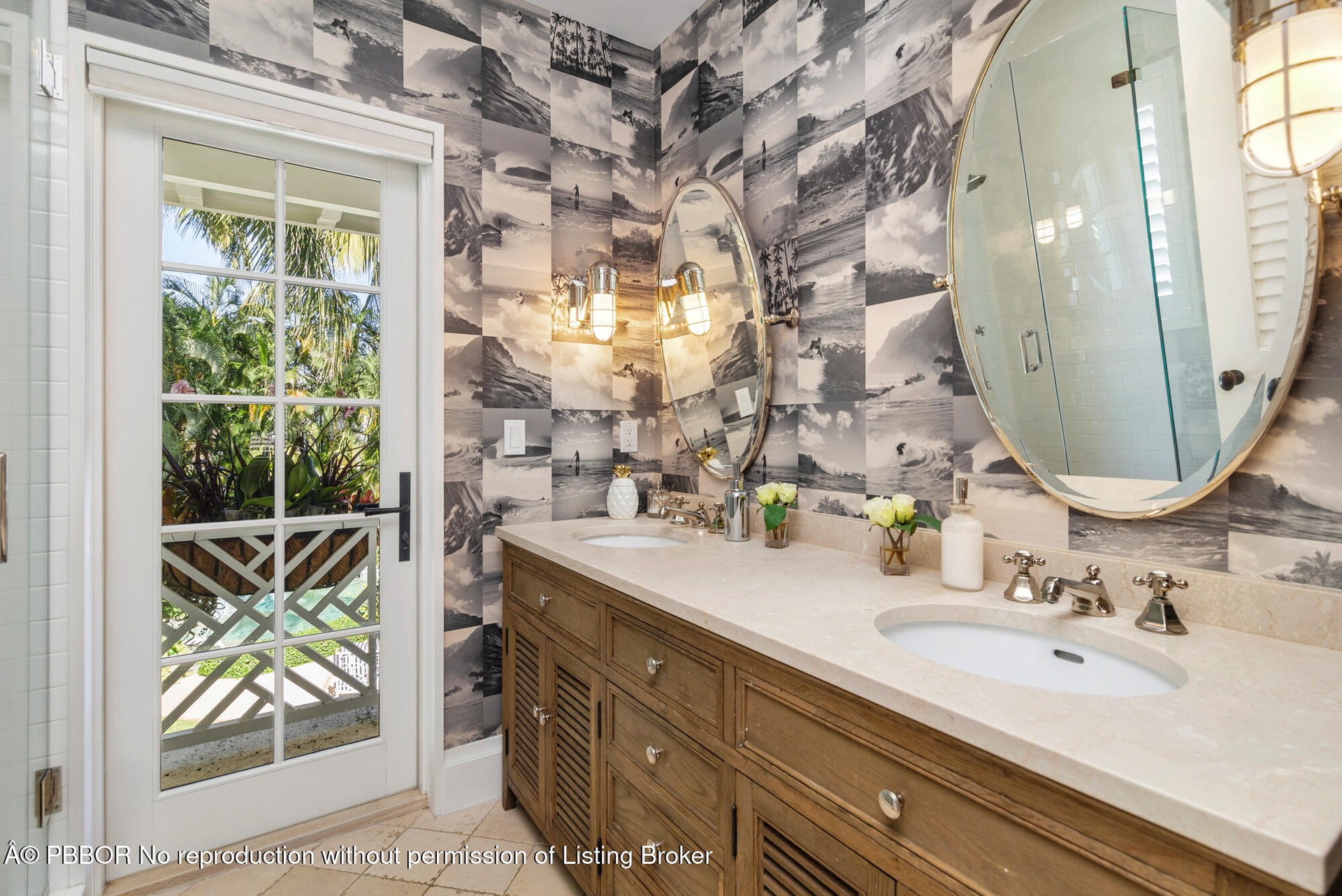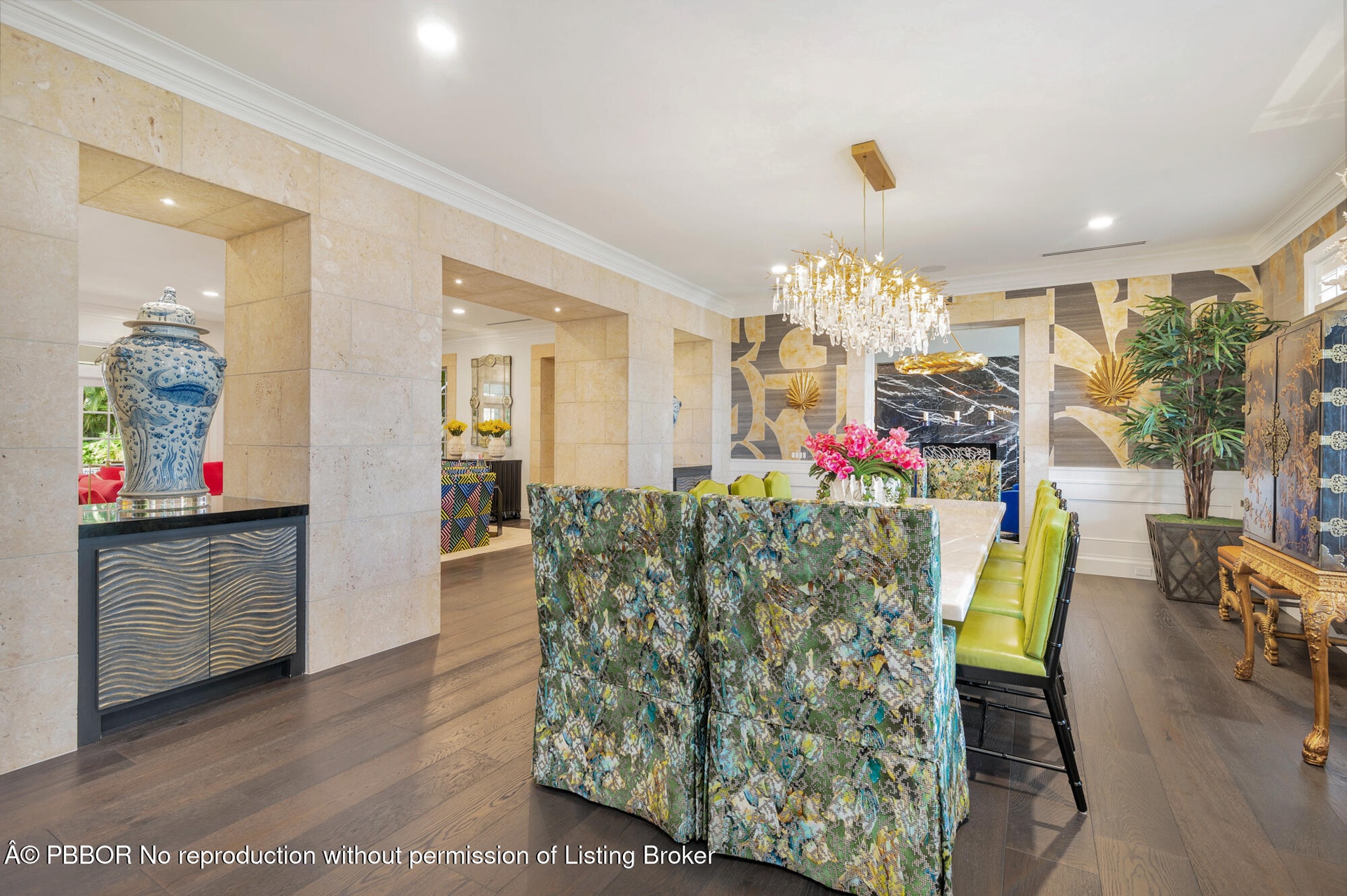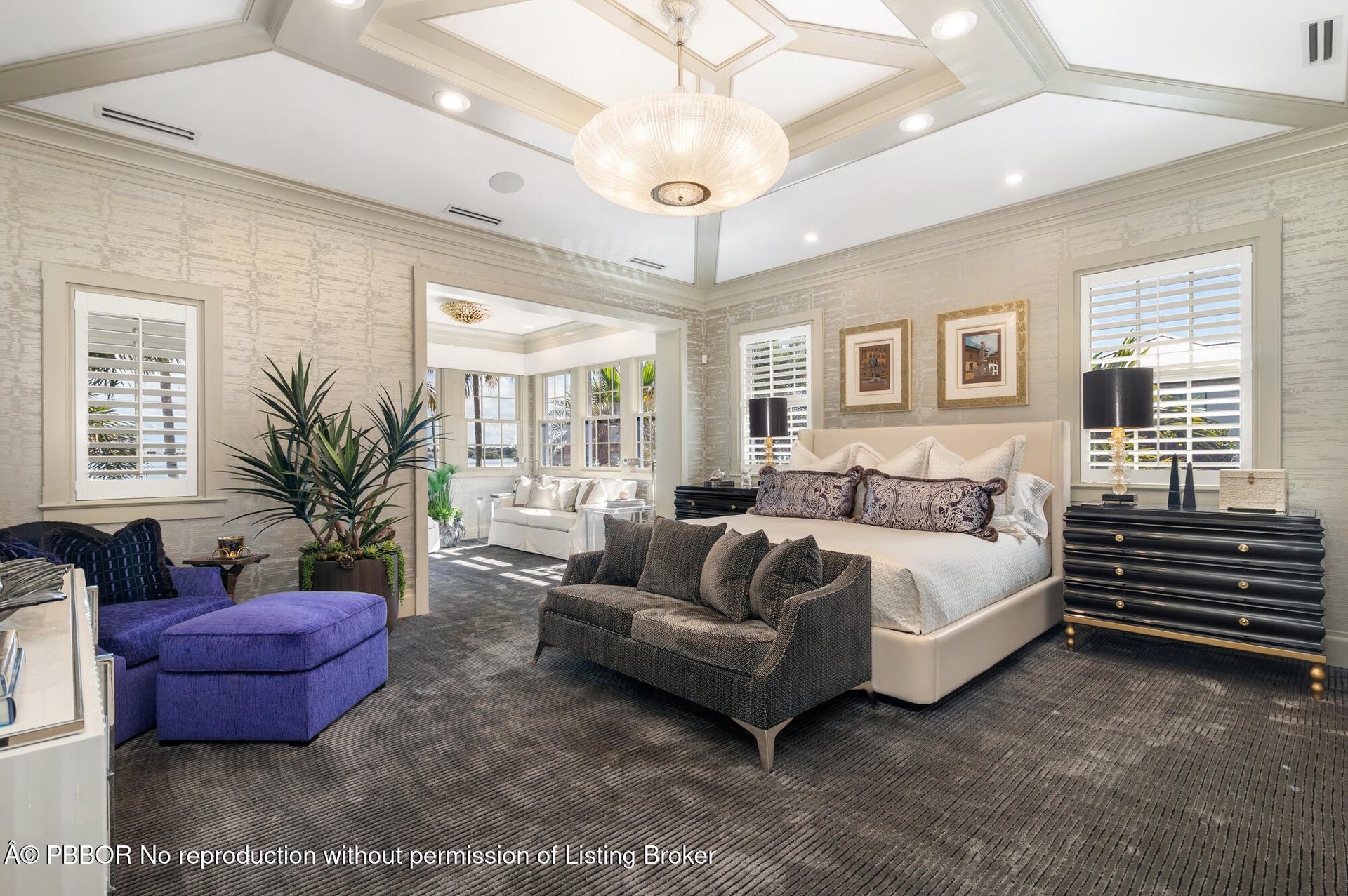 Regarded as the Jewel of South Flagler, this beloved waterfront residence sits on over a half-acre of prime Intracoastal property with over 130 feet of water frontage, celebrated for its striking architecture and inspired design. Originally envisioned by Roy & Posey Architects and completed by Island Construction in 2013 and now fully-transformed and elevated by the world-renowned Robert Trown and Associates, the estate spans over 9,000± square feet under roof and is composed of a main residence complemented by a separate guest house. The primary home includes five bedrooms and four and a half baths, with a first-floor bedroom currently enjoyed as an office, and a separate one-bedroom guest house replete with a full kitchen, vaulted ceilings, and private balcony. Oriented to capture wide-water views, the main living areas offer an open family room flowing into an eat-in kitchen, appointed with imported custom Italian cabinetry and a dramatic rare imported blue Sodalite island. The formal dining room frames the Intracoastal, while expansive glass doors open to covered loggias to create an effortless indoor-outdoor rhythm. The owner's suite is light-filled and airy, featuring panoramic views and balcony. Throughout, curated designer finishes and custom dramatic light fixtures add definition and artistry to every space. Outdoors, the property lives as a private resort, with a heated pool and spa, generous terraces for lounging and dining, and a backyard oasis highlighted by an artistic living wall. The private dock includes a 50,000-pound boat lift, accommodating substantial vessels with ease. A detached guest house with private entry, full kitchen, and studio-style living/sleeping space provides ideal accommodations for guests or extended stays. Located minutes from beaches, the Flagler Drive waterfront path, PBIA, dining, shopping, and .9 miles from Mar A Lago, this offering represents waterfront living at its most refined, architecturally significant, beautifully finished, and rarely available. DISCLAIMER: The written and verbal information provided including but not limited to prices, measurements, square footages, lot sizes, calculations and statistics have been obtained and conveyed from third parties such as the applicable Multiple Listing Service, public records as well as other sources. All information including that produced by the Sellers or Listing Company are subject to errors, omissions or changes without notice and should be independently verified by any prospect for the purchase of a Property. The Sellers and Listing Company expressly disclaim any warranty or representation regarding all information. Prospective purchasers' use of this or any written and verbal information is acknowledgement of this disclaimer and that Prospects shall perform their own due diligence. Prospective purchasers shall not rely on any written or verbal information provided when entering a contract for sale and purchase. Some affiliations may not be applicable to certain geographic areas. Copyright 2023 Listing Company. All Rights Reserved.