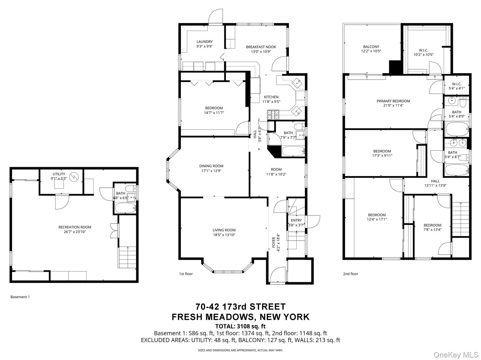 Welcome to this large brick Colonial located on one of the most desirable blocks in Hillcrest–Fresh Meadows. Built on a 26 ft x 39 ft footprint with a full second-story addition, this 2,028 sq ft home offers generous space and a well-designed multi-level layout.