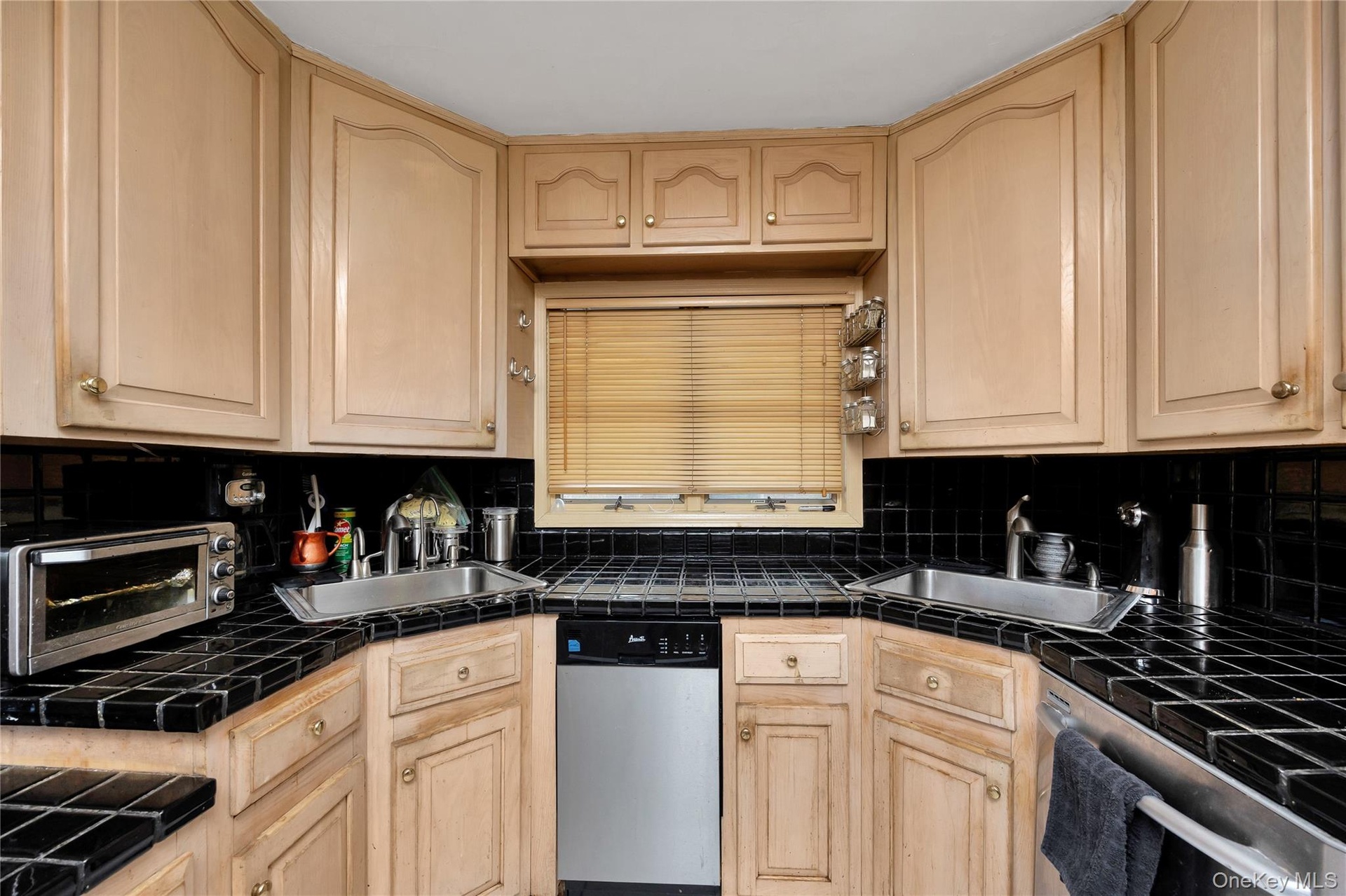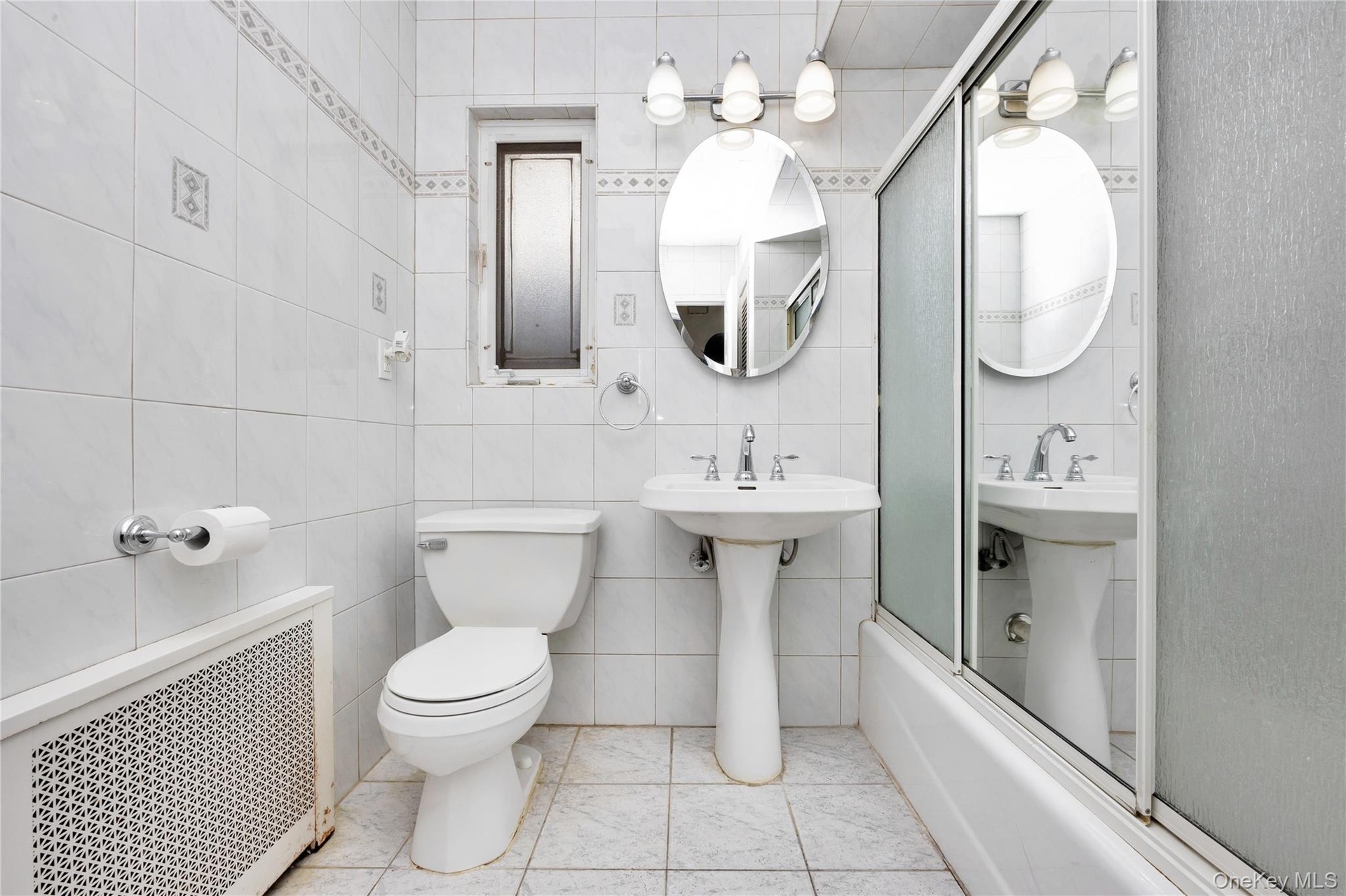 The first floor features a bright and expansive living room and formal dining room with hardwood floors, along with a first-floor bedroom and a full bathroom with radiant heated flooring. The oversized eat-in kitchen includes two sinks, two ovens, and two dishwashers, a separate dining nook, abundant cabinetry, and a large pantry / supply room. A side door from the kitchen leads directly to the private driveway and backyard, and a second side entrance from the basement provides added convenience. The driveway also provides access to the one-car garage.