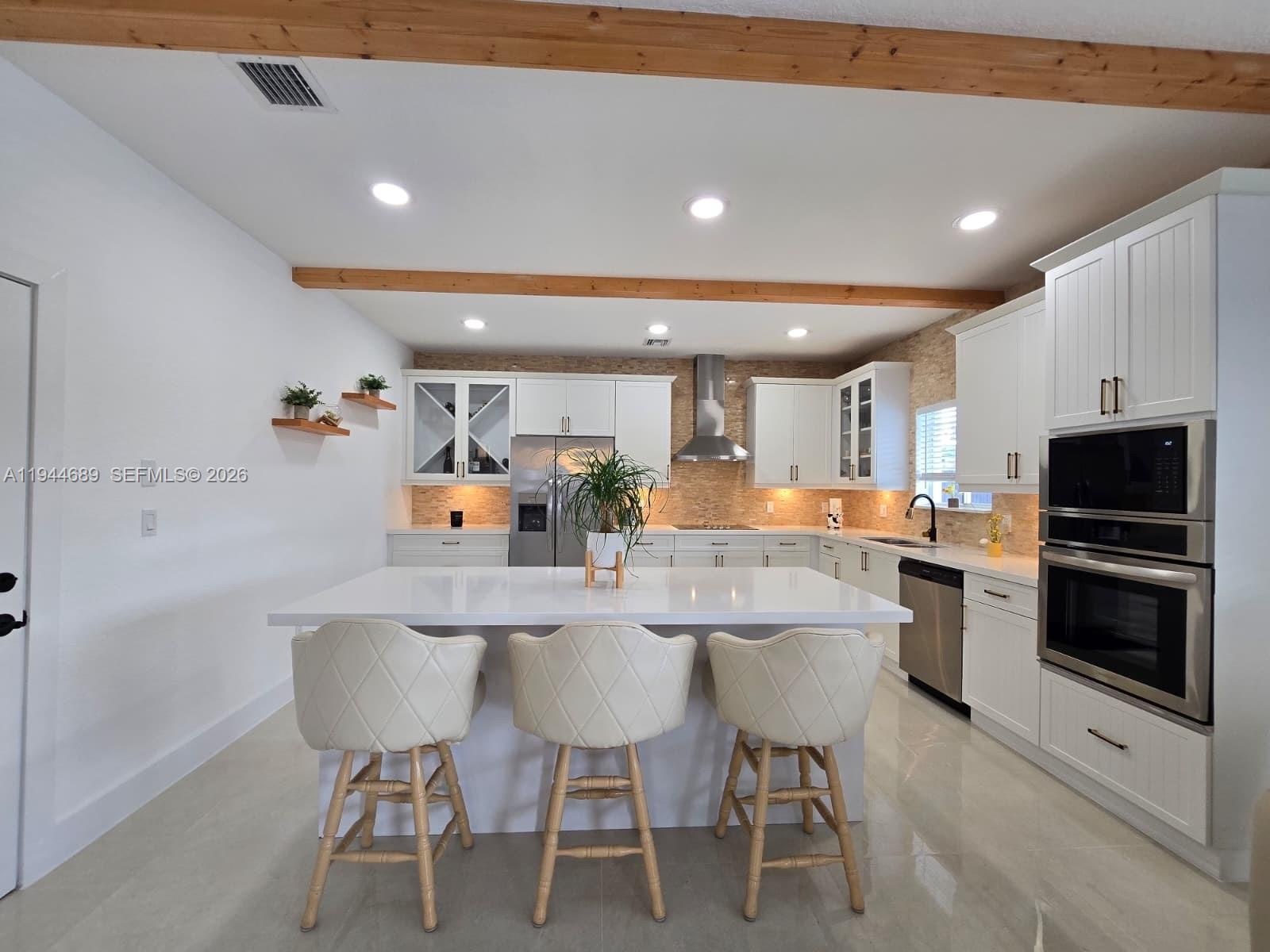 Beautifully updated 4 bedroom, 3 bath modern residence offering porcelain flooring, soaring ceilings, and an expansive open concept kitchen with high end finishes.