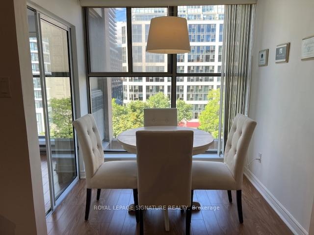 Welcome to this bright and inviting 696 sq. ft. 1-bedroom plus den condo, perfectly designed for comfortable living. The open-concept layout seamlessly connects the living room, dining area, and den, creating a spacious and versatile setting. The layout flows nicely making furniture placement easy. Floor-to-ceiling windows flood the space with natural light, giving it a fresh, airy feel.The updated kitchen features classic shaker-style cabinetry and sleek stainless steel appliances, making it a pleasure to cook and entertain. The primary bedroom also boasts floor-to-ceiling windows and a double closet, providing both brightness and practical storage.Set in a lovely and convenient location right across from the park, this home offers a peaceful retreat while still being close to local amenities. Enjoy a pleasant stroll to George Brown College, St. Lawrence Market, Sugar Beach, the Distillery District, Harbourfront, and the lake.The St. Lawrence Community Recreation Centre is just down the street, and with TTC access,parks, and great schools nearby, convenience is at your doorstep. Enjoy the many restaurants,theatre and entertainment opportunities, all within walking distance.The building offers impressive amenities, including a 24-hour concierge, indoor swimming pool,gym, party room, and an outdoor patio. Along with your ensuite washer and dryer, there's also a resident laundry room on the main floor equipped for larger items.The condo is currently furnished but can be leased either fully furnished or vacant-ready for you to make it your own. Nicely updated, just move in and call it home.