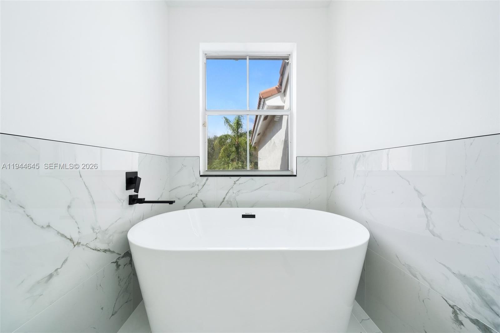 The home features a thoughtfully designed layout with a primary suite upstairs, complete with an en-suite bath offering a walk-in shower, brand-new freestanding soaking tub, and walk-in closet. A secondary upstairs bedroom also includes its own en-suite bathroom with a shower/tub combination. On the ground floor, a versatile bedroom or den with an adjacent full bath featuring a walk-in shower adds flexibility. A private courtyard provides the perfect setting for entertaining, grilling, or relaxing outdoors, complemented by a private driveway.