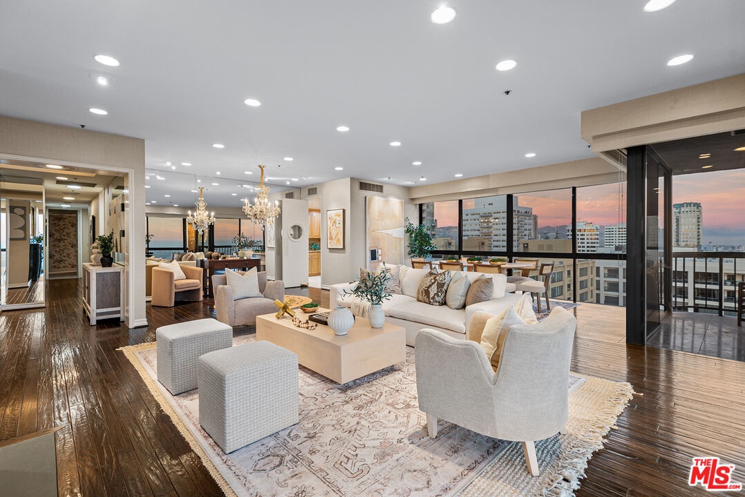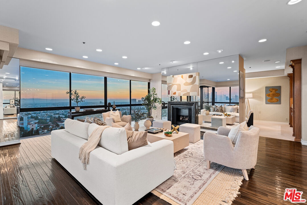 Rising high above the Wilshire Corridor at the coveted Westford on the 15th floor, this expansive 3 bedroom, 4 bathroom corner residence offers nearly 2,700 SQFT of refined living space paired with sweeping unobstructed panoramic views stretching from the Downtown LA skyline to the Pacific Ocean. Dramatic floor-to-ceiling windows frame the ever changing cityscape, while multiple balconies invite the outdoors in, effortlessly extending the living experience. The layout is both generous and thoughtfully designed, delivering a unique sense of privacy rarely found in high-rise living. The main living space flows effortlessly for both everyday living and elegant entertaining, offering an open floor plan anchored by a cozy fireplace that adds warmth and dimension as the city lights come alive at dusk. Spacious dining area and separate family room further enhance the home's excellent functionality. A cook's kitchen boasts granite countertops, an abundance of cabinetry, and a convenient breakfast area. At the end of the day, retreat to the primary suite, featuring a large walk-in closet with custom built-ins, a private balcony, and a well-appointed en-suite bathroom. Secondary bedrooms are generously sized and each enjoys its own en-suite bath. The Westford delivers a truly elevated full-service lifestyle with seamless lock-and-leave experience, featuring 24/7 concierge and security, valet parking with two designated side-by-side spaces, a fitness center, pool and spa, saunas, and an elegant resident social room. HOA dues include earthquake insurance, storage space, water, sewer, and WiFi with basic cable. Ideally situated just moments from UCLA, Westwood Village, Century City, and Beverly Hills, the location offers effortless proximity to world-class dining, shopping, cultural destinations, key city routes, and freeways. A rare Wilshire Corridor offering defined by scale, discretion, service, and commanding views.