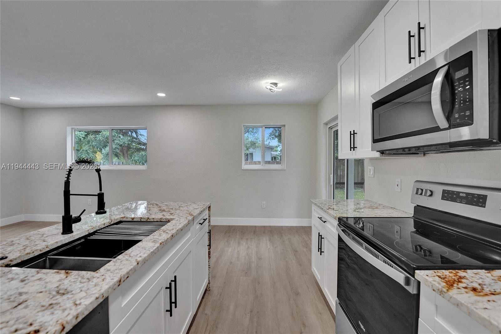 Property has been rented for 3,200 lease ends March 1 2027. PRICED TO SELL!!! TURN KEY!!! Completely Renovated Ives Dairy home with over $130K in upgrades and 1,000+ SF of living space. This 3BR/2BA residence features an Italian gourmet kitchen with quartz countertops, custom soft-close cabinetry, and stainless steel appliances. Bathrooms include glass showers and modern vanities. Freshly painted interior, impact windows/doors, and screened patio. Newly resurfaced and tiled pool, fenced yard, and new driveway. Large 7,500 SF lot with ample backyard space for entertaining.