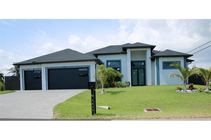 Excellent Location, centrally located near to Everything on a Fabulous Corner Lot. High Ceilings High impact doors and windows., Completely fenced for privacy, outdoor Kitchen, 3 cars Garage, LISTED FOR UNBEATABLE PRICE ON THE SE of Cape Coral, Italian porcelain floors, quartz counter tops, stainless steel appliances. The house was built in year 2024, It is like NEW ... You must see this, Beauty