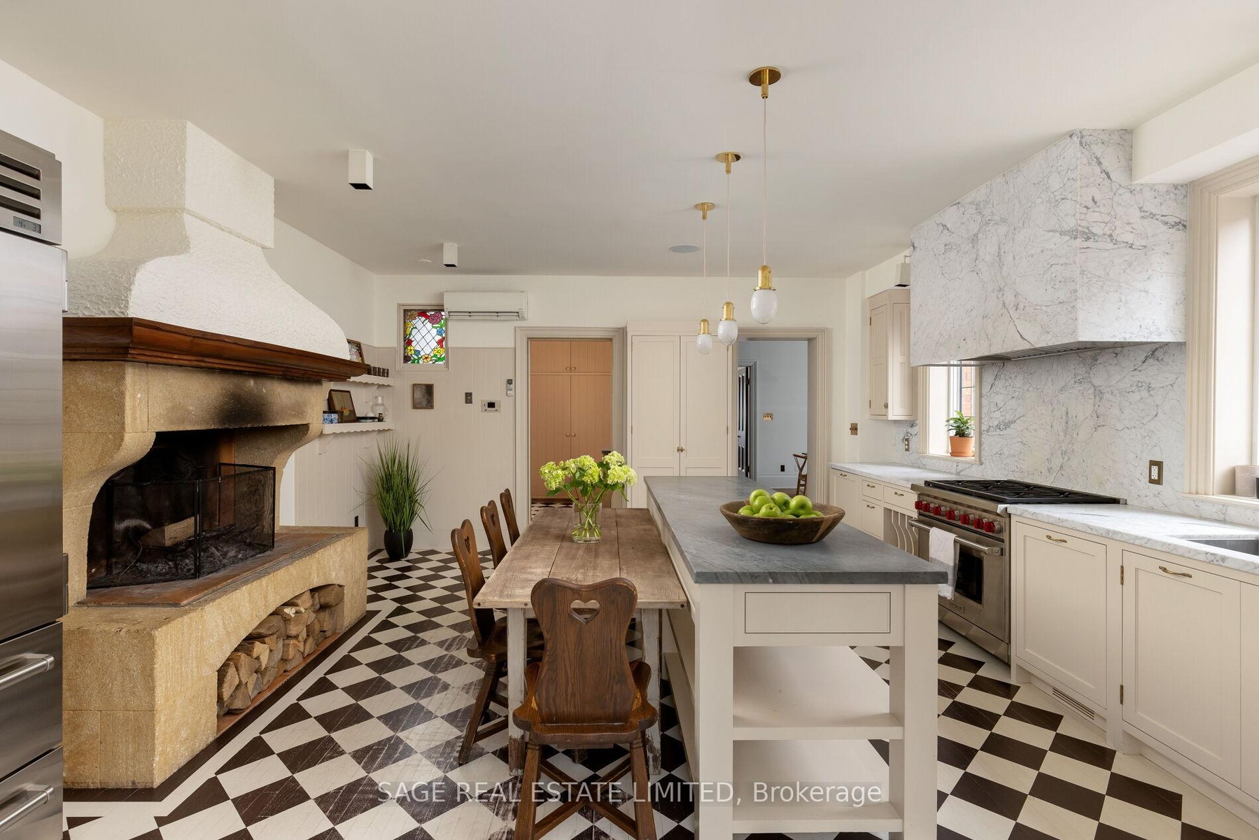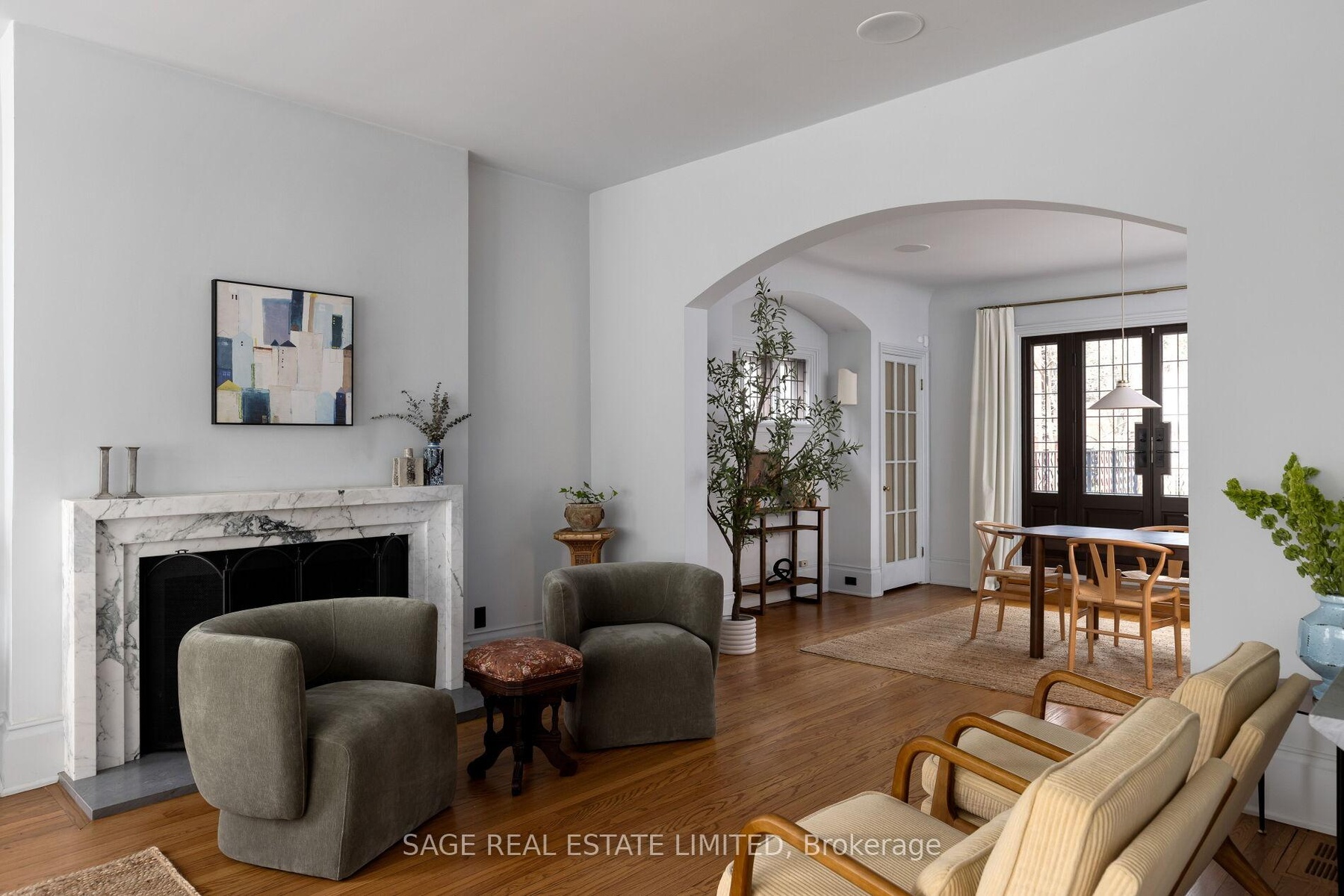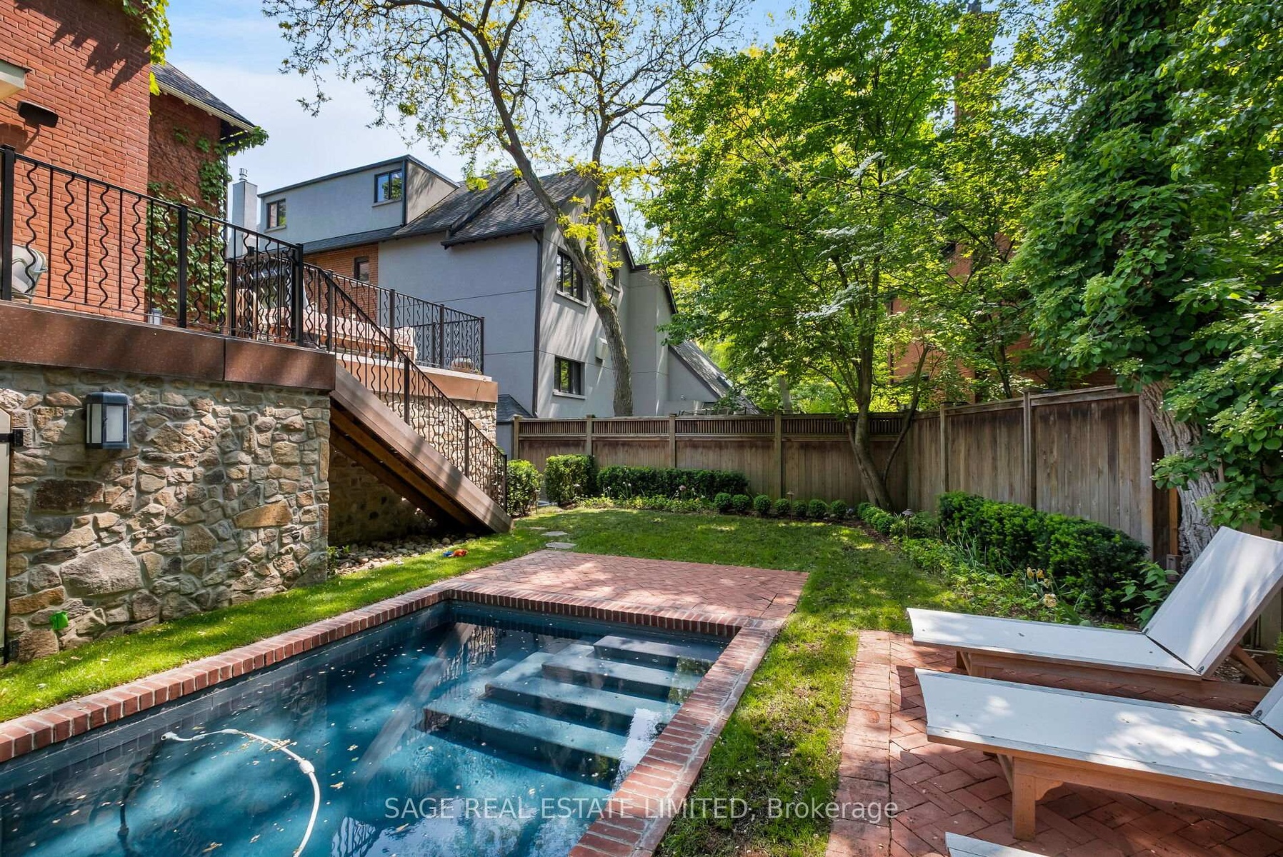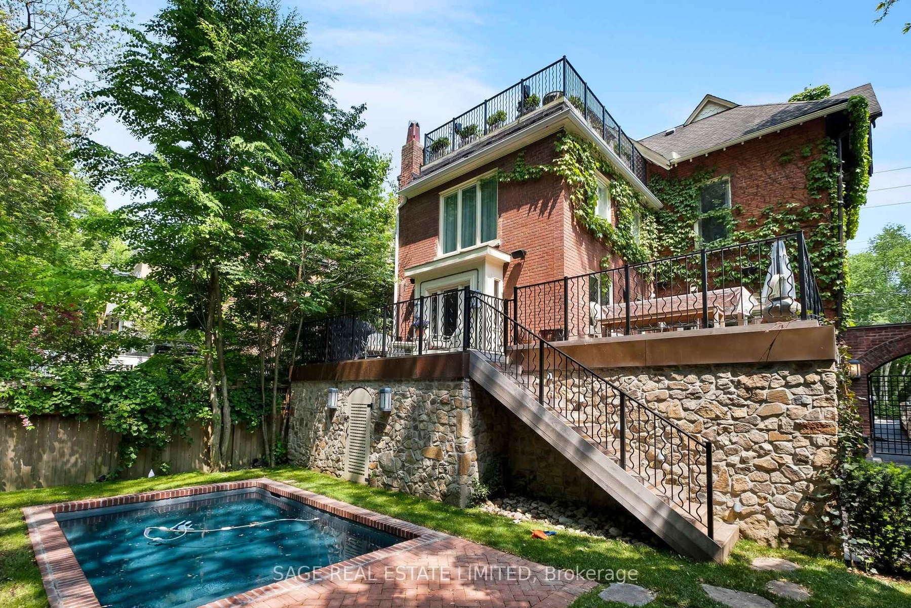 Originally a stately classic residence, this exceptional Rosedale home was thoughtfully reimagined in 2021 under the direction of acclaimed interior designers Michelle R. Smith and Hayley Bridget Cavagnolo. The result is a rare and seamless blend of timeless character and contemporary luxury-refined, welcoming, and rich in detail. Set behind lush landscaping, the home offers striking street presence with a quiet confidence that immediately captures attention. Inside, five bedrooms and five beautifully designed bathrooms are complemented by craftsmanship rarely found. Hand-painted flooring throughout the main level adds subtle artistry, while three wood-burning fireplaces-one anchoring the kitchen-bring warmth and charm to everyday living.The chef's kitchen is both functional and elegant, featuring a Wolf range, Sub-Zero Pro Series refrigeration, an oversized eat-in area, and a walk-out to an expansive deck that seamlessly extends the living space outdoors. A butler's pantry adds thoughtful storage and effortless entertaining appeal.Designed for hosting and relaxing alike, the home features a built-in Sonos sound system throughout the interior and backyard. Outdoors, a private resort-style setting awaits with a saltwater pool equipped with smart heating and lighting-perfect for year-round enjoyment.The third-floor retreat offers exceptional flexibility, complete with a family lounge, workspace, guest bedroom, full bath, and private rooftop deck. On the lower level, a sauna provides a spa-like escape, completing this truly one-of-a-kind Rosedale residence.