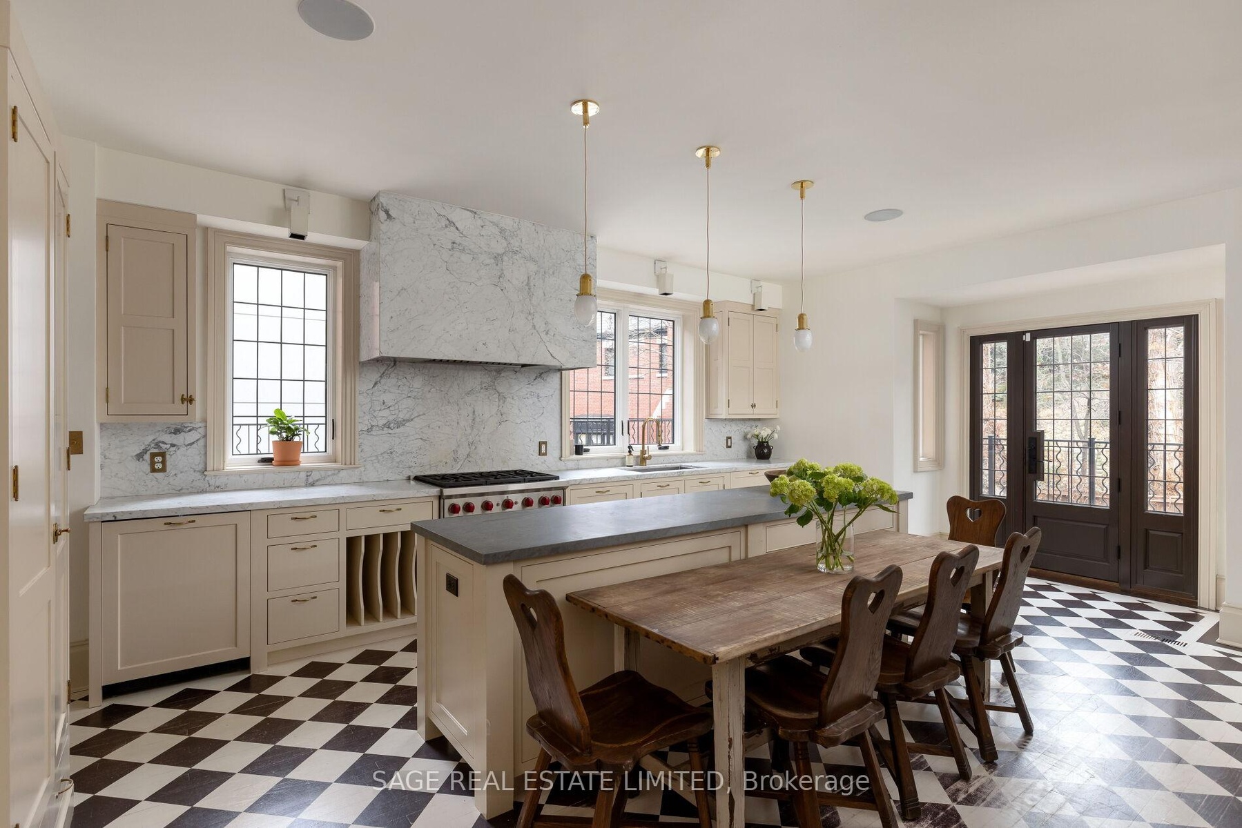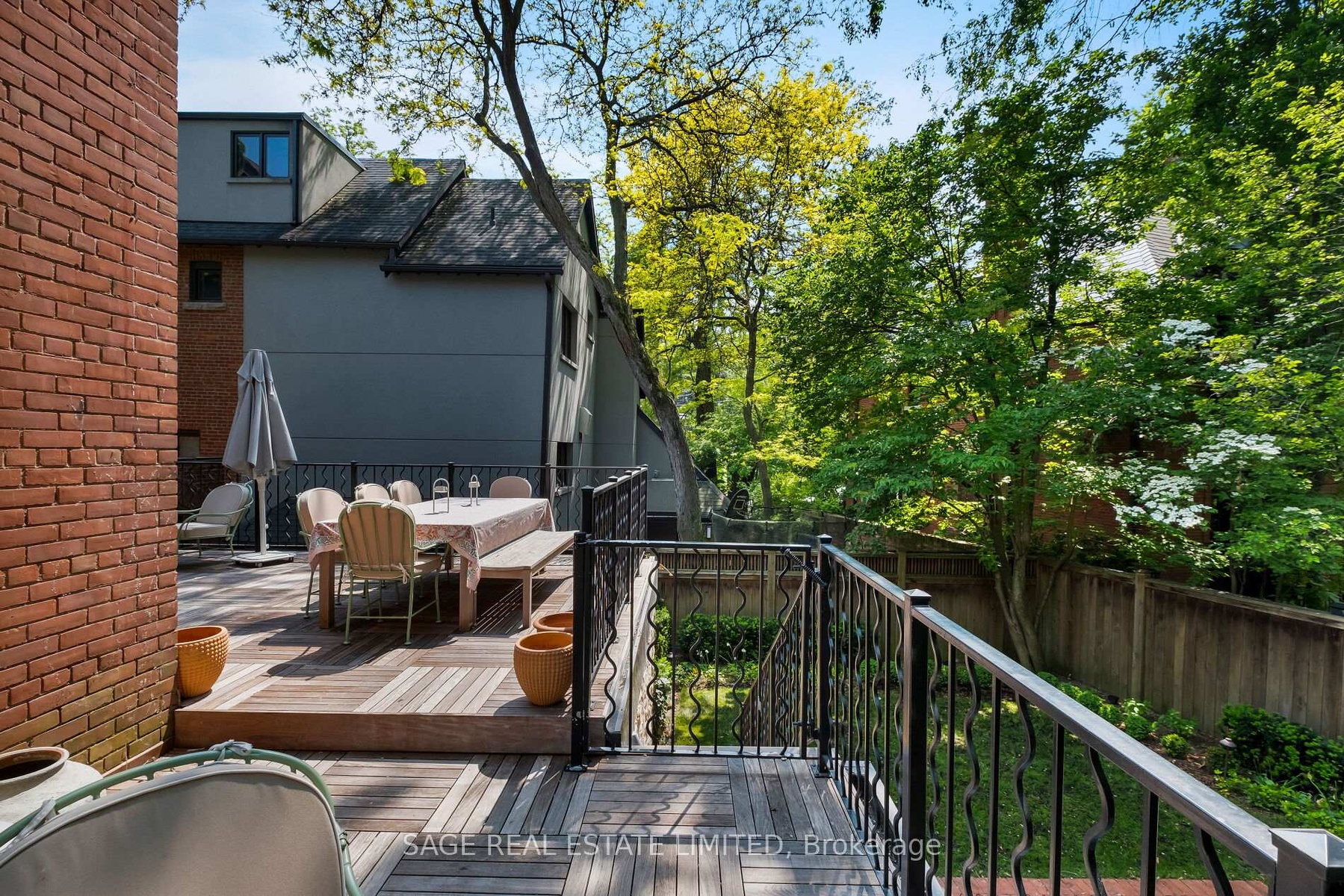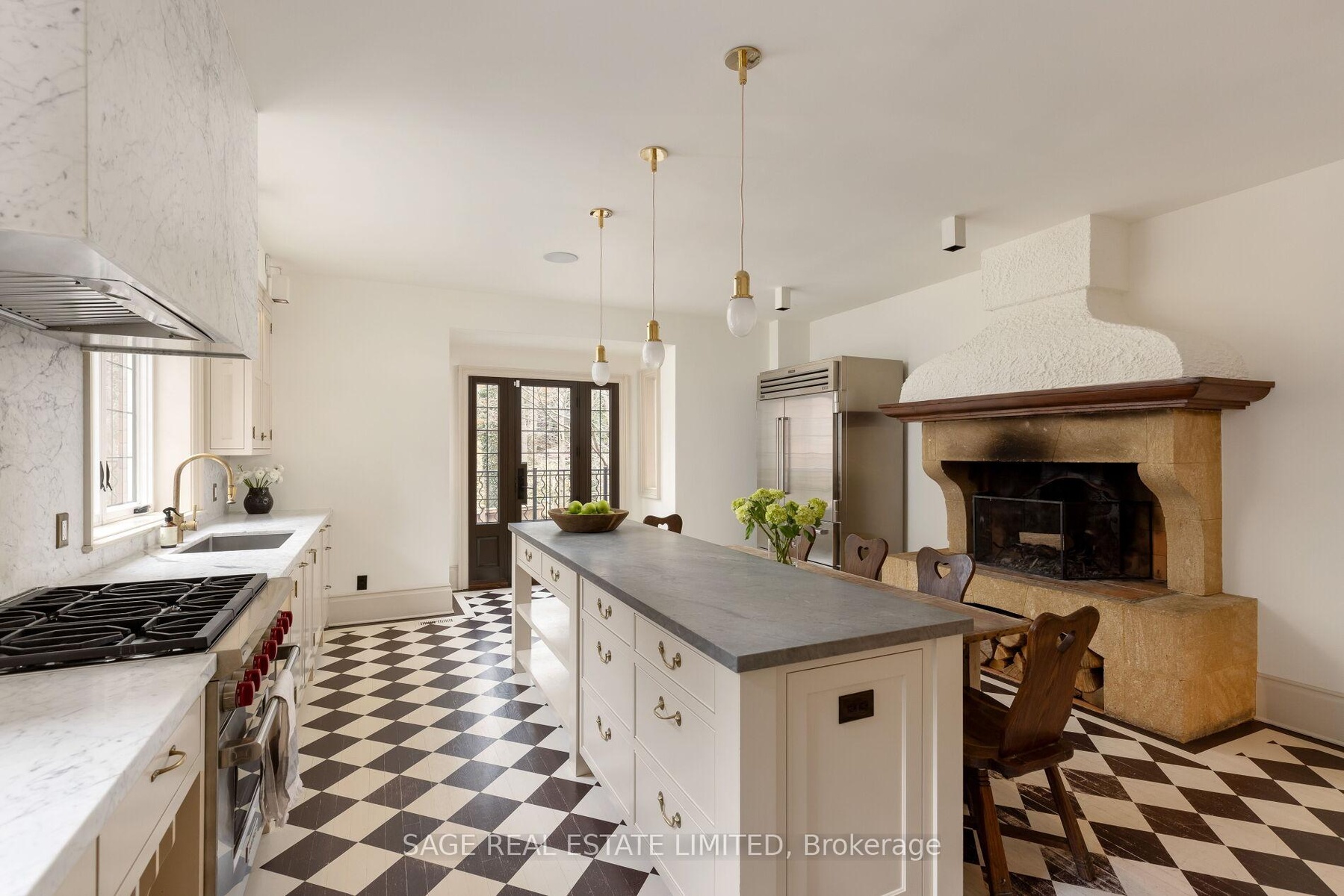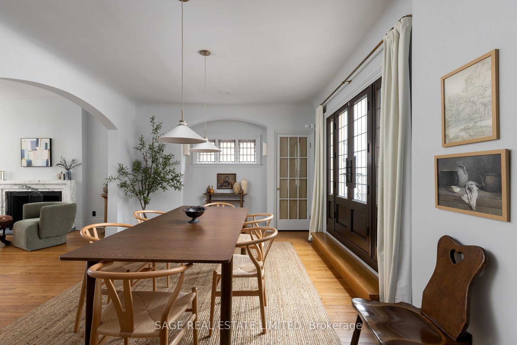 Originally a stately classic residence, this exceptional Rosedale home was thoughtfully reimagined in 2021 under the direction of acclaimed interior designers Michelle R. Smith and Hayley Bridget Cavagnolo. The result is a rare and seamless blend of timeless character and contemporary luxury-refined, welcoming, and rich in detail. Set behind lush landscaping, the home offers striking street presence with a quiet confidence that immediately captures attention. Inside, five bedrooms and five beautifully designed bathrooms are complemented by craftsmanship rarely found. Hand-painted flooring throughout the main level adds subtle artistry, while three wood-burning fireplaces-one anchoring the kitchen-bring warmth and charm to everyday living.The chef's kitchen is both functional and elegant, featuring a Wolf range, Sub-Zero Pro Series refrigeration, an oversized eat-in area, and a walk-out to an expansive deck that seamlessly extends the living space outdoors. A butler's pantry adds thoughtful storage and effortless entertaining appeal.Designed for hosting and relaxing alike, the home features a built-in Sonos sound system throughout the interior and backyard. Outdoors, a private resort-style setting awaits with a saltwater pool equipped with smart heating and lighting-perfect for year-round enjoyment.The third-floor retreat offers exceptional flexibility, complete with a family lounge, workspace, guest bedroom, full bath, and private rooftop deck. On the lower level, a sauna provides a spa-like escape, completing this truly one-of-a-kind Rosedale residence.