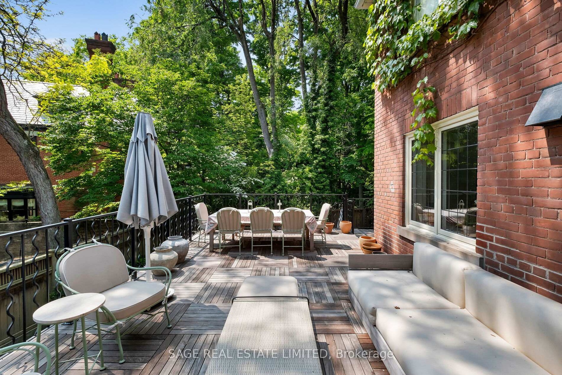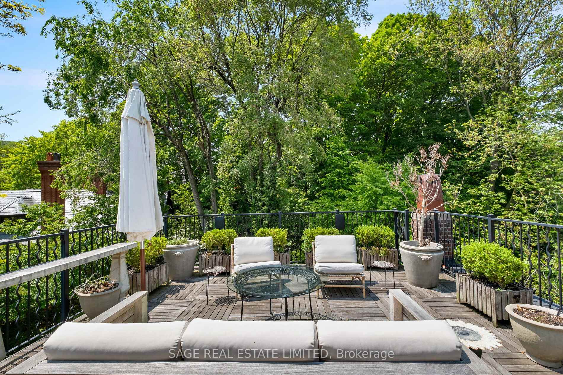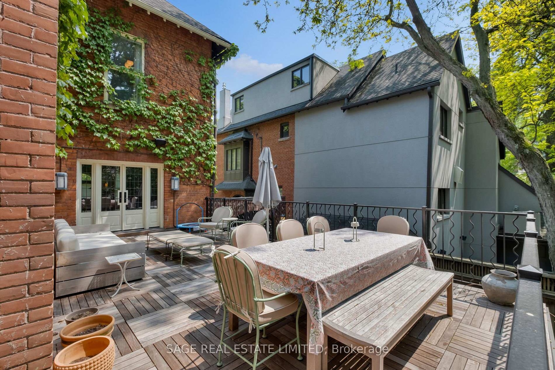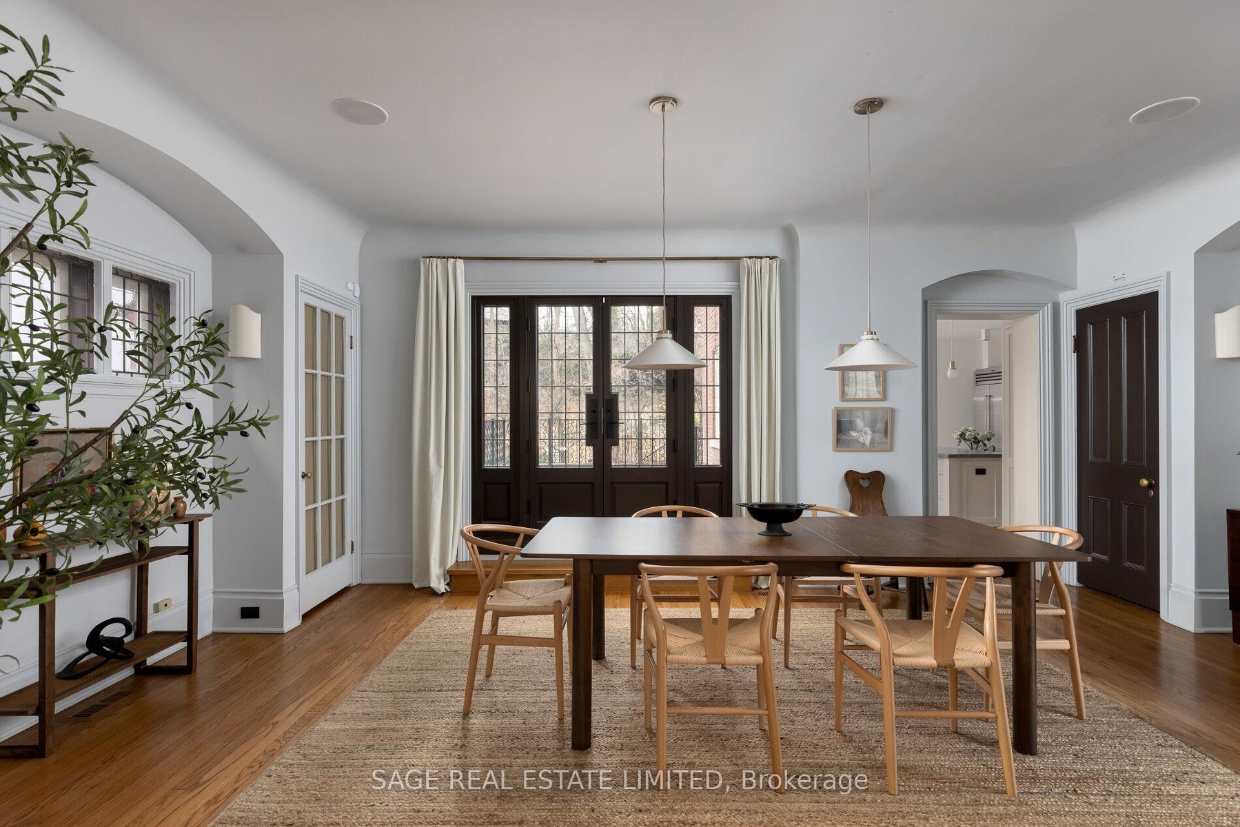 Originally a stately classic residence, this exceptional Rosedale home was thoughtfully reimagined in 2021 under the direction of acclaimed interior designers Michelle R. Smith and Hayley Bridget Cavagnolo. The result is a rare and seamless blend of timeless character and contemporary luxury-refined, welcoming, and rich in detail. Set behind lush landscaping, the home offers striking street presence with a quiet confidence that immediately captures attention. Inside, five bedrooms and five beautifully designed bathrooms are complemented by craftsmanship rarely found. Hand-painted flooring throughout the main level adds subtle artistry, while three wood-burning fireplaces-one anchoring the kitchen-bring warmth and charm to everyday living.The chef's kitchen is both functional and elegant, featuring a Wolf range, Sub-Zero Pro Series refrigeration, an oversized eat-in area, and a walk-out to an expansive deck that seamlessly extends the living space outdoors. A butler's pantry adds thoughtful storage and effortless entertaining appeal.Designed for hosting and relaxing alike, the home features a built-in Sonos sound system throughout the interior and backyard. Outdoors, a private resort-style setting awaits with a saltwater pool equipped with smart heating and lighting-perfect for year-round enjoyment.The third-floor retreat offers exceptional flexibility, complete with a family lounge, workspace, guest bedroom, full bath, and private rooftop deck. On the lower level, a sauna provides a spa-like escape, completing this truly one-of-a-kind Rosedale residence.