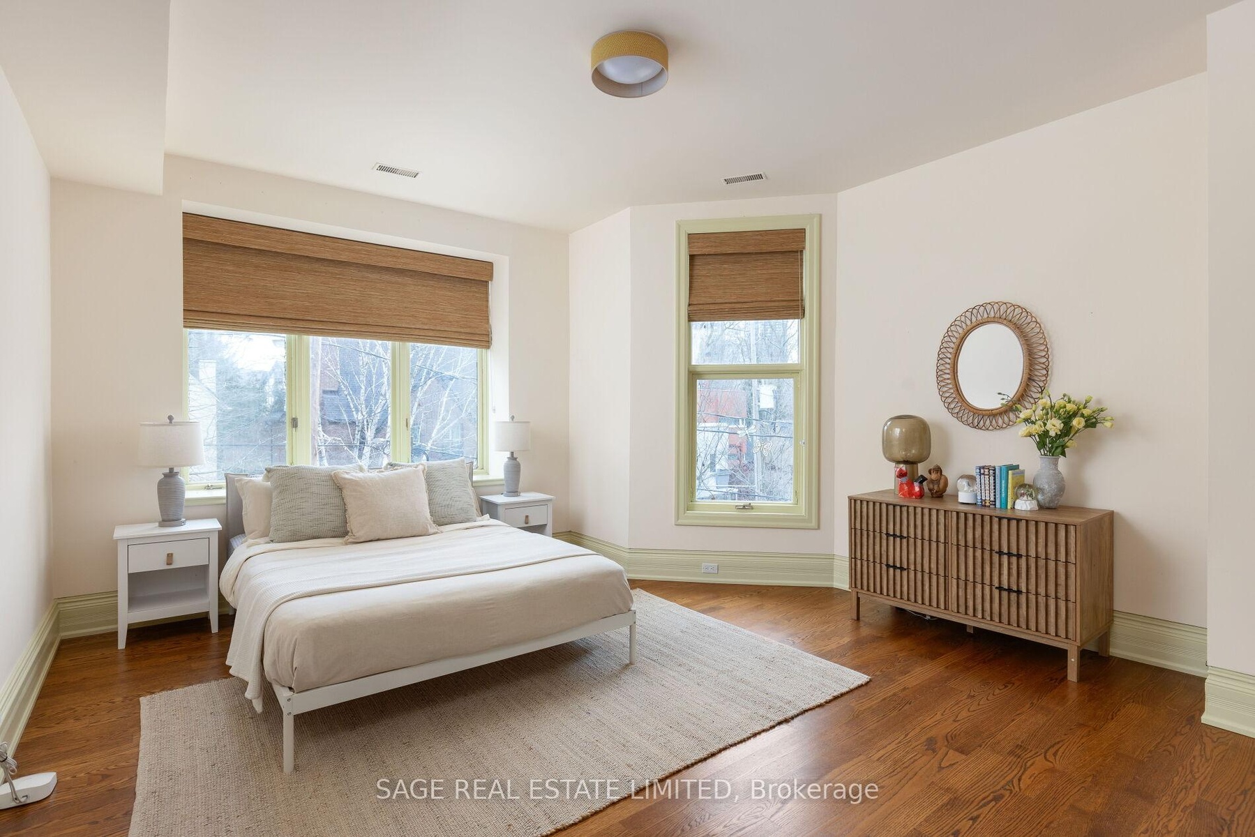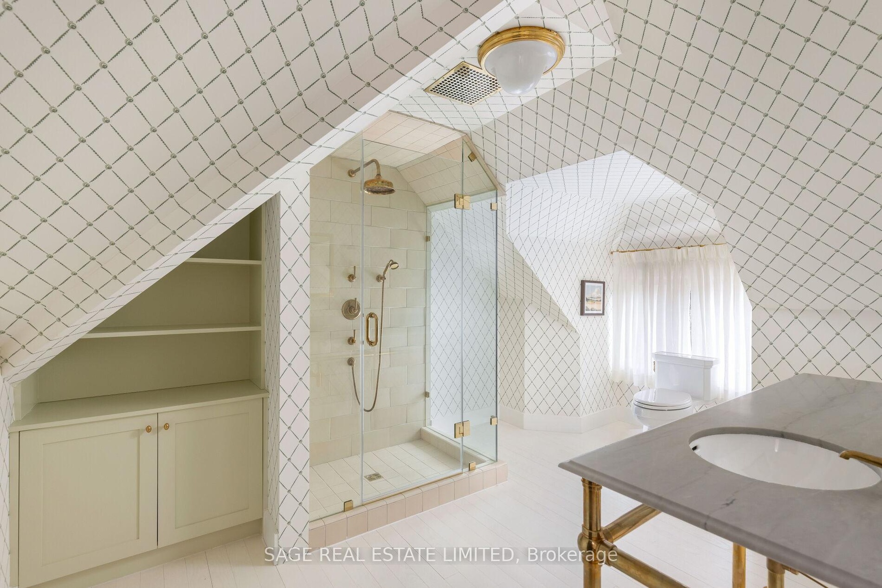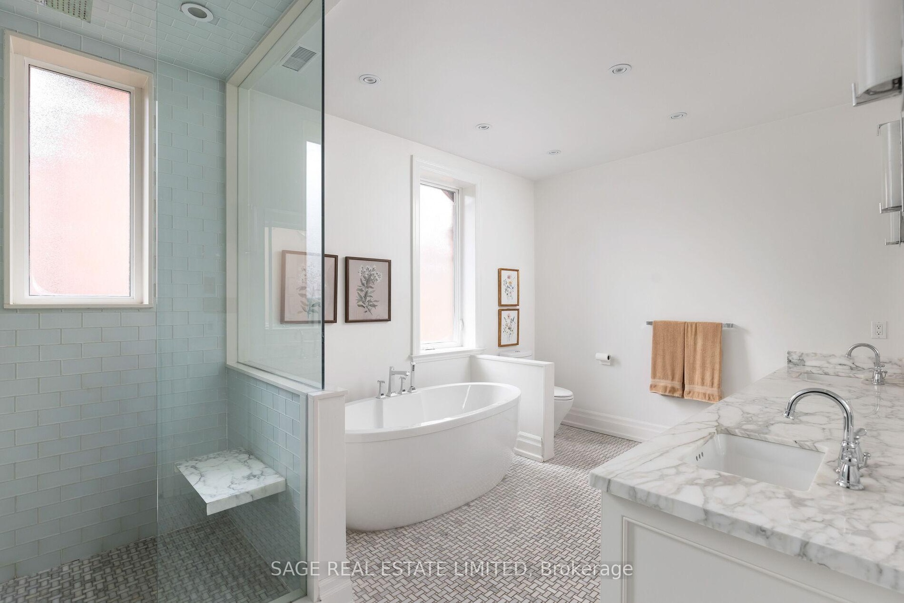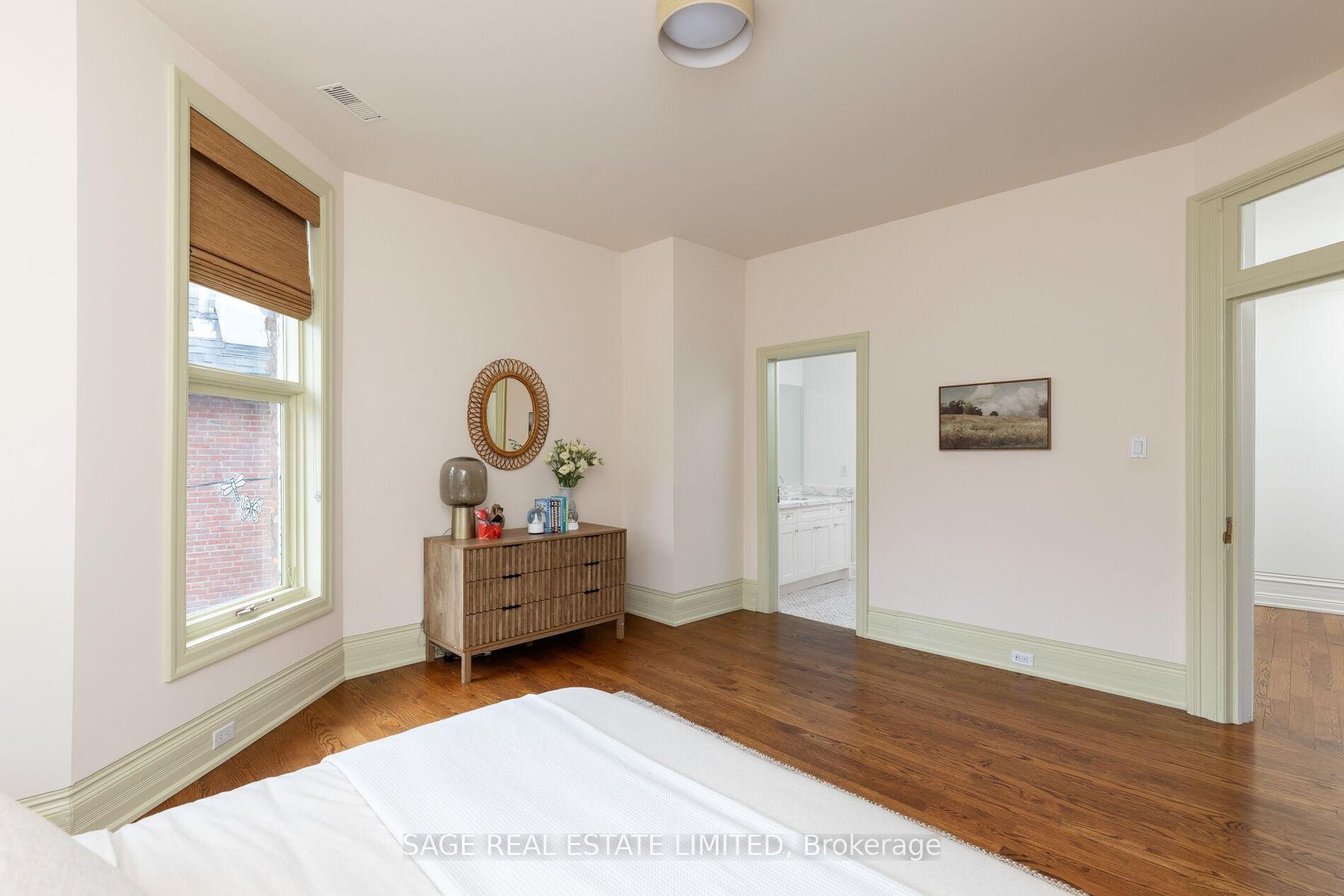 Originally a stately classic residence, this exceptional Rosedale home was thoughtfully reimagined in 2021 under the direction of acclaimed interior designers Michelle R. Smith and Hayley Bridget Cavagnolo. The result is a rare and seamless blend of timeless character and contemporary luxury-refined, welcoming, and rich in detail. Set behind lush landscaping, the home offers striking street presence with a quiet confidence that immediately captures attention. Inside, five bedrooms and five beautifully designed bathrooms are complemented by craftsmanship rarely found. Hand-painted flooring throughout the main level adds subtle artistry, while three wood-burning fireplaces-one anchoring the kitchen-bring warmth and charm to everyday living.The chef's kitchen is both functional and elegant, featuring a Wolf range, Sub-Zero Pro Series refrigeration, an oversized eat-in area, and a walk-out to an expansive deck that seamlessly extends the living space outdoors. A butler's pantry adds thoughtful storage and effortless entertaining appeal.Designed for hosting and relaxing alike, the home features a built-in Sonos sound system throughout the interior and backyard. Outdoors, a private resort-style setting awaits with a saltwater pool equipped with smart heating and lighting-perfect for year-round enjoyment.The third-floor retreat offers exceptional flexibility, complete with a family lounge, workspace, guest bedroom, full bath, and private rooftop deck. On the lower level, a sauna provides a spa-like escape, completing this truly one-of-a-kind Rosedale residence.
