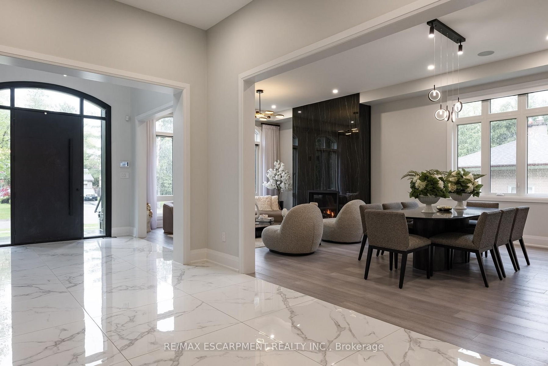 This exquisite custom-built estate in Mississauga's Sheridan neighbourhood offers over 8,000 sq. ft. of refined living space, combining elegance, comfort, and modern convenience. With 6+1 bedrooms and 7 bathrooms, this home is designed for upscale family living and grand entertaining. A dramatic foyer with 22-foot ceilings sets a striking first impression. The great room also features soaring ceilings and expansive windows that flood the space with natural light. The chef-inspired kitchen is equipped with high-end appliances, quartz countertops, a marble backsplash, and a stunning waterfall island opening to a breakfast area with walkout access to the landscaped backyard. Outdoor features include a saltwater in-ground pool, a hot tub, a natural stone patio, and built-in Napoleon BBQs perfect for summer entertaining. The primary suite is a luxurious retreat with a gas fireplace, a balcony overlooking the backyard, and a spa-like six-piece ensuite. The finished lower level offers a home gym, a sauna, a wet bar, and a theatre with seating for ten. Additional highlights include a three-car garage, smart thermostat, integrated elevator, and professionally maintained landscaping. Ideally located near top schools, parks, and major highways, this Luxury Certified home is a rare offering in Sheridan.