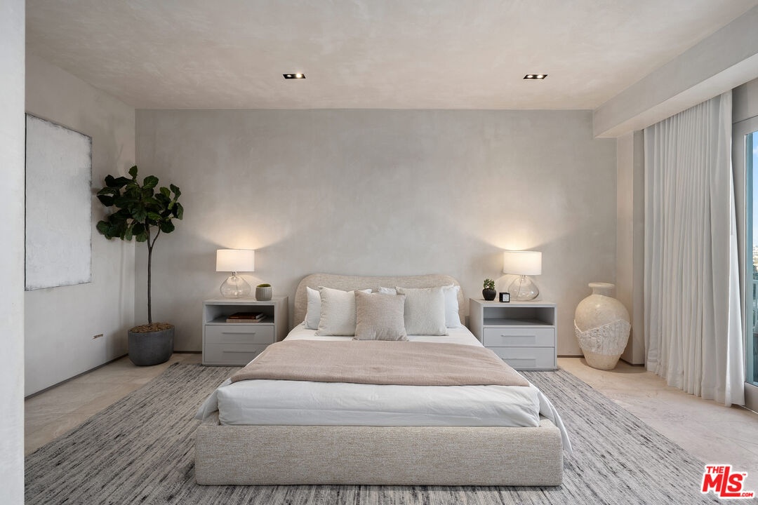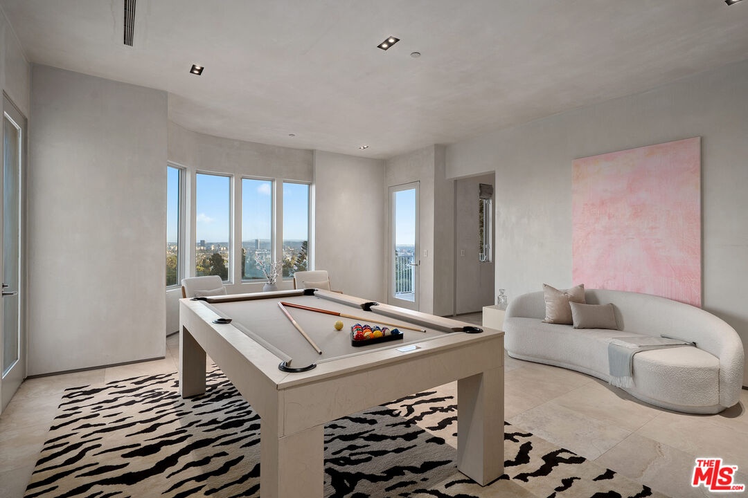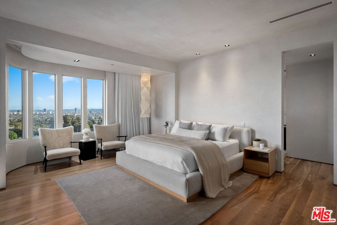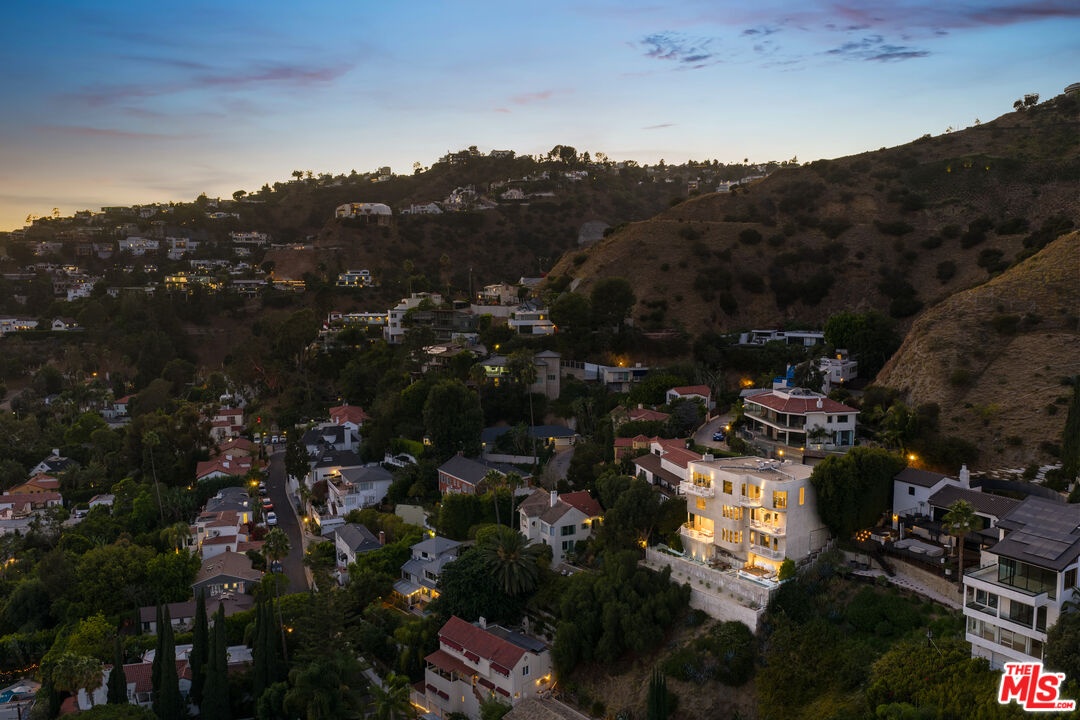 This privately-gated and former celebrity-owned contemporary hideaway sits above it all, with jetliner views stretching from Downtown LA to Century City and out to the ocean. Framed by a dramatic pivot door, the designer-done home opens to soaring ceilings, smooth Venetian plaster, hardwood floors, and sun-drenched interiors that exude a sophisticated and organic feel. The main level showcases a spacious formal living room that flows seamlessly into the dining area and chef's kitchen, designed for both effortless entertaining and everyday living. The relaxing primary suite offers a travertine-cladded spa-like bathroom with walk-in shower and separate soaking tub, a picture window framing endless panoramic vistas, and an oversized walk-in closet. Two additional guest bedrooms are replete with en-suite baths and private balconies, with an additional flexible space that can serve as a screening room, office, or fourth bedroom. Outdoors, this estate takes entertaining to the next level with a newly added outdoor kitchen/BBQ, in-ground spa, sauna, outdoor shower, and dramatic outdoor fireplace with built-in seating providing the perfect stage for al-fresco dining, sunset gatherings, or simply unwinding above the city lights. With a prestigious history, unmatched style, and coveted location just moments from the Sunset Strip and West Hollywood, this residence is truly a private retreat set against one of the most breathtaking backdrops in Los Angeles.