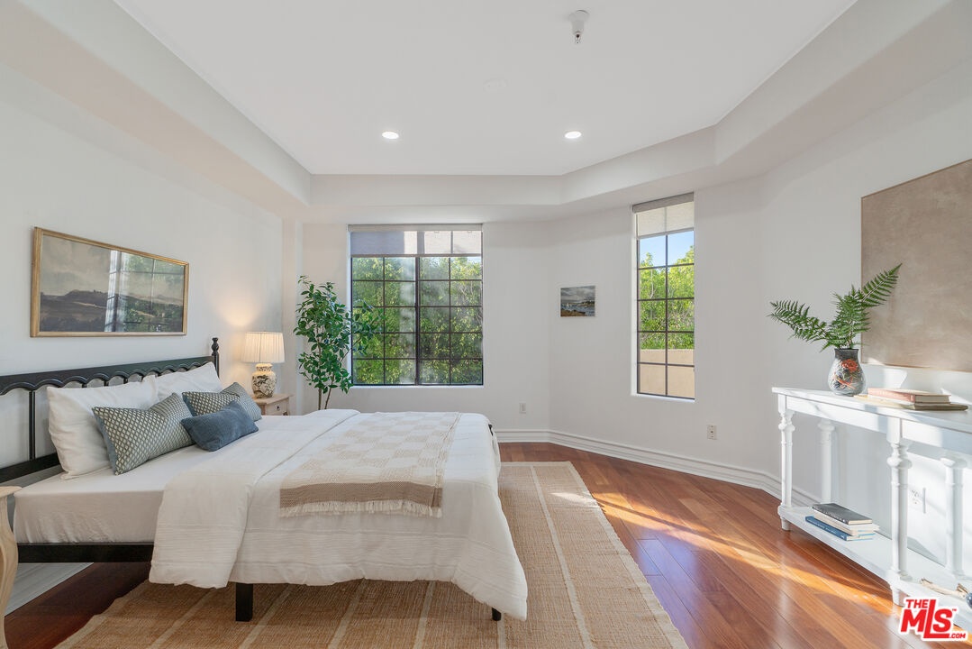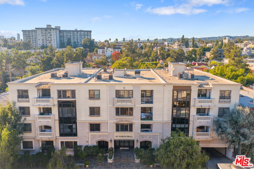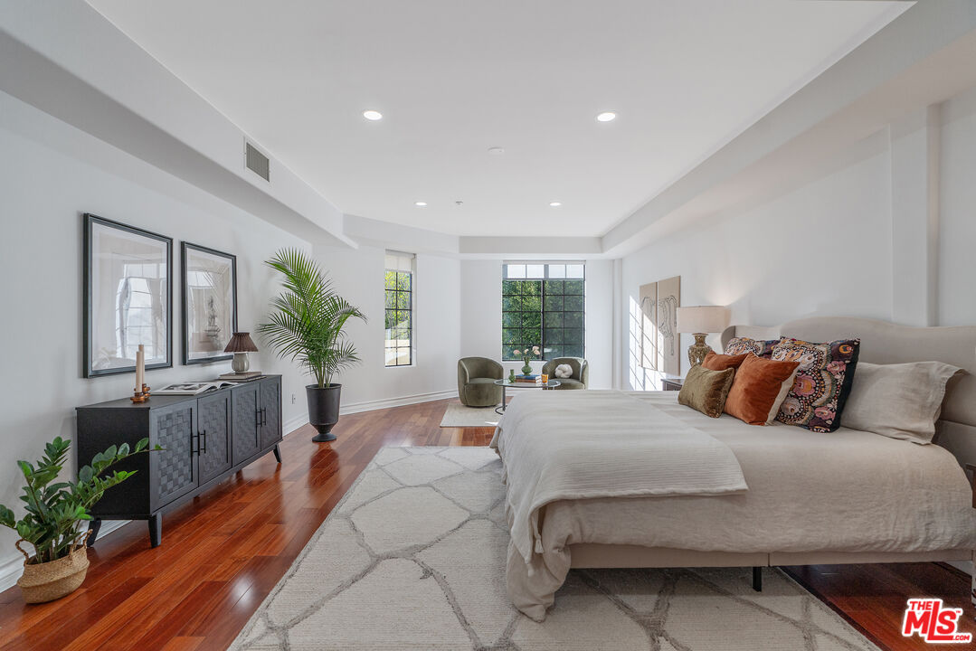 Beverly Hills/West Hollywood adjacent residence just off of 3rd St and Robertson Blvd, combining a prime central location with elevated living, close to Cedars-Sinai Medical Center. A secured entry opens to a grand lobby with elevator access, leading to a thoughtfully designed home offering approximately 1,660 square feet of elegant living space. High ceilings and an open layout create a bright, airy atmosphere ideal for both everyday living and entertaining. A welcoming entry flows into a dedicated dining area and expansive living room, which opens to a private balcony framed by leafy trees that provide privacy while allowing natural light to filter through. The chef's kitchen is equipped with stone countertops, Miele, BOSCH, and Samsung appliances, and ample workspace, perfectly suited for cooking and hosting. The home features two spacious en-suite bedrooms, positioned on opposite sides of the residence for optimal privacy. Enjoy the convenience of a powder room and in-unit laundry. Additional highlights include wood flooring, recessed lighting, and a well-balanced floor plan designed for modern living. Parking includes two-car tandem parking in a gated community garage, along with ample guest parking. Residents also enjoy access to HOA amenities, including a clubhouse, outdoor patio, and sauna, enhancing the overall living experience. Landscaped grounds and controlled building access create a calm, refined urban environment. Enjoy the vibrant energy of Los Angeles with acclaimed shops and dining destinations nearby along 3rd Street, Robertson Blvd, Beverly Blvd, and Melrose Blvd, including Catch LA, The Henry, Great White, Gracias Madre, A.O.C., The Ivy, Joan's on Third, Alfred Coffee, Coffee Commissary, and Urth Caffe all contributing to an exceptional lifestyle in one of Los Angeles' most sought-after neighborhoods.