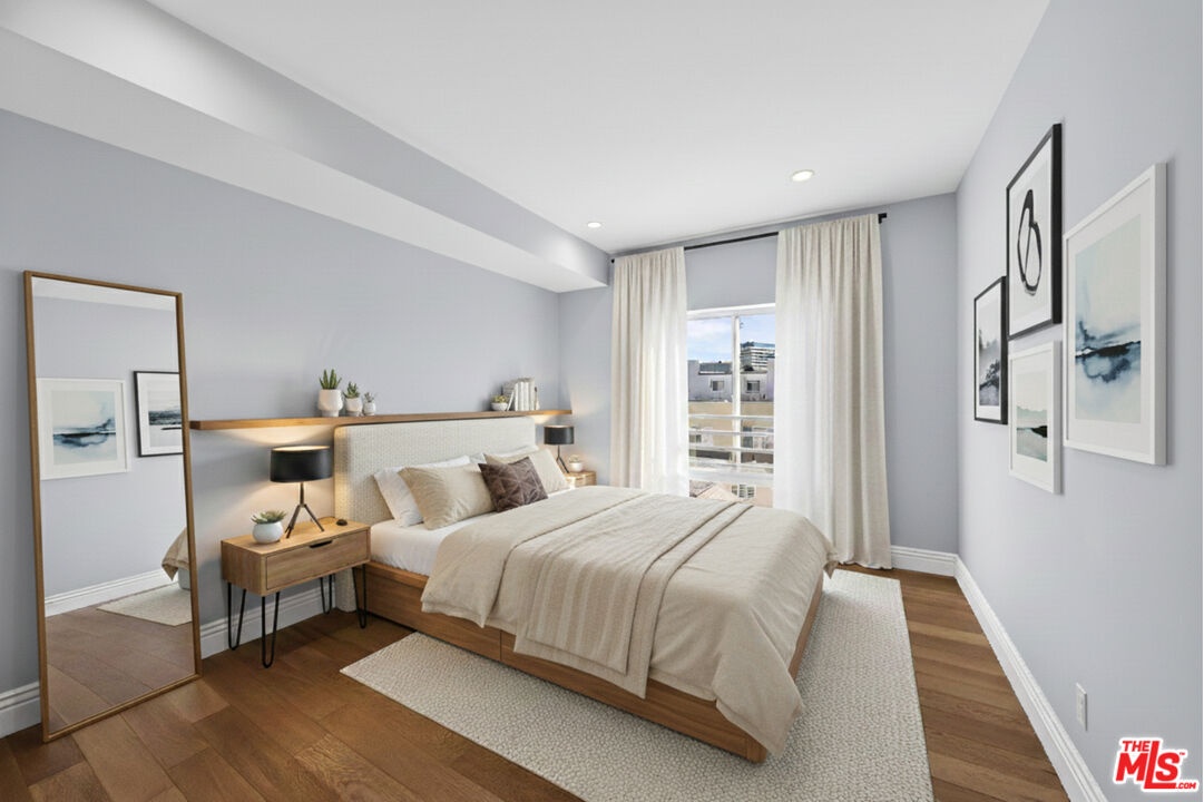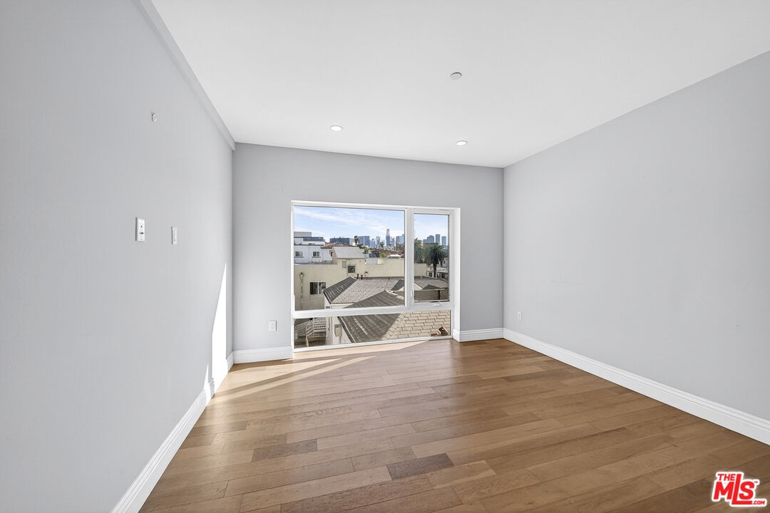 Welcome to this spacious east-facing unit with a fantastic floor plan in prime MacArthur Park with views of treetops, twinkling city lights, and the iconic skyline of Downtown Los Angeles. A smartly designed kitchen includes an abundance of cabinetry, center island with breakfast bar ledge, and stainless-steel appliances. Wood floors flow into the living room, complete with picture window framing views of rooftops, palms, and high rises. The primary bedroom is spacious, and its bathroom is stylish and bright with a dual-sink vanity, separate soaking tub, and oversized glass-enclosed shower. There is also a walk-in closet. The secondary bathroom includes an extra-large shower and vanity with smart mirror. In-unit laundry is stackable. Building amenities include a courtyard, sizable gym, and a rec room with bar, gaming tables, pool table/billiards, and lounge. The subterranean parking garage is equipped with bike racks and a smart hot food vending machine. HOA is very low for the building relative to similar properties in the area. Welcome to this central location amidst Korea Town's thriving late-night social scene, close to Hollywood, DTLA, major freeways, cafes, and more! For sunny afternoons and weekend picnics, MacArthur Park is also just a few short blocks away. Some photos are virtually staged.