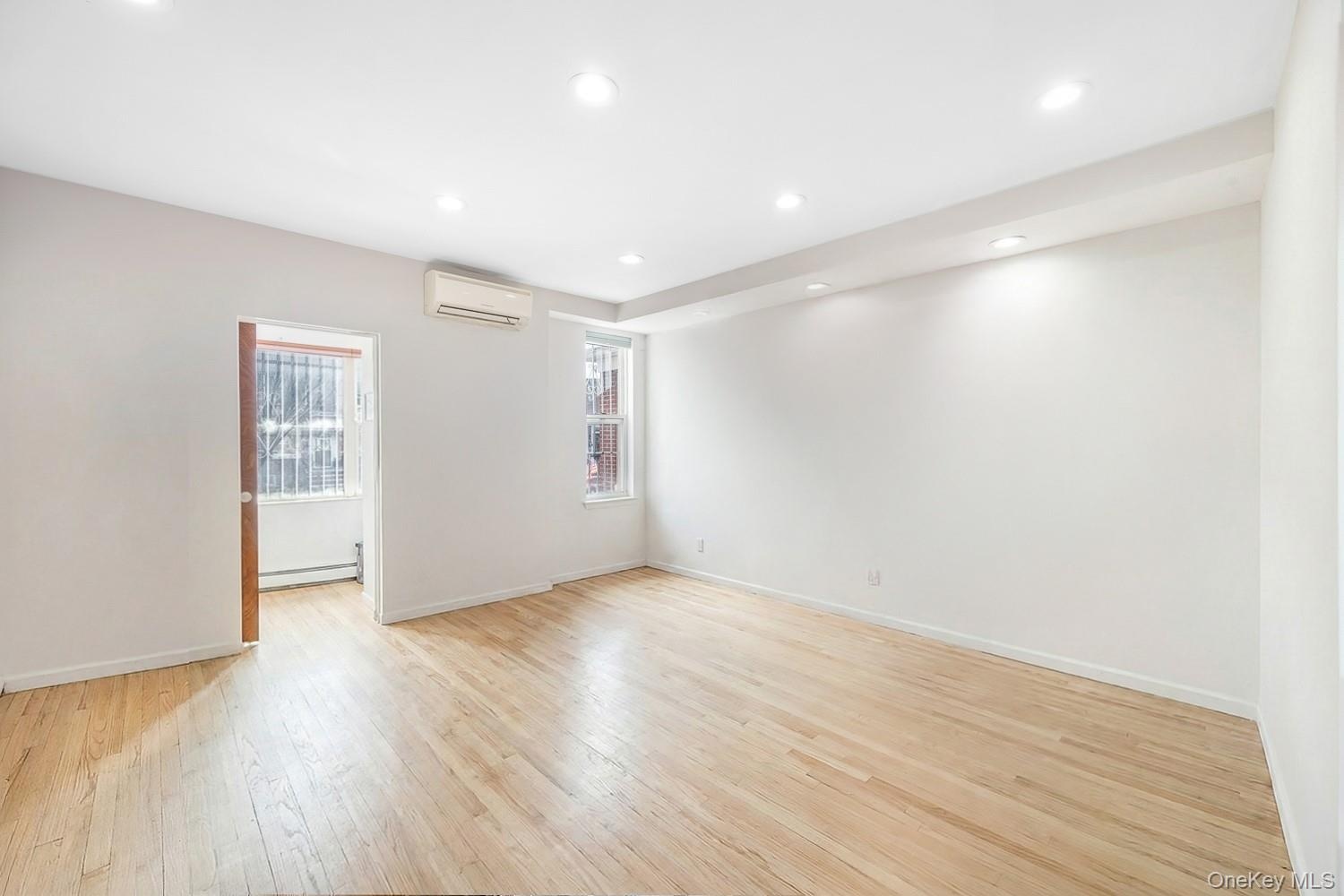 The first floor unit features hardwood floors throughout and was fully renovated in 2023. This spacious two bedroom apartment offers a king size primary bedroom, recessed high-hat lighting, and a full bathroom. The modern kitchen is equipped with stainless steel appliances, a dishwasher, and ample cabinetry. Additional highlights include in-unit washer and dryer, Mitsubishi split-system A/C (cooling only), baseboard heating, and direct access to the backyard, which is exclusively used by the first floor tenant.