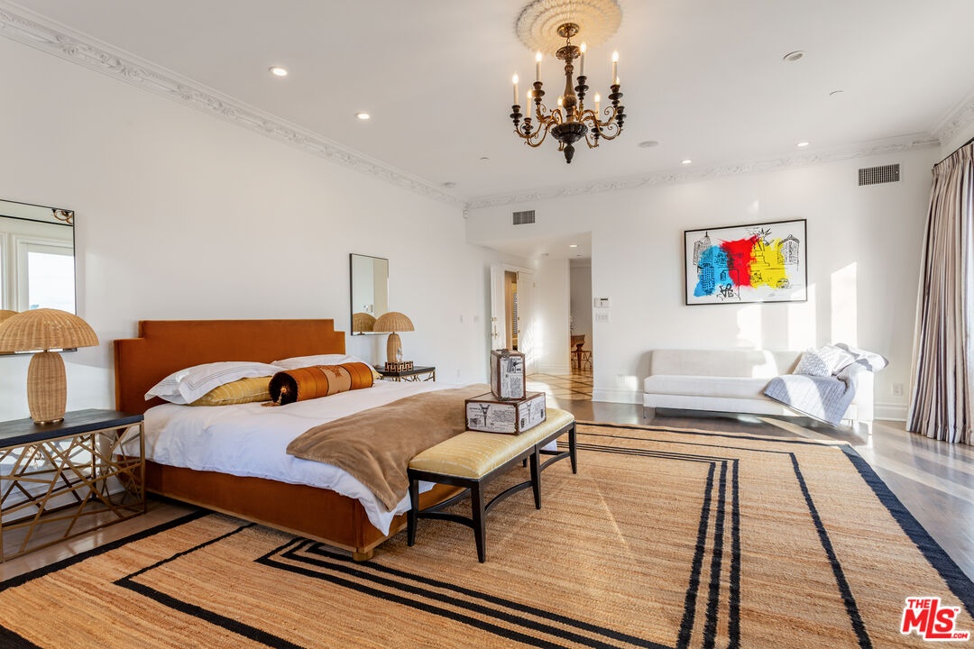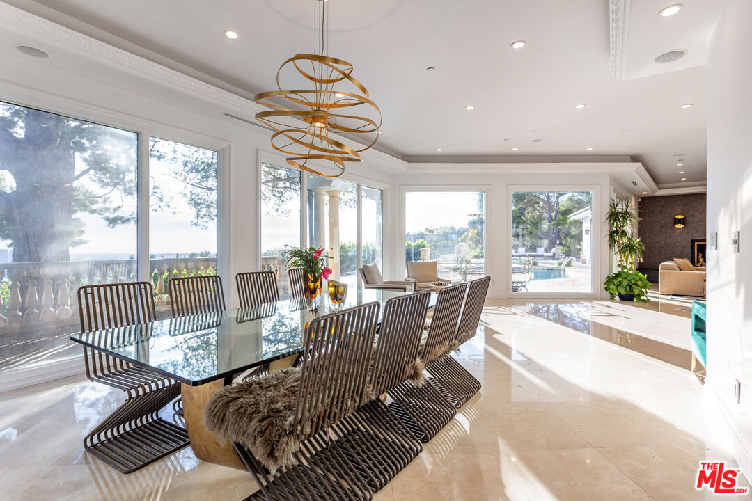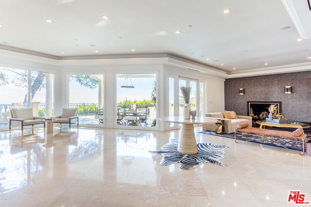 ** FULLY FURNISHED AS SEEN** 1491 Carla Ridge is a Santa Barbara Modern estate with breathtaking views, basketball court and recently reimagined with exquisite designer touches, including contemporary art, and all-new luxury furnishings throughout. The home delivers a resort-style experience. Set behind gates on a massive private estate, the property welcomes you with a grand motor court and immediately draws your eye to sweeping, jaw-dropping panoramic views showcased from nearly every room. Light-filled interiors flow effortlessly to multiple terraces and outdoor spaces, each capturing the unparalleled vistas that define this home. Resort-style amenities include a gated basketball/sport court, a private gym, library, billiard room, and numerous private lounge areas thoughtfully placed throughout the home perfect for a large family seeking both connection and separation. The grounds offer an abundance of usable flat outdoor space for dining, lounging, and entertaining, all framed by dramatic vistas from the backyard and every bedroom. The private primary suite offers unobstructed views over the backyard and the Los Angeles skyline, complete with a spacious dual walk-in closets and a marble spa bathroom. Additional guest suites also feature walk-in closets and beautifully appointed stone bathrooms. A separate lower level enhances both privacy and entertainment, offering two bedrooms, a kitchenette, and a dedicated movie theater ideal for guests, staff, teens, or family living. Mature landscaping and strategic design ensure the property enjoys total privacy while still embracing its incredible scale. A rare property with unmatched views, 1491 Carla Ridge stands as one of the most exciting rental offerings in Beverly Hills.