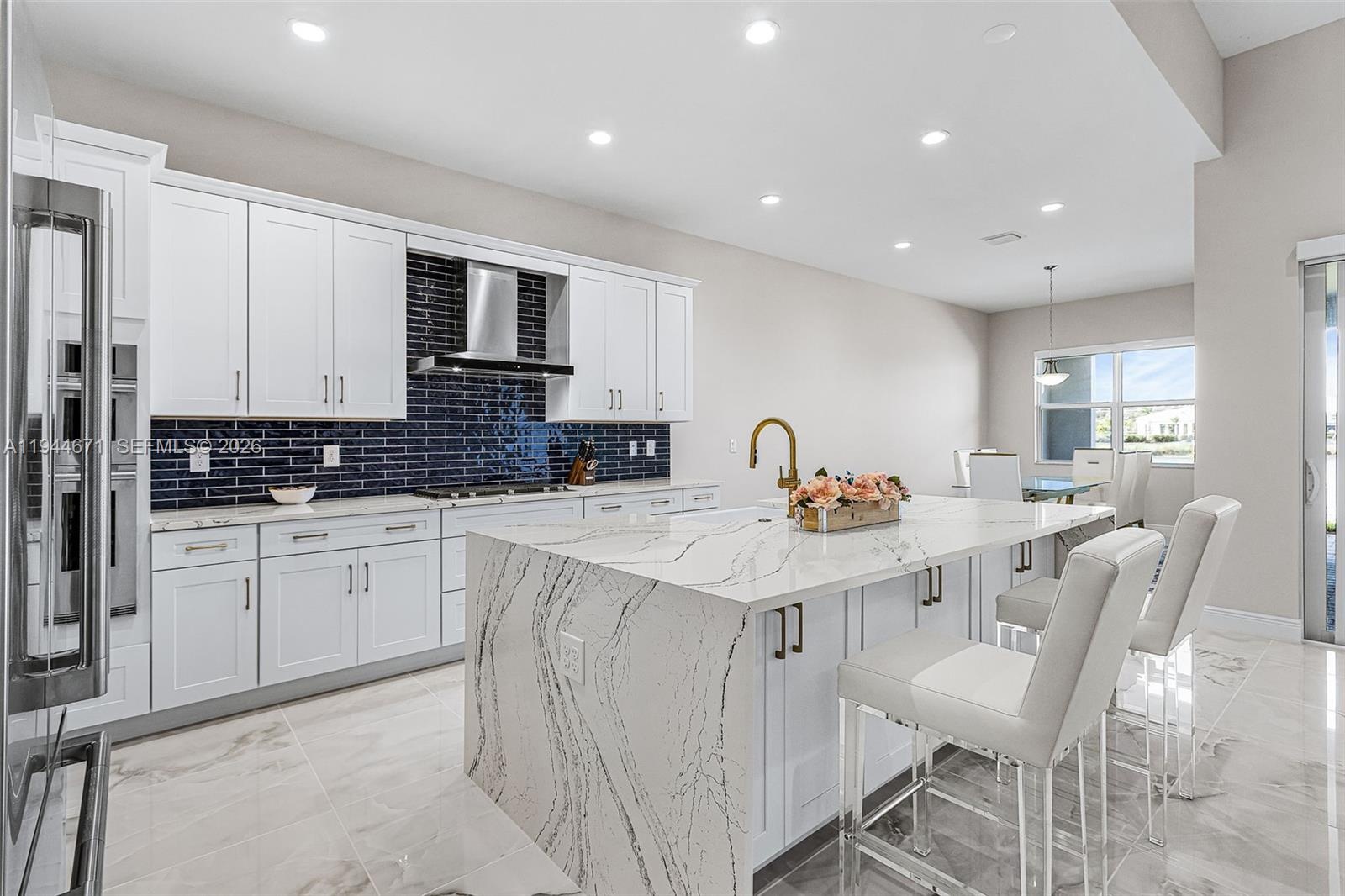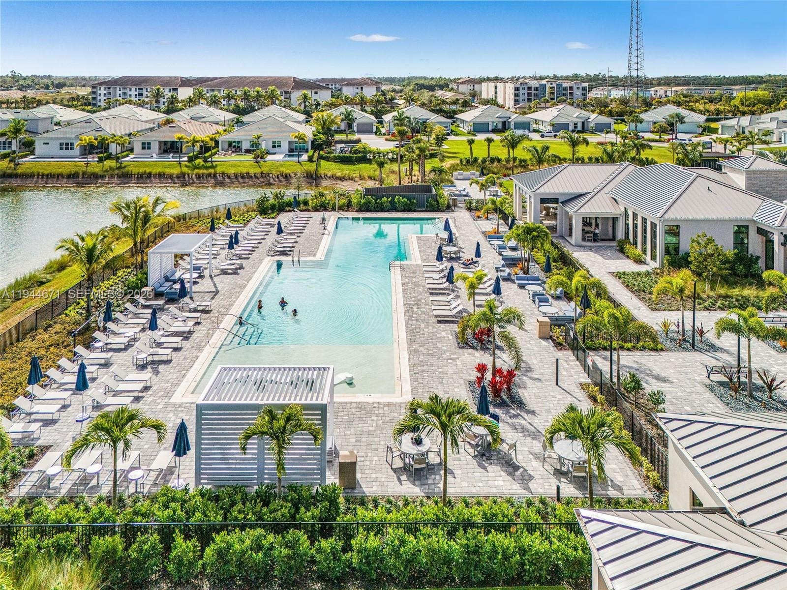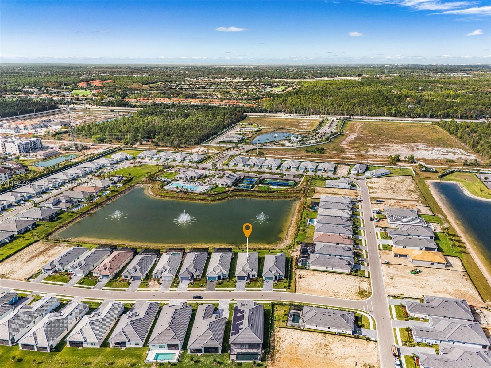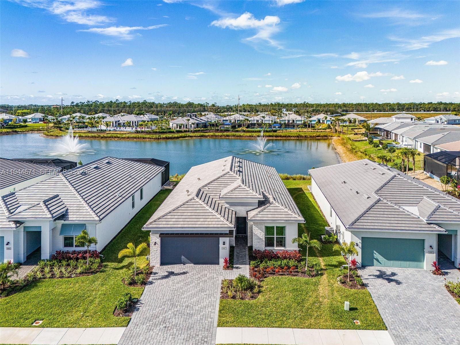 Welcome to this gorgeous Pinellas model waterfront home at Seven Shores in desirable Naples, FL. This brand new, never-lived-in, open-concept home offers 4 bedrooms, 3 baths, soaring 12-foot ceilings in the great room, and an amazing chef’s kitchen, all built to the highest standards with impact-resistant windows and doors. Featuring over $245,000 in upgrades, this showroom-quality home includes luxury finishes throughout, alternate island configuration and upgraded cabinetry in the kitchen, gold-sparkled quartz countertops and designer tile backsplashes and premium upgraded porcelain flooring throughout. The master bathroom includes a beautiful free standing tub, an oversized shower, and shower tiles extending to the full height of the walls. Enhanced lighting with multiple additional recessed fixtures, top-of-the-line Jenn Air appliances, high quality motorized window treatments, multi-slide doors in the living room leading to a spacious patio, an extended covered lanai with a full-height privacy wall, an outdoor kitchen prep package, epoxy-coated garage flooring, gutters throughout, and stunning west-facing water views with breathtaking sunsets. This home is located on a premium, elevated lake view lot, in a rare natural gas and no-flood-insurance community. Seven Shores offers resort-style amenities including an amazing clubhouse, resort style pool, fitness center, pickleball and tennis courts. This home is move-in ready and designed for the ultimate Naples lifestyle.