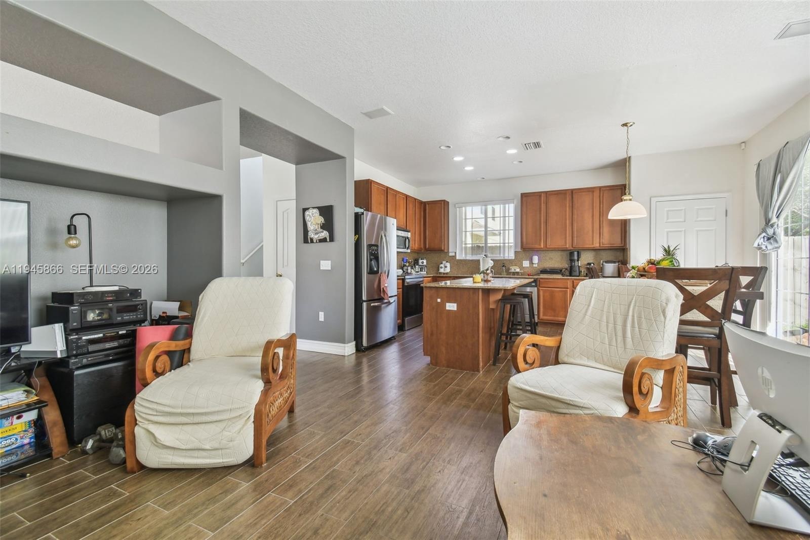 This BEAUTIFUL 4/3, 2 CAR-GARAGE HOME has been appointed with STYLISH UPGRADES and has a SMART FLOOR PLAN. With lots of common areas, this home is great for entertaining or even generational families! Upon entering, you’ll notice the common areas are graced with WOOD-LOOK TILE in the Living Room / Dining Room Combined Area, as well as the Kitchen / Family Room Combined Area. The Kitchen boasts GRANITE COUNTERTOPS, STAINLESS STEEL APPLIANCES, and an EAT-IN DINING AREA. Maybe the best part about the downstairs is that it has a BEDROOM and FULL BATH! Meanwhile, UPSTAIRS not only has 3 BEDROOMS and 2 UPGRADED FULL BATHS, but it has a common LOFT SPACE. bask in the luxury of the SPA-LIKE ENSUITE flaunting a HUGE SHOWER with a GLASS BARN DOOR, CHIC TILE PATTERNS, not one