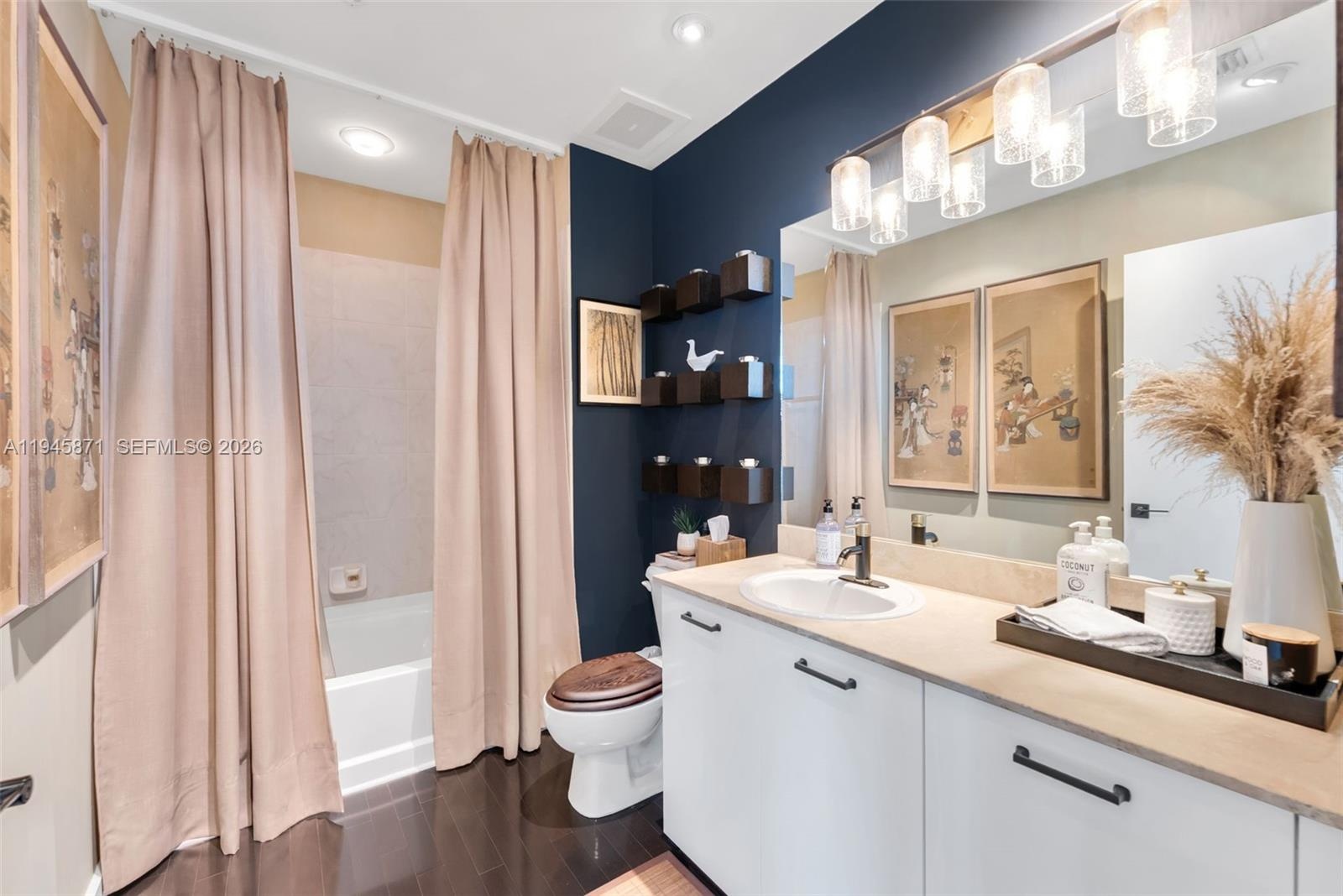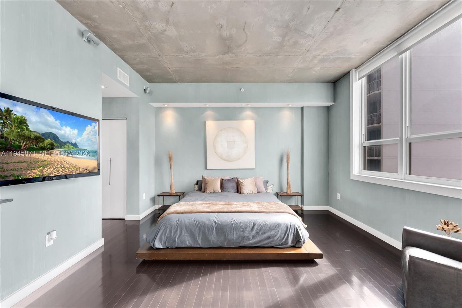 Welcome to your new 2-bedroom loft style condo in the center of Edgewater. Brazilian Cherry hardwood floors throughout, walls professionally painted with faux finish, integrated speakers installed throughout residence, dedicated parking space, Lutron Smart installed for lighting control and enhanced energy efficiently, climate control, updated faucets, updated appliances within the last 3 years. Combine with a true open space concept, bringing a true artist masterpiece.