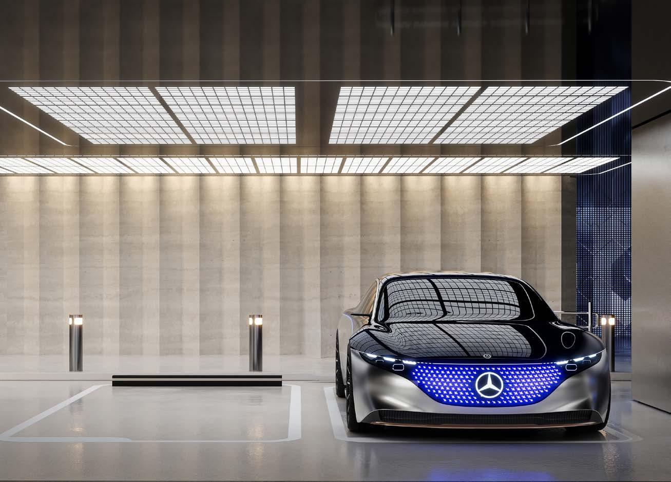The architectural vision is inspired directly by Mercedes-Benz automotive design: