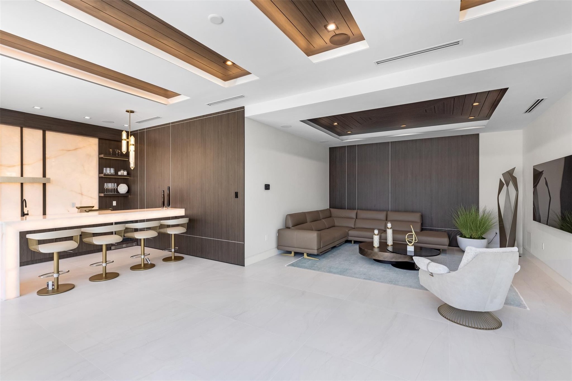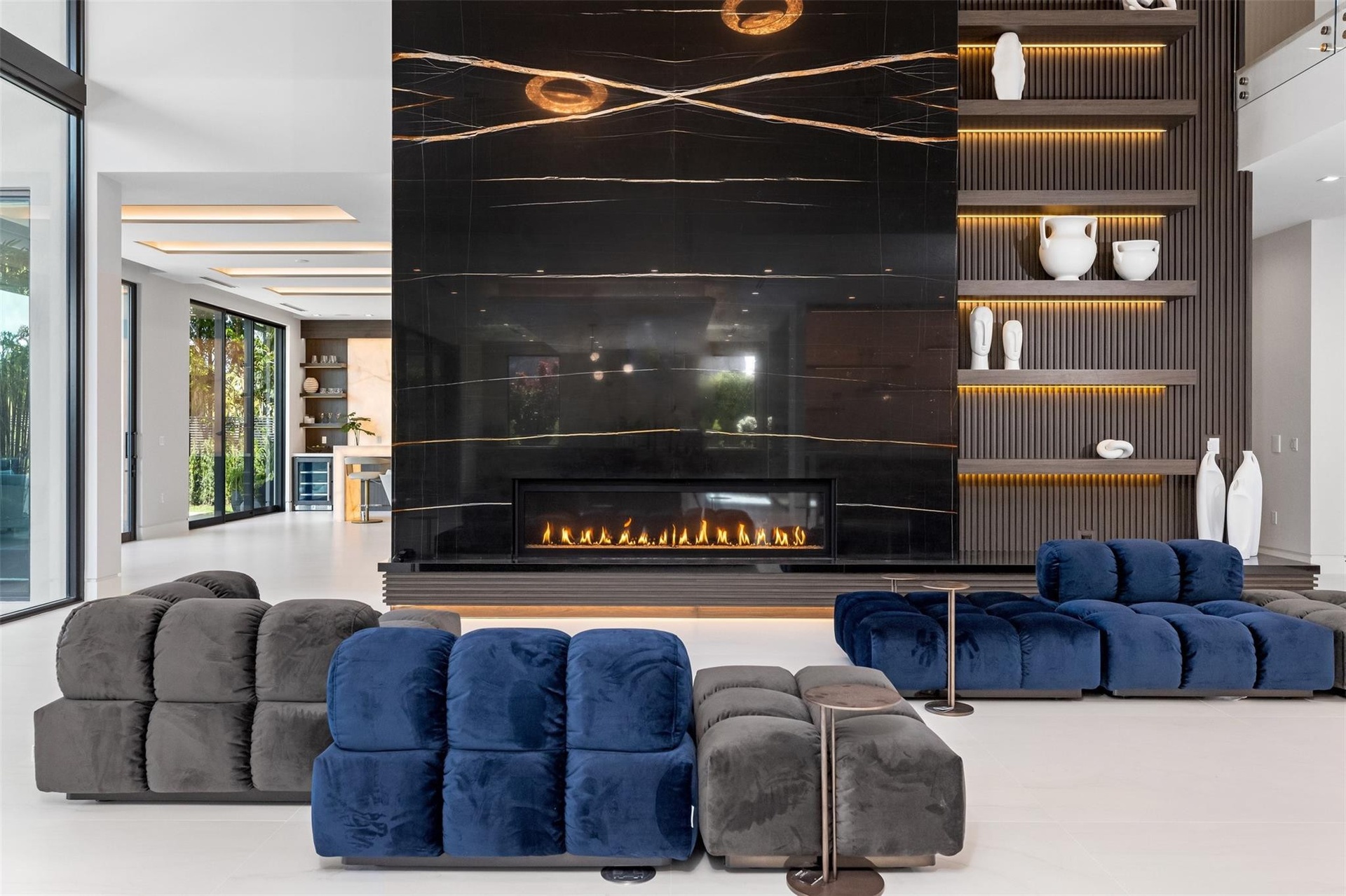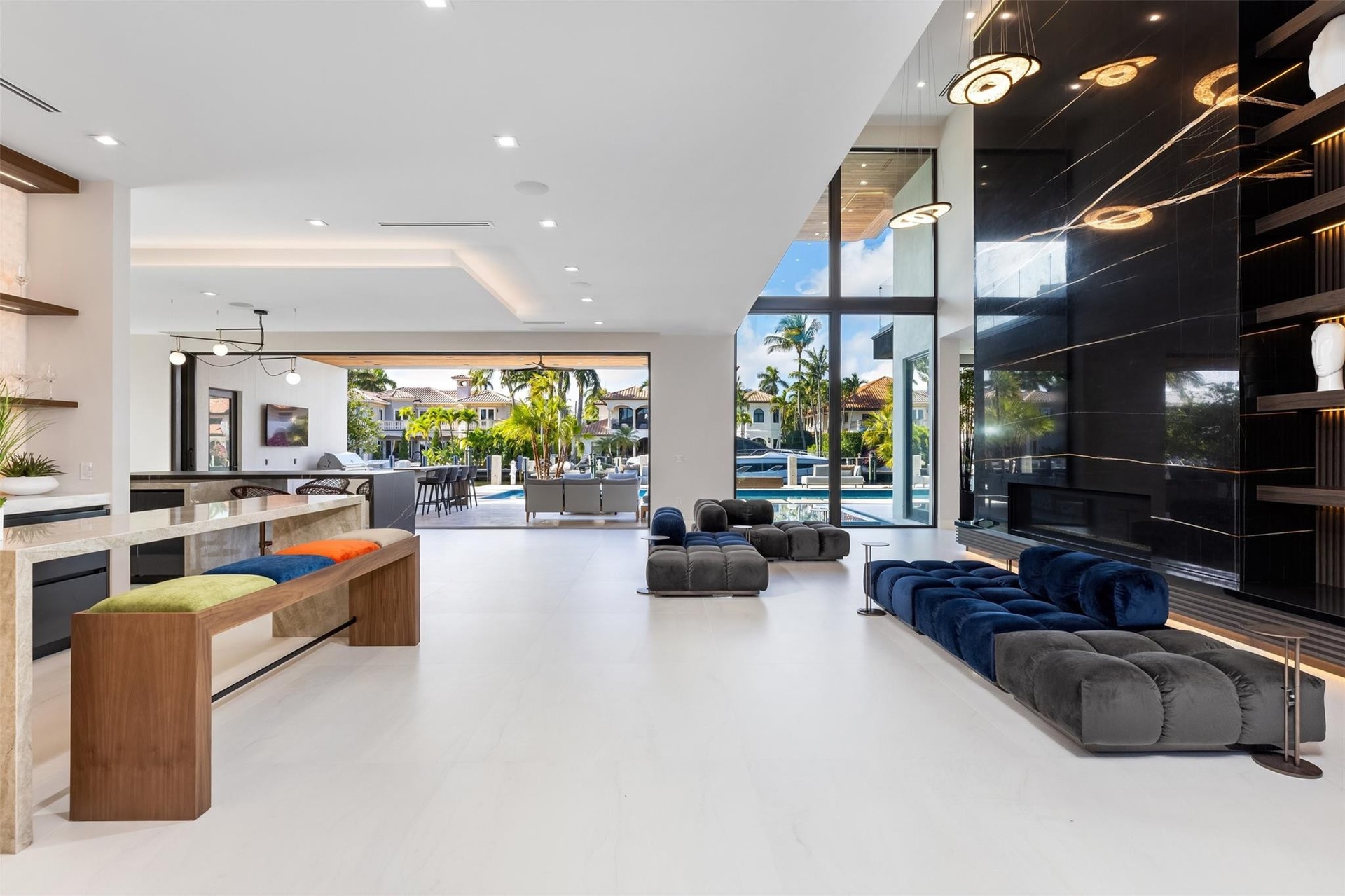 Introducing Coral Ridge’s Most Iconic Design. This hyper-luxurious waterfront estate sets a new standard of elegance, blending organic stone, warm wood tones, and timeless textures with lush landscaping. Fully furnished and move-in ready, the home features an Italian-imported kitchen, glass-encased wine room with self-contained evaporator, soaring 22’ ceilings in the living room with a gas fireplace and dramatic book-matched Sahara Noir marble wall. Disappearing sliders create seamless indoor/outdoor living, opening to resort-style spaces. Offered turnkey with all furniture, art, rugs, bedding, towels, televisions, and security cameras included.