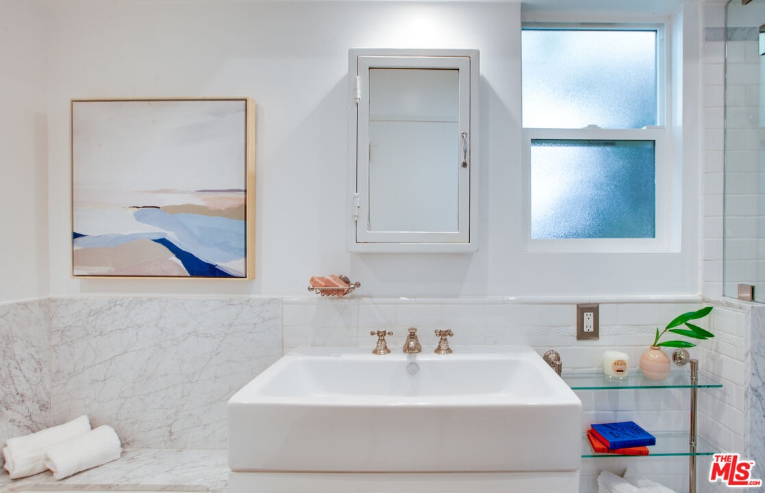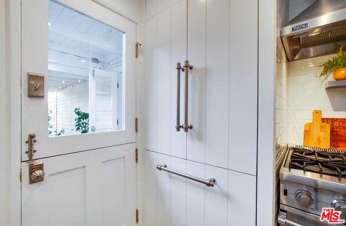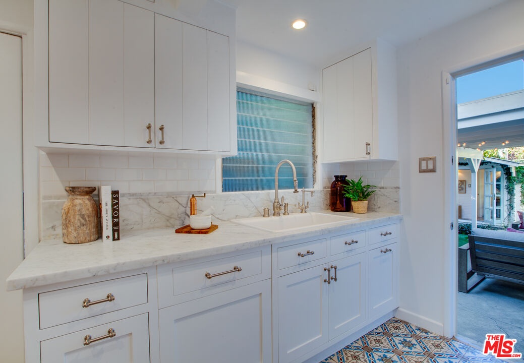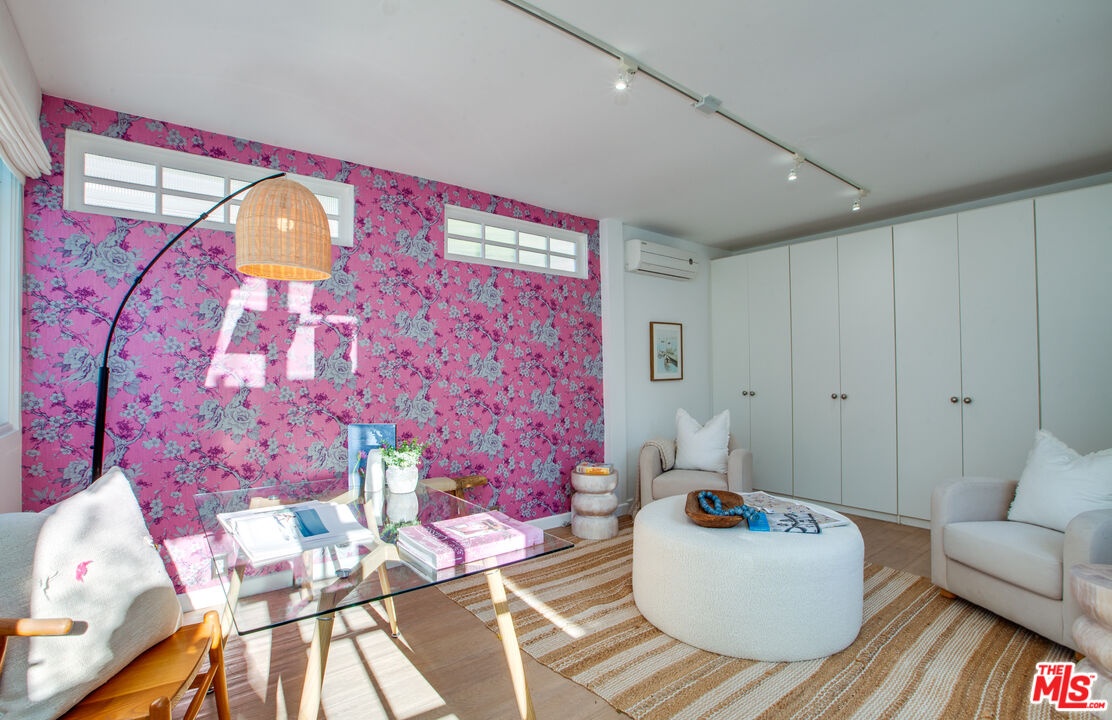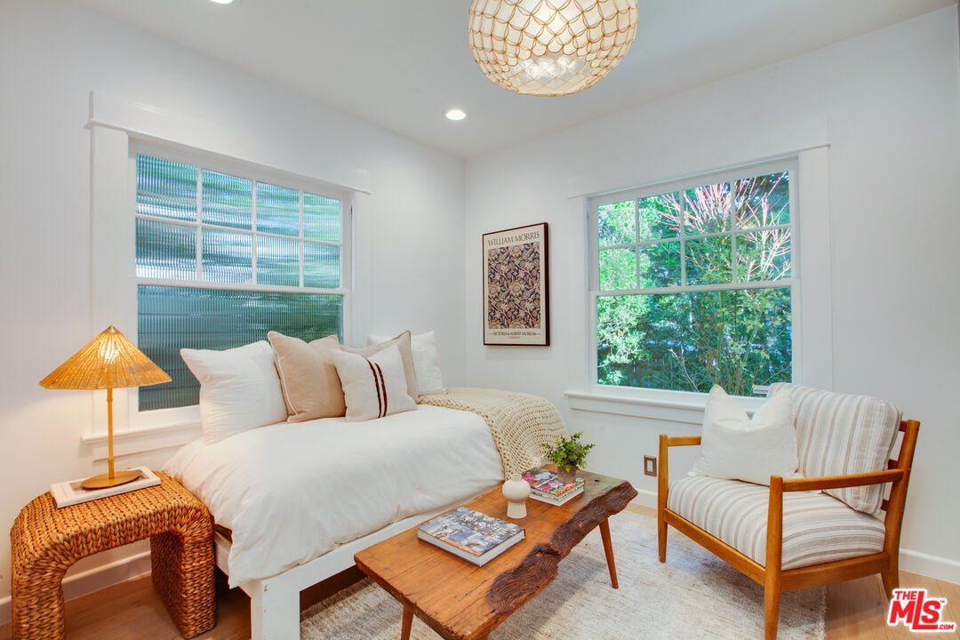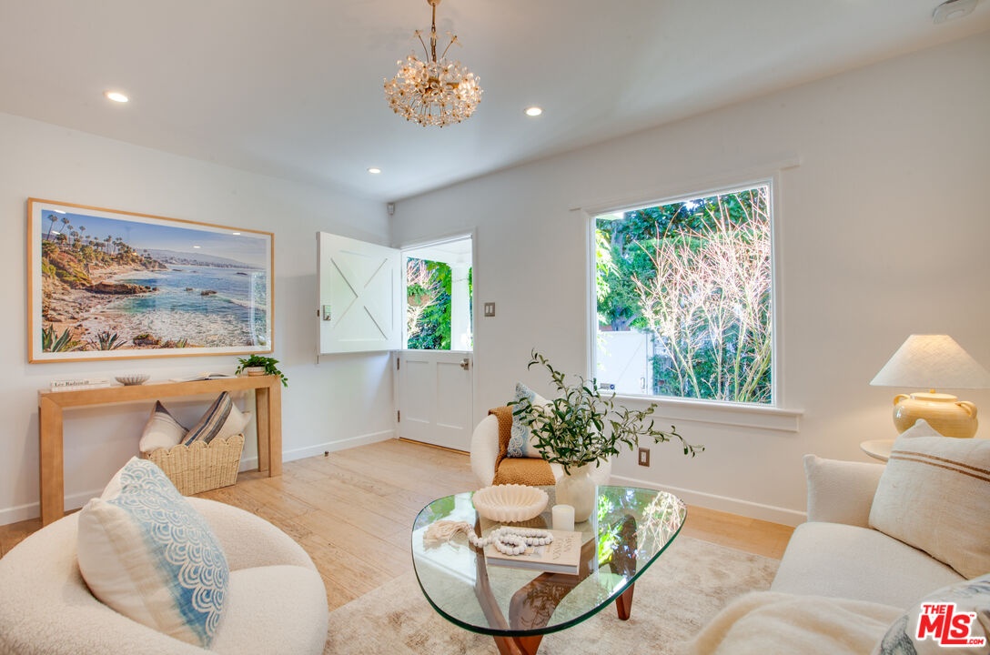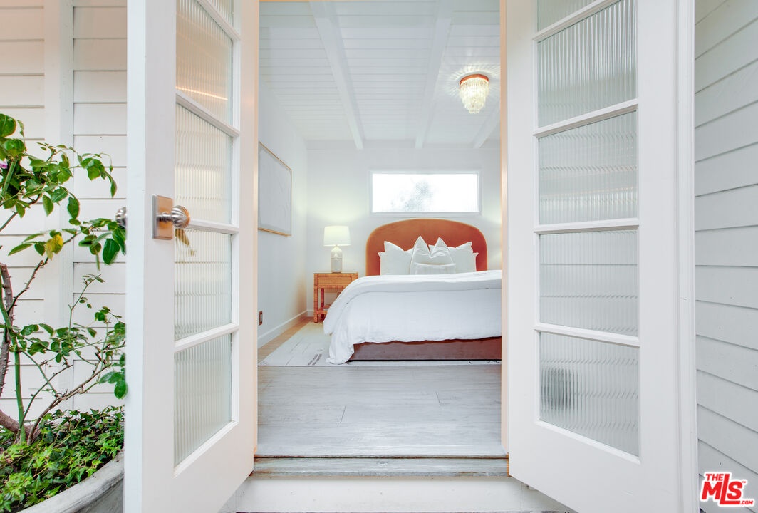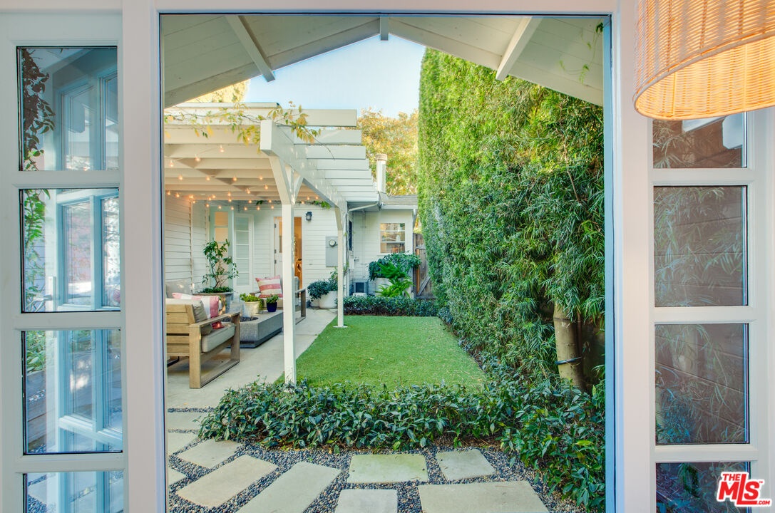 Private Venice retreat with lovely gardens, ideally located on the 700 block of Superba. Abundant natural light streams through the 2-bedroom plus office or artist's studio home that features a fireplace and wide plank hardwood floors in the living room. The kitchen and dining area have designer tile floors, Viking and Fisher Paykel appliances, designer cabinets and hardware plus a large walk-in pantry just off the kitchen with ample built-in shelving and washer/dryer. Continuing through the home, you'll find the 2nd bedroom located at the front of the house with built-in closets and shelves. The bathroom is spacious and luxuriously appointed, featuring a soaking tub, walk-in shower and heated towel bar for added comfort. The primary bedroom boasts a large walk-in closet and elegant French doors that open to the back garden. Step outside into the lush, private backyard, where you'll be greeted by an abundance of fragrant flowers every spring. The outdoor space is perfect for entertaining year-round, offering an alfresco dining area and a covered sitting area complete with a cement fire feature coffee table. Tucked away at the back of the property is an artist's studio, office or meditation room, where light streams in through 2 walls of windows. A second structure features a small lounge/reading room and a half bath. There is remote controlled gated parking at the back of the property. The residence is a true Venice treasure, situated in the walk-street area, 2 blocks from Abbot Kinney, minutes from the beach and close to all that Venice has to offer.