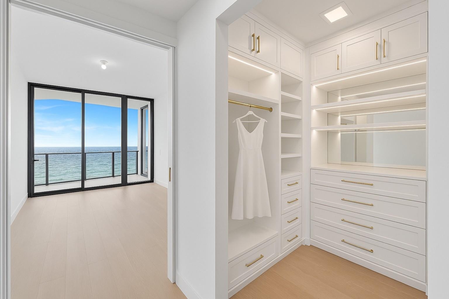 - Primary bedroom showing one of the closets virtually staged