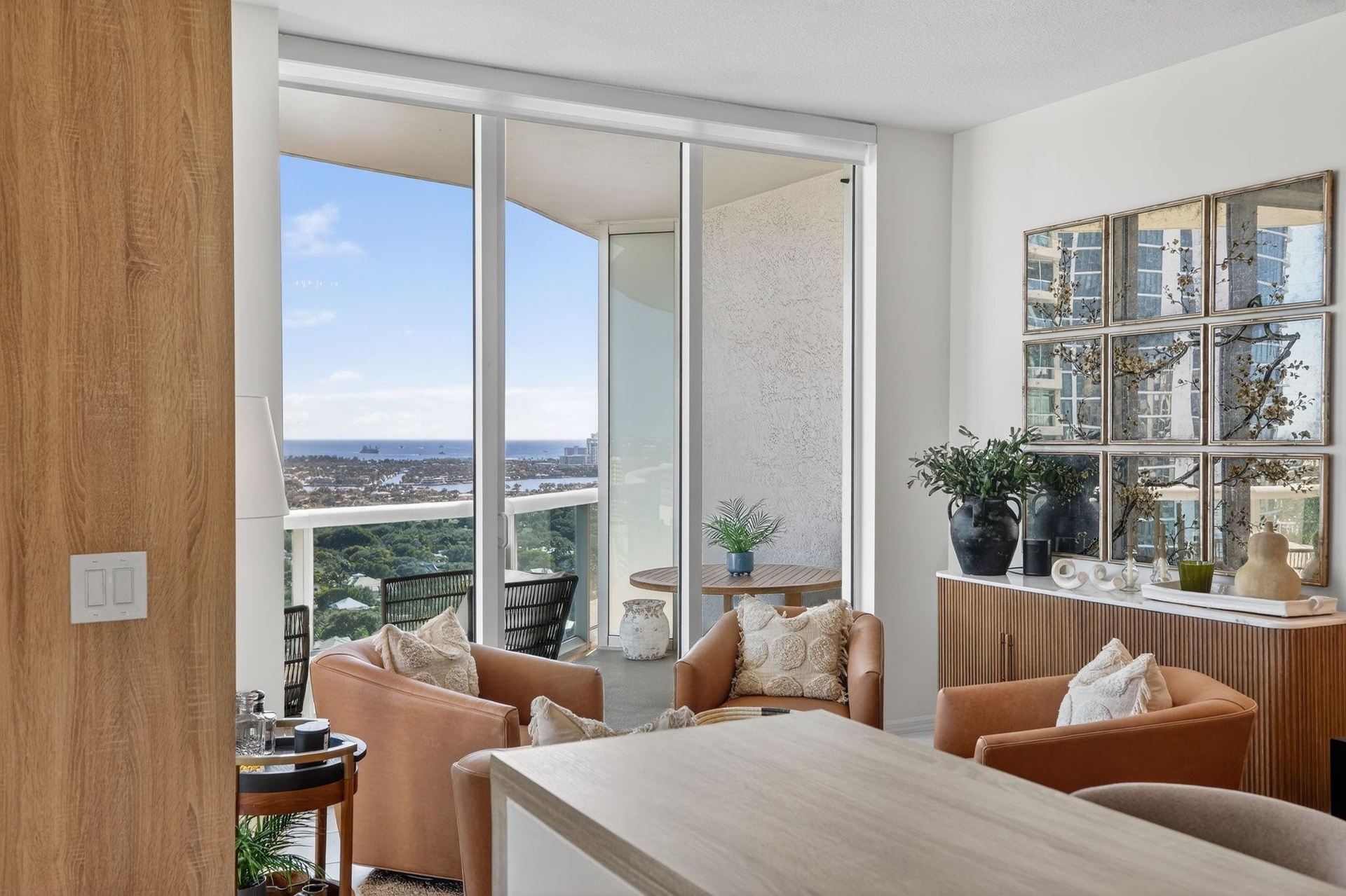 WATERGARDEN PENTHOUSE PH6 | RENOVATED 2022 | FULLY FURNISHED: Rare penthouse opportunity at Watergarden with 270-degree unobstructed views: Ocean, Intracoastal, City, and New River. 10 Foot ceilings, floor-to-ceiling glass, and east and northeast-facing exposures maximize natural light throughout. Completely renovated in 2022 with coastal chic finishes, custom built-ins, and a designer furniture package included. Move-in ready—no updates needed. 5-star full-service lifestyle offering: 24-hour valet/security, concierge, tropical pool deck with hot tub, two-story gym, clubroom, business center, movie theater with scheduled showings, and pet-friendly accommodations — all within walking distance of restaurants, shops, art events, and Publix on famous Las Olas Blvd. 2025 HVAC and more!