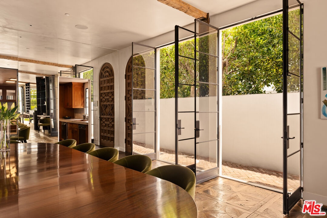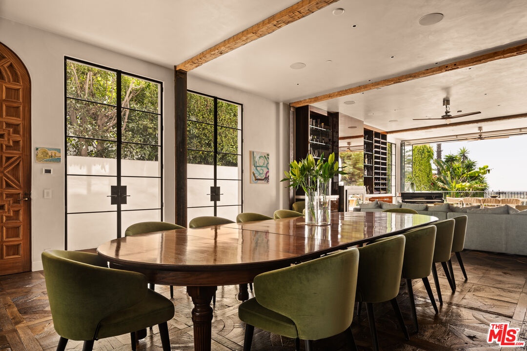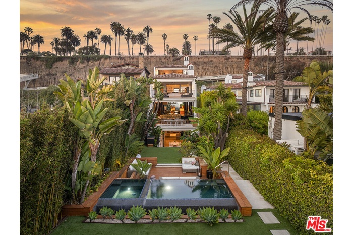 Welcome to Villa Molori, a legacy estate along the famed Palisades Beach Road in Santa Monica. Once graced by legends like Charlie Chaplin and Howard Hughes, this exclusive enclave known as the original "Billionaire's Beach"is now home to tech moguls, film executives, and captains of industry seeking the ultimate coastal retreat. Crafted by Molori Design, this world-class resort-style estate exemplifies coastal luxury. With multiple access points and proximity to first responders, experience unmatched serenity with 24-hour private security and a fully staffed fire station just yards away. From the lushly landscaped grounds and private infinity-edge pool with hot tub and cold plunge, to the open-air stainless steel kitchen by Kalamazoo and dual alfresco lounge areas, every inch of the exterior was designed for both celebration and serenity. Tropical gardens and soaring palms form a green cocoon of privacy while offering unobstructed ocean views that stretch to the horizon.Inside, soaring ceilings and wide-plank chevron oak floors lead you through a gallery of European-inspired luxury. Floor-to-ceiling glass doors open to create united indoor and outdoor spaces, blurring boundaries between architecture and nature. A grand formal living room is framed by Ebony Macassar and Thassos stone, opening to an expansive deck ideal for sunset entertaining. A statement fireplace anchors an outdoor dining area set beneath the stars, wrapped in tall bamboo for ultimate seclusion. The chef's kitchen, inspired by the famed El Bulli restaurant and designed in collaboration with culinary innovator Juan Carlos Ramos, features bespoke cabinetry and Wolf & Sub-Zero appliances. An elegant dining room seats up to 25 guests, flanked by French doors and ocean breezes. Upstairs, the showstopping primary suite is a sanctuary of light, warmth, and view. Vaulted ceilings with exposed beams and a sculptural wood fan crown a space anchored by a sleek fireplace and floor-to-ceiling doors that open to a private balcony. Enjoy watching your best films with a full screen projector and surround speakers. Herringbone floors echo the craftsmanship throughout, while a spa-worthy bath with copper double slipper tub and steam shower completes the retreat. A second primary suite mirrors the luxury, with retractable glass walls and a private terrace with rooftop jacuzzi. Every bedroom feels like a five-star hotel suite, featuring built-in coffee stations, private bars, and luxurious en-suite baths. A state-of-the-art home theater, gym, yoga/pilates studio. The villa also features a modern minimalist steam room with a unique heavy metallic porthole window. The massage room features a Murphy bed and can be turned into a 6th bedroom. A Geothermal radiant serves for the floor & pool heating speaks to the no-expense-spared ethos. Technology meets tranquility with full Control4 home automation, sound-engineered windows and doors, a private garage and generous guest parking. Surrounded by neighbors such as George Rosenthal or David Bonderman, this stretch has long attracted A-listers and visionaries. The home was untouched and not evacuated during recent wildfires testament to its prime location and enduring security. A once-in-a-generation offering on the most sought-after shorelines ready for your permanent home.