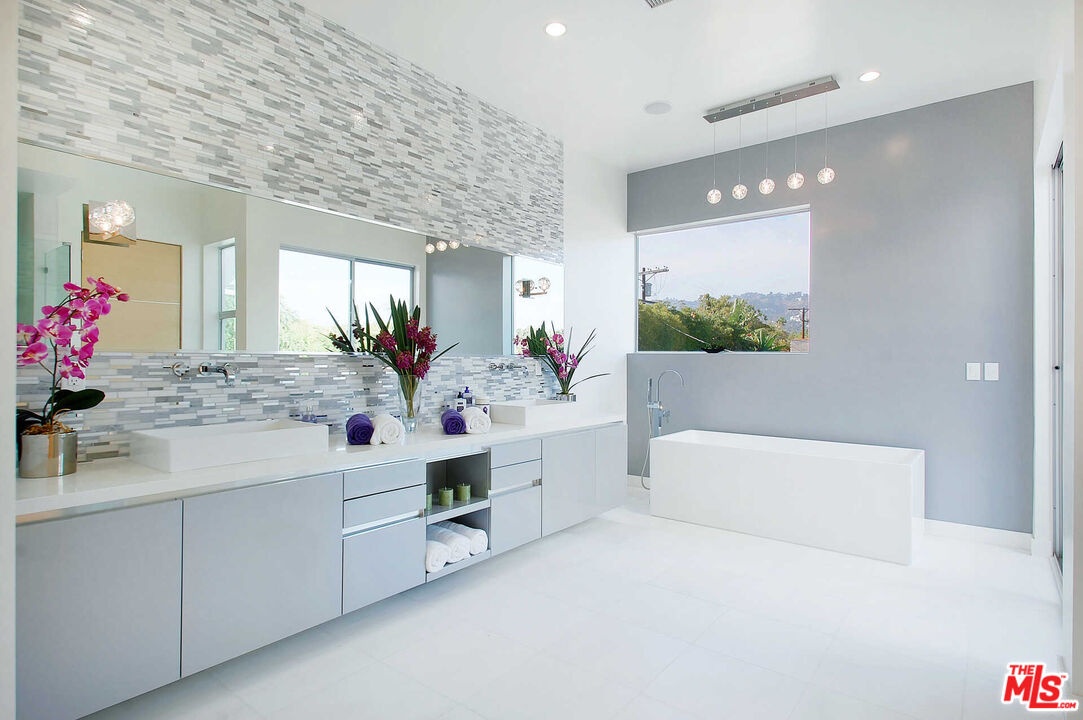 SHORT OR LONG TERM AVAILABILITY! Behind secure gates and lush privacy hedges lies a striking five-bedroom modern masterpiece that blends elegance, functionality, and indoor-outdoor living at its finest. Soaring ceilings and expansive, light-filled interiors create a sense of effortless sophistication the moment you step inside. The main level is designed for grand-scale entertaining, with generous living and dining areas that flow seamlessly into a sleek European chef's kitchen outfitted with top-of-the-line Miele appliances. Massive sliding glass doors vanish to reveal a private backyard oasiscomplete with a covered alfresco dining space, sparkling pool, and spaperfect for relaxing or entertaining under the California sun. Five luxurious en-suite bedrooms are thoughtfully arranged, with one conveniently located on the main floor and four upstairs, including an opulent primary suite featuring a walk-in closet, spa-inspired bath, and a serene private deck overlooking the lush yard. Three additional balconies offer tranquil outdoor escapes throughout the home. State-of-the-art amenities include Control4 home automation, a comprehensive security camera system, integrated speakers, automated shades, and a motorized gate. Ideally situated in a prime location, just moments from The Grove, premier shopping and dining, Blue Bottle Coffee, and with easy access to West Hollywood, Beverly Hills amd Century City.