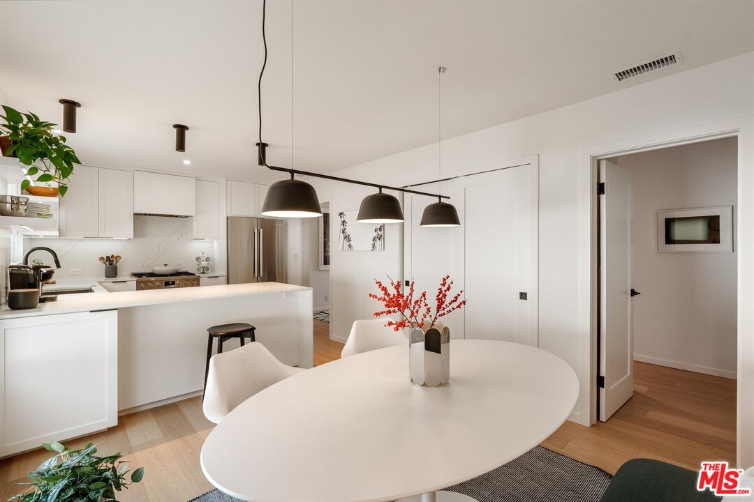 Introducing a fully permitted, designer-renovated top-floor residence in one of Santa Monica's most coveted neighborhoods. Completed between 2021 & 2022 with an owner-driven design and meticulous attention to detail, this 1,500 sq ft, 2-bedroom, 2-bath, light-filled home delivers luxury, functionality, and a rare level of quality for the Wilshire/Montana market. Located in a charming 7-unit complex, the unit features 9'+ ceilings, southwest-facing exposure, new double-pane windows, custom window coverings, and expansive sliding glass doors that bring in beautiful natural light and views of palm trees, cityscape, and even a slight ocean view on clear days. The extensive renovation includes oak wood flooring, custom-height baseboards, all new interior shaker doors with upgraded hardware, Baldwin front door hardware, a wrought-iron stair railing, Benjamin Moore Zero VOC paint, custom electrical work, new light fixtures throughout, and LED strip lighting in key areas. The home also features a new heat pump (2021), new air handler (2023), and a Halo LED air scrubber, ensuring clean indoor air and energy-efficient comfort.The chef's kitchen is a standout: custom shaker/flat-panel cabinetry (soft-close, dovetail construction), Pental honed quartz counters + waterfall peninsula, floating shelves with integrated LED lighting, and high-end appliances including Bosch, Sharp, and LG washer/dryer. A built-in bar with custom cabinetry and low-iron " Starphire glass shelving adds beauty and functionality to the main living space.Both bathrooms were completely rebuilt and feature honed Carrara marble floors, walls, and counters, high-quality plumbing fixtures, frameless glass shower, custom cabinetry, new toilets, sinks, tub, and a built-in medicine cabinet in the primary suite. The primary bedroom includes a California Closets custom walk-in closet, while upgraded hallway closets offer additional organized storage. The elegant fireplace has been rebuilt with a Statuarietto marble surround and updated to code with gas ignitionfully functional for gas logs or decorative. A rare Santa Monica amenity, the home includes 3 parking spaces: a private two-car tandem garage, one additional parking space, plus a large private storage room, all exclusive to Unit 5.Located in the highly sought-after Franklin School District, the property sits just moments from Montana Avenue's boutiques, cafs, Erewhon, Whole Foods, Trader Joe's, top dining, banking, healthcare, and the beach. Near all your needs, convenience, and a quiet residential setting make this an unbeatable location. This is truly a turnkey, top-floor designer renovation with thoughtful materials, low/zero VOC products, premium fixtures, storage, light, airflow, and an elevated layout that provides calm, luxury, and joy. Homes of this caliber in a 7-unit building rarely hit the market. See pvt remarks for a showing requests.