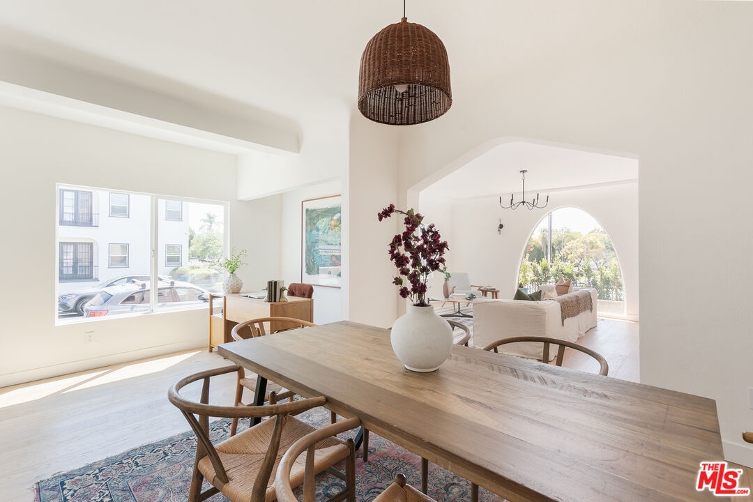 Discover the charm and grace of this thoughtfully renovated Spanish Colonial Revival, ideally situated on a light-filled corner lot. This oversized 2-bed, 2-bath residence blends timeless character with modern comfort in all the right ways. From the moment you arrive, the architecture enchants with arched windows and doorways, a warm stucco exterior, and a private front yard exclusive to the unit, offering the perfect balance of privacy and indoor-outdoor living. Inside, the sun-drenched open floorplan is rich with historic detailing and generous scale. The living room flows seamlessly into an expansive dining area, while the open kitchen features a central island, ample cabinetry, and a layout that nods to the home's original soul while embracing contemporary style. Both bathrooms have been tastefully updated with finishes that elevate the space without overshadowing its heritage. System upgrades include HVAC, upgraded roof, and permitted updates to electrical, plumbing, and foundation - all providing peace of mind and lasting value. Secure parking is included, and the location in Faircrest Heights - recognized as one of the "10 Best Districts You've Never Heard Of" by both Los Angeles Magazine and Business Insider. Surrounded by historic architecture and vibrant community life, this central hub is minutes from Beverly Hills, The Grove, Cedars-Sinai, La Cienega Park, and some of LA's best dining and shopping. This is a rare opportunity to own a piece of Los Angeles history - restored with intention and designed to inspire.