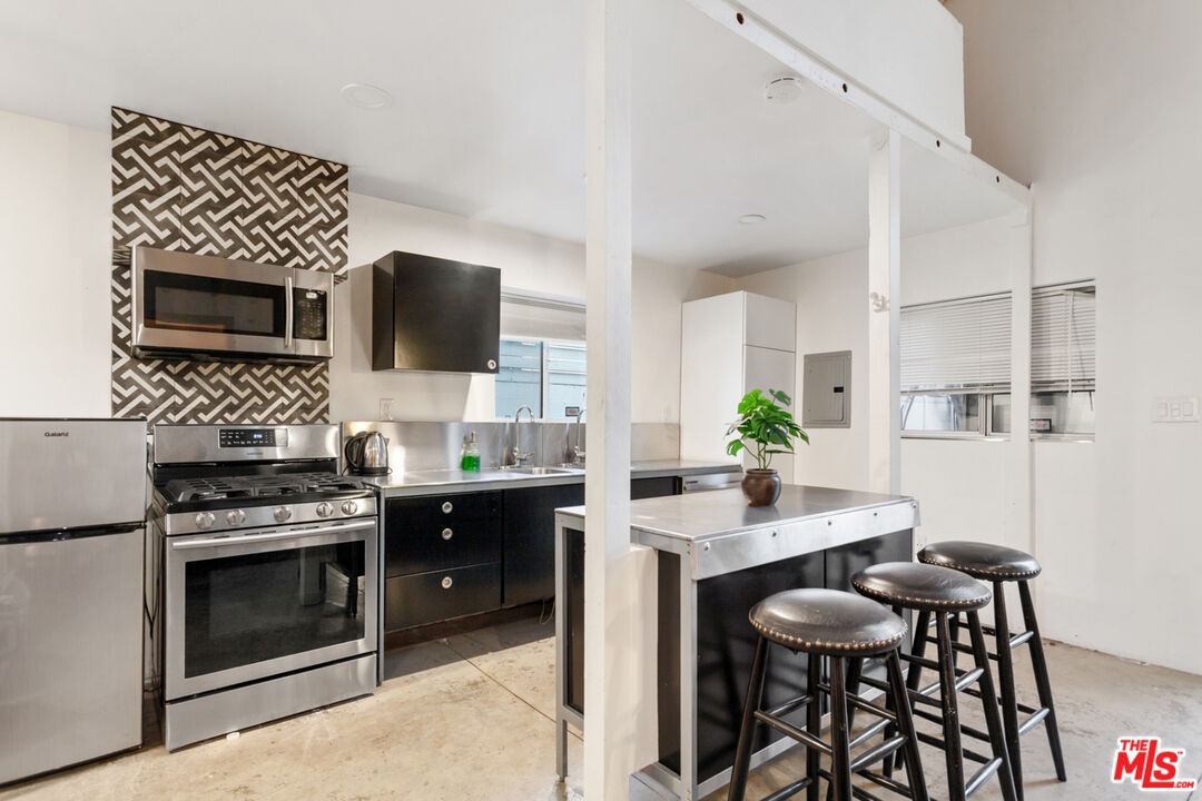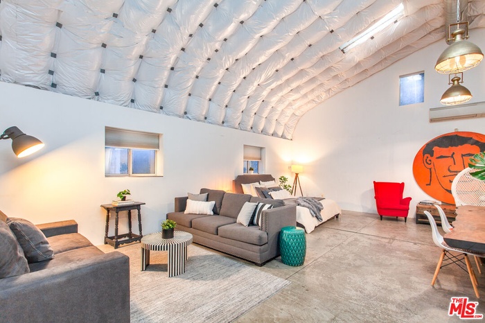 A truly rare Hollywood artist's compound offering multiple, flexible live/work spaces. Gated and private on a quiet street, this 1907 Spanish style property combines historic charm with a modern studio addition, ideal for creatives, professionals, or those seeking a one-of-a-kind residence. The main house features classic Spanish architecture, including a beautiful loggia overlooking the front yard, arched details, hardwood floors, and abundant natural light. Offering two bedrooms and two bathrooms on the main floor. The ensuite bedroom also includes a wet bar that has been utilized as a kitchenette, adding versatility to the home. Two upstairs bonus rooms with skylights provide flexible space for sleeping, office, or creative use. At the rear of the property sits a striking, hangar-style studio, built in 2010, offering approximately 1,000 square feet of open, loft-like space with soaring curved ceilings and an industrial-art aesthetic. Fully built out with its own kitchen, bathroom, and laundry, this separate structure is ideal as a creative studio, live/work space, guest quarters, or additional living area. Outdoor areas include space for al fresco dining and entertaining. Off-street tandem parking accommodates five or more vehicles along the north drive. Located near Sunset Boulevard, Cahuenga, studios, dining, shopping, and entertainment, this is a rare opportunity to live in a distinctive Hollywood compound with character, privacy, and creative freedom.