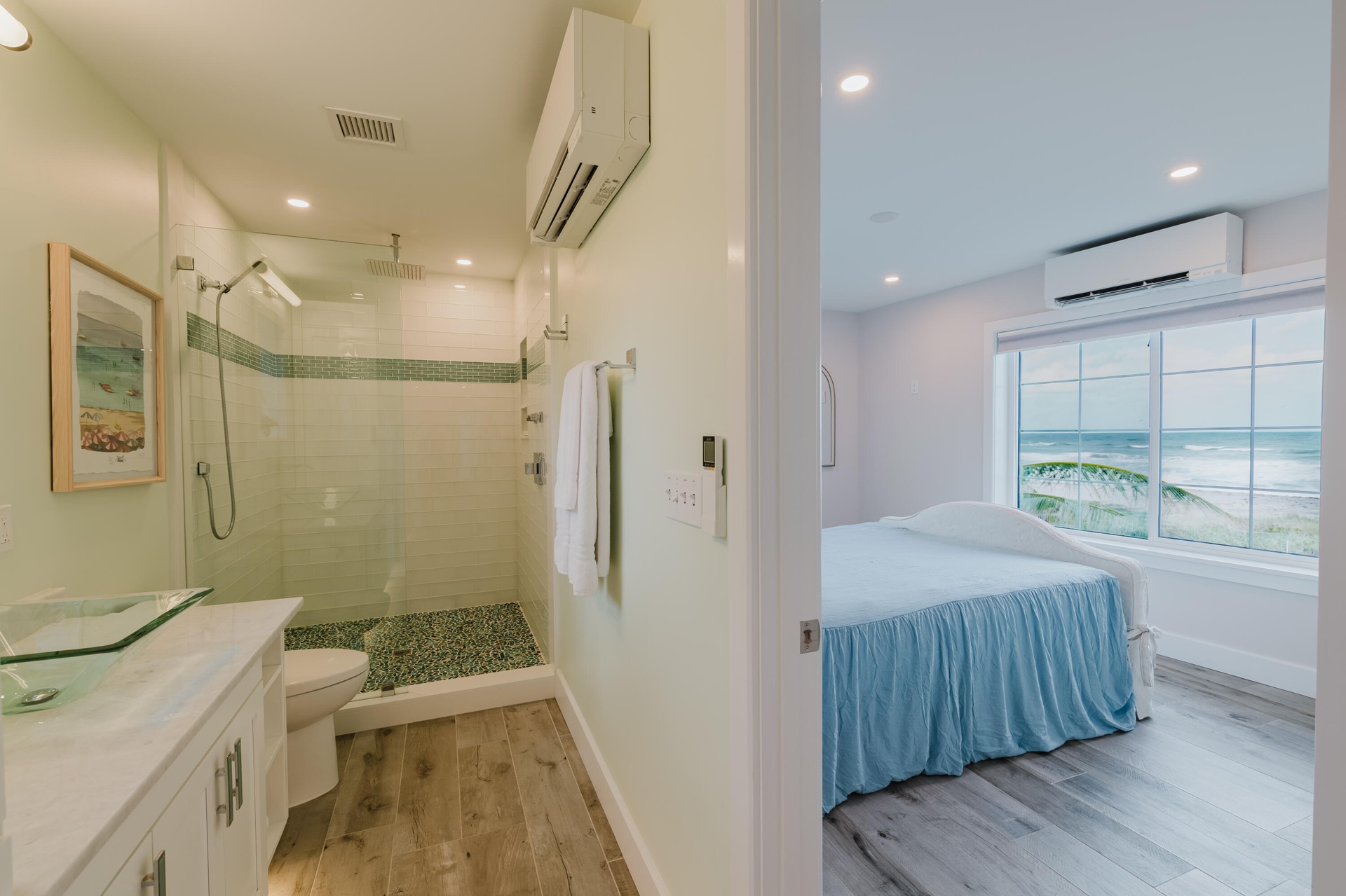 Spectacular ocean views from nearly every living space define this fully updated Jupiter Island beachfront retreat.