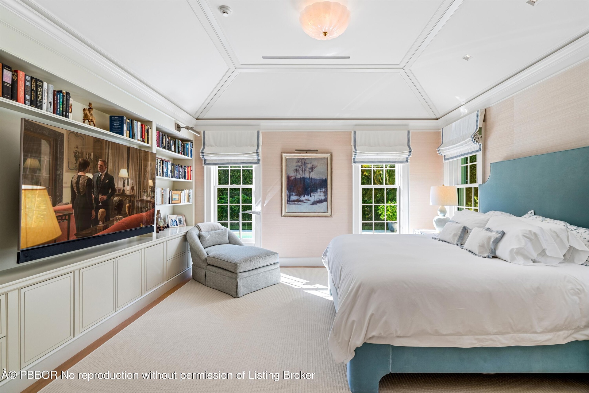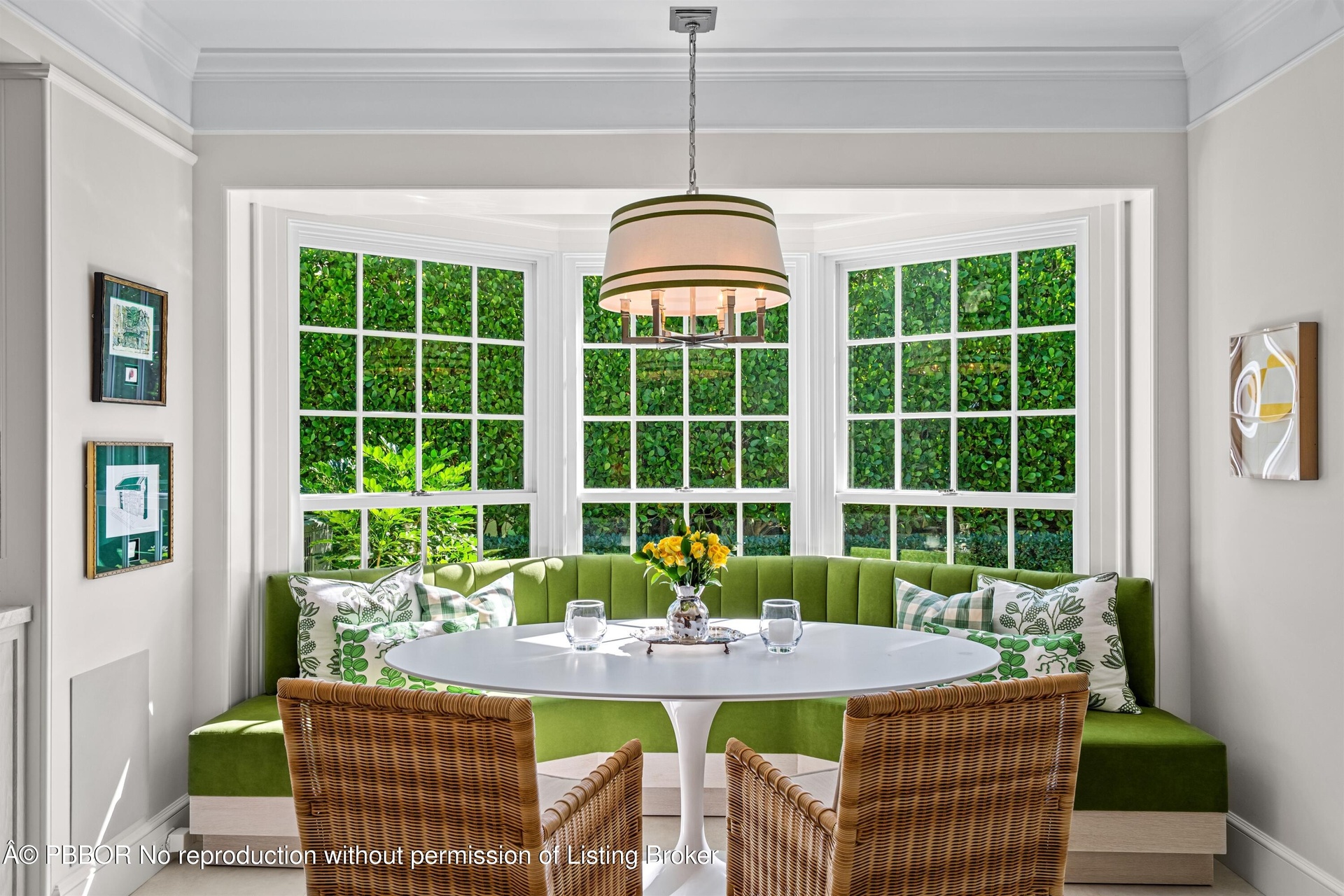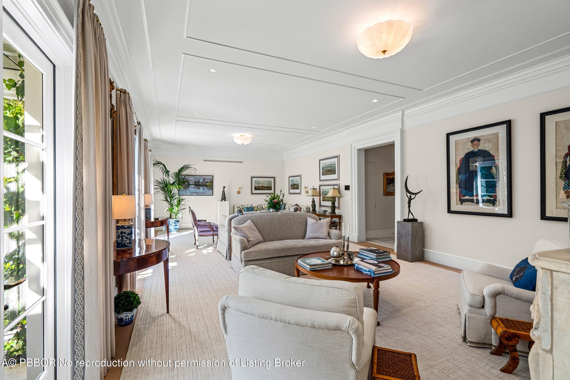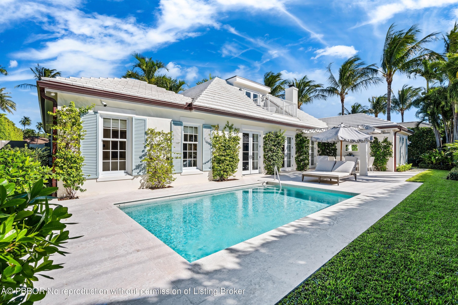 During the extensive 3 year renovation, the Sellers spared no expense and collaborated with one of Palm Beach's finest teams of professionals: Fairfax & Sammons Architects, John G. Mitchell Inc, General Construction and McCann Design Group to create a home to the very highest standard. Details include ten-foot ceiling heights, handsome wood-plank flooring, custom built-in French Lime Oak cabinetry, rich paneling, molding-enhanced ceilings, decorator wall coverings, Lutron lighting throughout, and sound wired independently in each room. The living room, epitomizing chic refinement, features a charming Louis XIV limestone fireplace, while three sets of French doors lead out to the pool and dining loggia. The sleek chef's kitchen pairs form and function, finished with contemporary, custom cabinetry, stone counters and backsplashes, top-of-the-line appliances, and an adjoining breakfast area set within an enchanting bay window. The split bedroom plan places the first-floor primary suite in a wing of its own for total privacy. Luscious greenery and well-manicured grounds are hallmarks of this enchanting property. An old-brick motor court approach creates a distinguished street-side impression, and for outdoor living, an alfresco dining area is next to the sun-splashed pool, while an intimate private patio with seating is tucked away in the charming east garden. The home is complete with a full house generator.