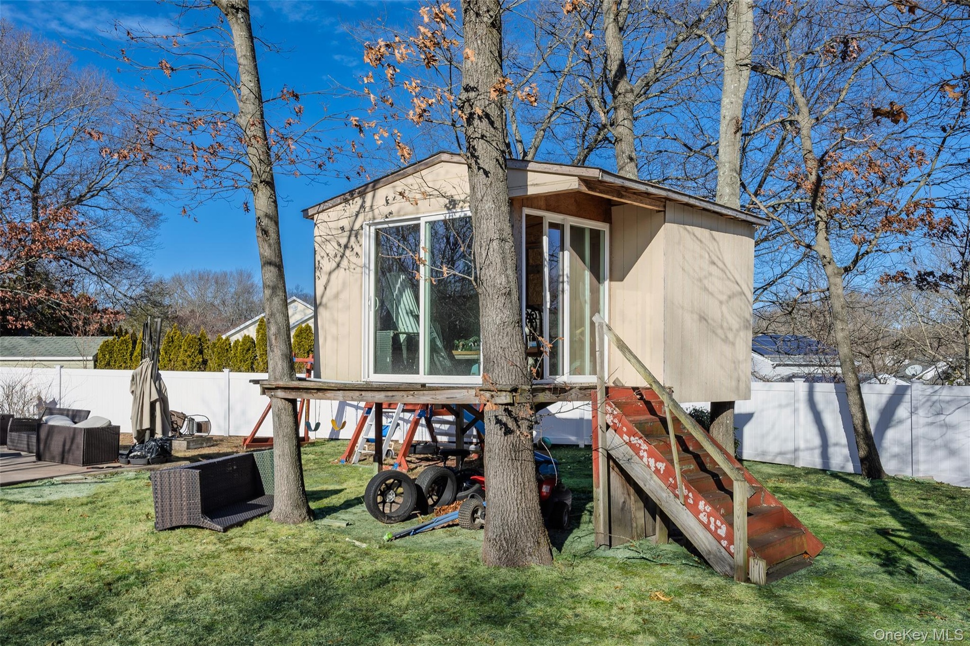 Step outside to your backyard, where the entire yard is fully fenced, offering privacy and peace of mind. The in-ground pool is separately fenced and includes a Loop-Loc safety cover, making it both safe and enjoyable. Additional outdoor highlights include a built-in outdoor kitchen and a charming treehouse, perfect for entertaining or relaxing.