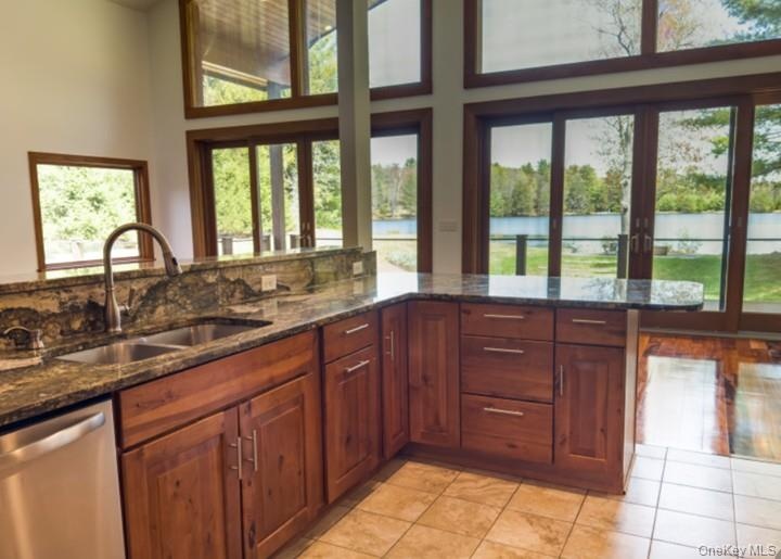 Motivated Seller bring offers!! Black Lake Estates where lake front living is at its best! Exquisite light-filled residence offers an open-concept floor plan with 3400 sq ft; elegantly crafted for modern comfort and style. Prepare to be captivated by the bountiful lake views. This home has been totally painted and deep cleaned ready for you to move right in with nothing to do!! An open-concept layout effortlessly merges the indoors with the outdoors, thanks to the wall of floor-to-ceiling windows and glass doors that flood the home with natural light and offer uninterrupted views of the shimmering water. The seamless flow between the living room-with its towering 12' ceilings, dining area, and the gourmet kitchen creates a setting perfect for lavish entertaining, as it is for intimate evenings at home. Radiant heat throughout the great room, kitchen and entrance area. The main living area effortlessly flows into a private outdoor space, featuring a deck and lawn for perfect indoor-outdoor entertainment. This home has four good sized bedrooms and three luxurious bathrooms, ensuring ample space for guests. Parties and entertainment are a delight when opening the large glass doors from the living and dining area to the deck and yard leading up to the Lake. Did I mention every room in this home is sun drenched, light and airy; everything a lakefront home should be! The lower level has an additional 1,288 sq. ft. of a blank canvas!! Use your imagination and complete it as a recreation room, gym, your work from home office, a media room, additional bedrooms or whatever is needed to make this home fit your perfect lifestyle. Comes with an all house generator standing by. Situated on 5.80 bucolic acres, this home is more than just a place to live—it's an opportunity to experience a lifestyle with lake front water views from almost every room with sophisticated yet casual design living!! Black Lake Estates is a gated community. This home has direct waterfront on Meyers Pond and has deeded access to Black Lake & Clear Lake (No motorboats. Yes, electric boats, sail boats, kayaks and canoes). No short-term rentals. HOA Fee is only $1,100.00 a year for snow plowing and roadway maintenance. A true 4 season retreat, only 2 hours from NYC and even less from North Jersey, and minutes to Bethel Woods Performing Arts Center, Forestburgh Summer Stock Playhouse, Monticello Motor Club, Resorts World Catskills Casino, Kartrite Indoor Water Park, Yo1 Wellness Center. Local Farmer Markets, Breweries, Wineries, Hiking, Delaware River Rafting, Winter Ski Resorts endless entertainment close to your front door!!